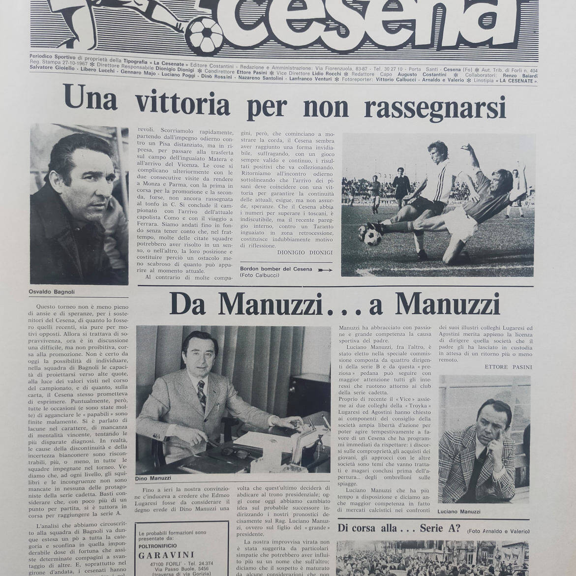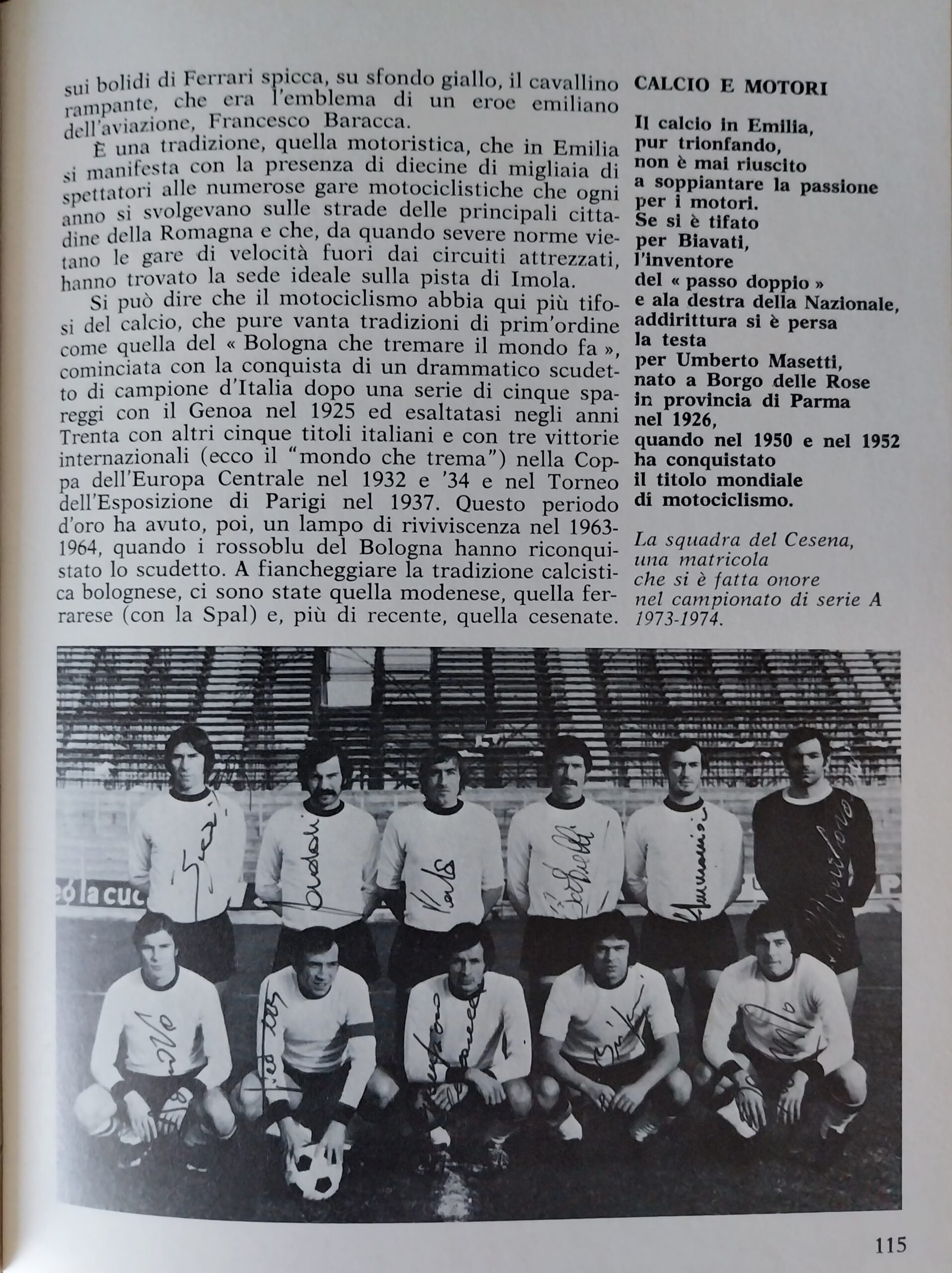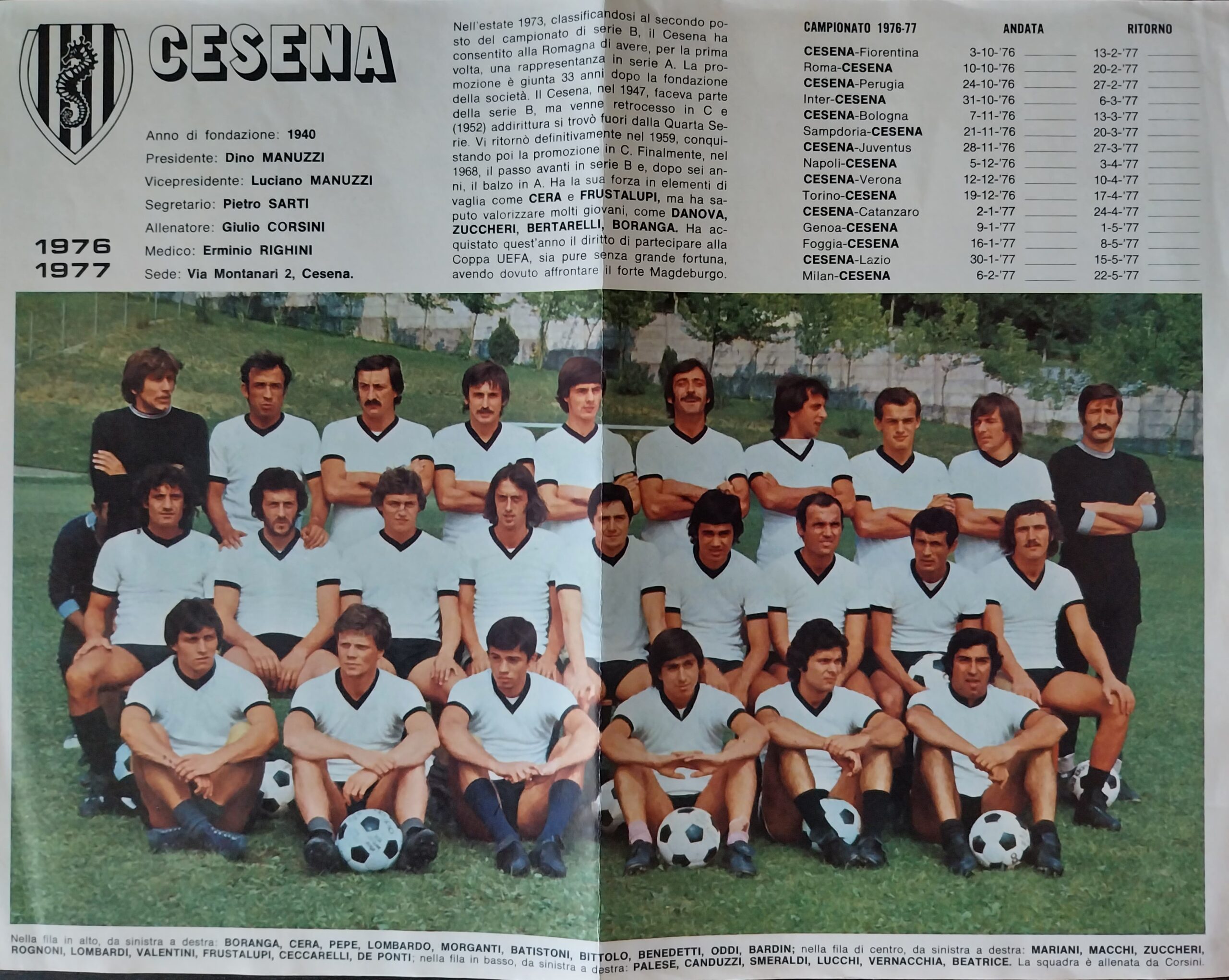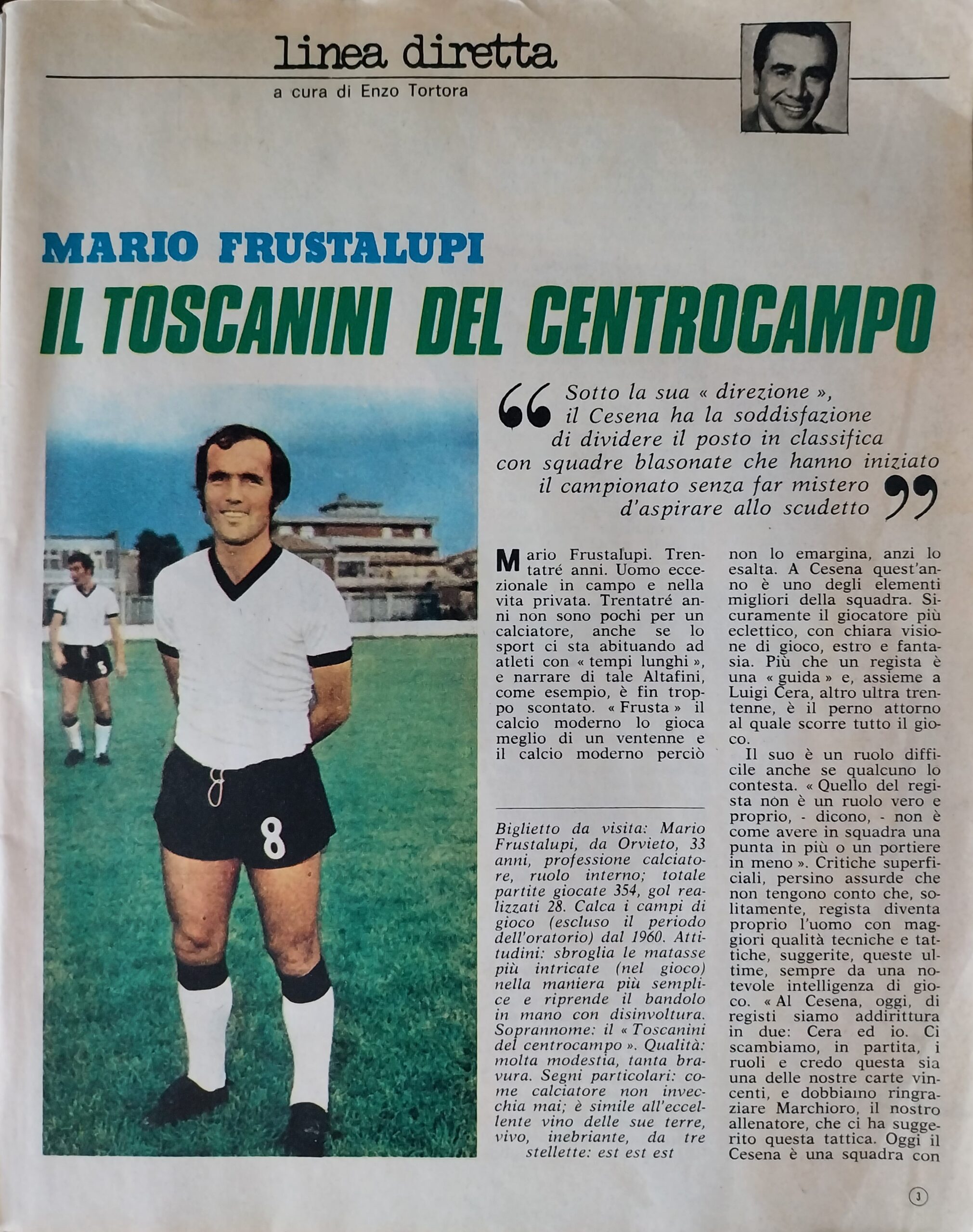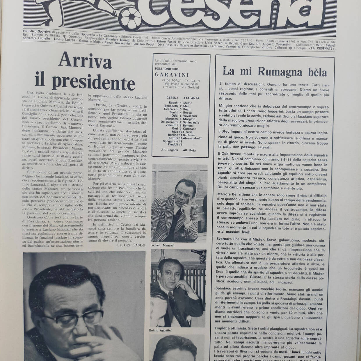 Calcio 74 Gianni Brera, Ottobre 1973, presentazione Cesena 1973-74