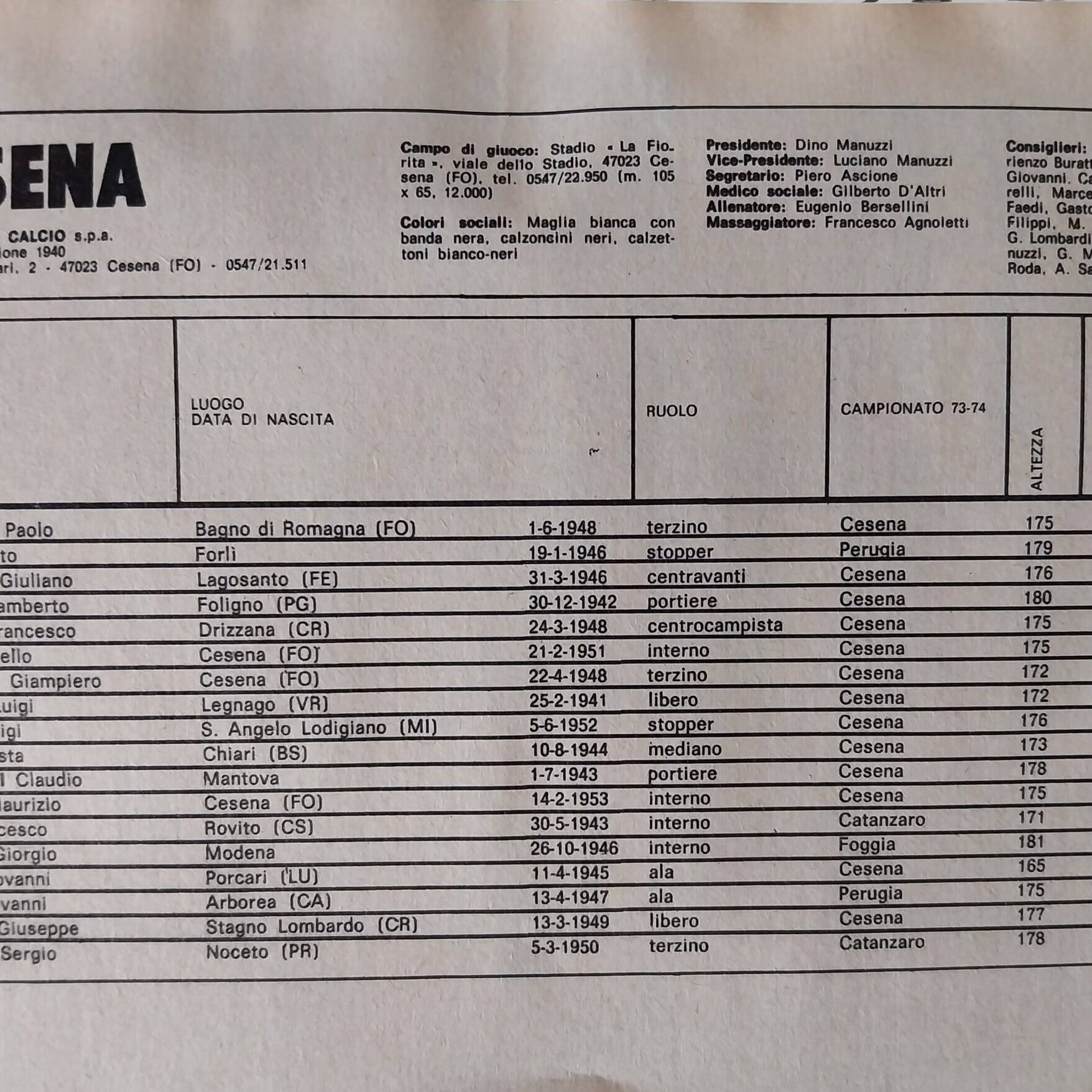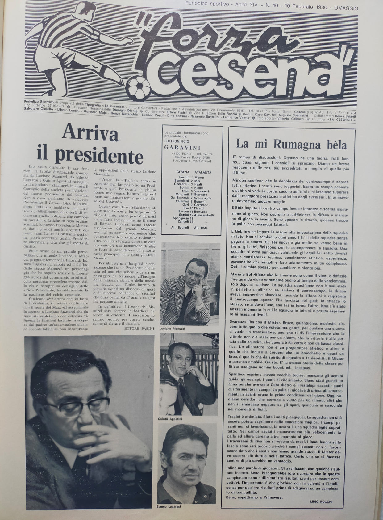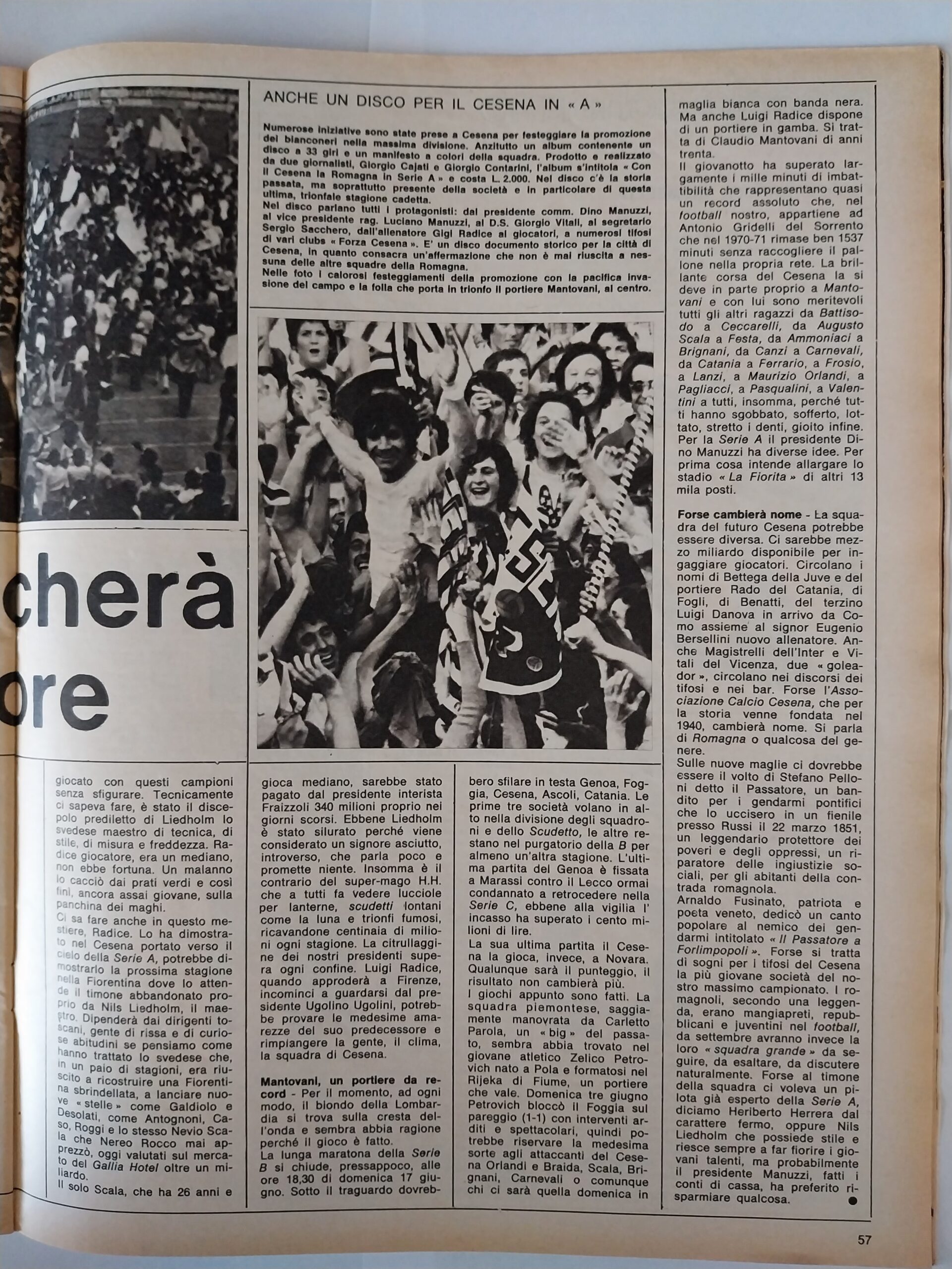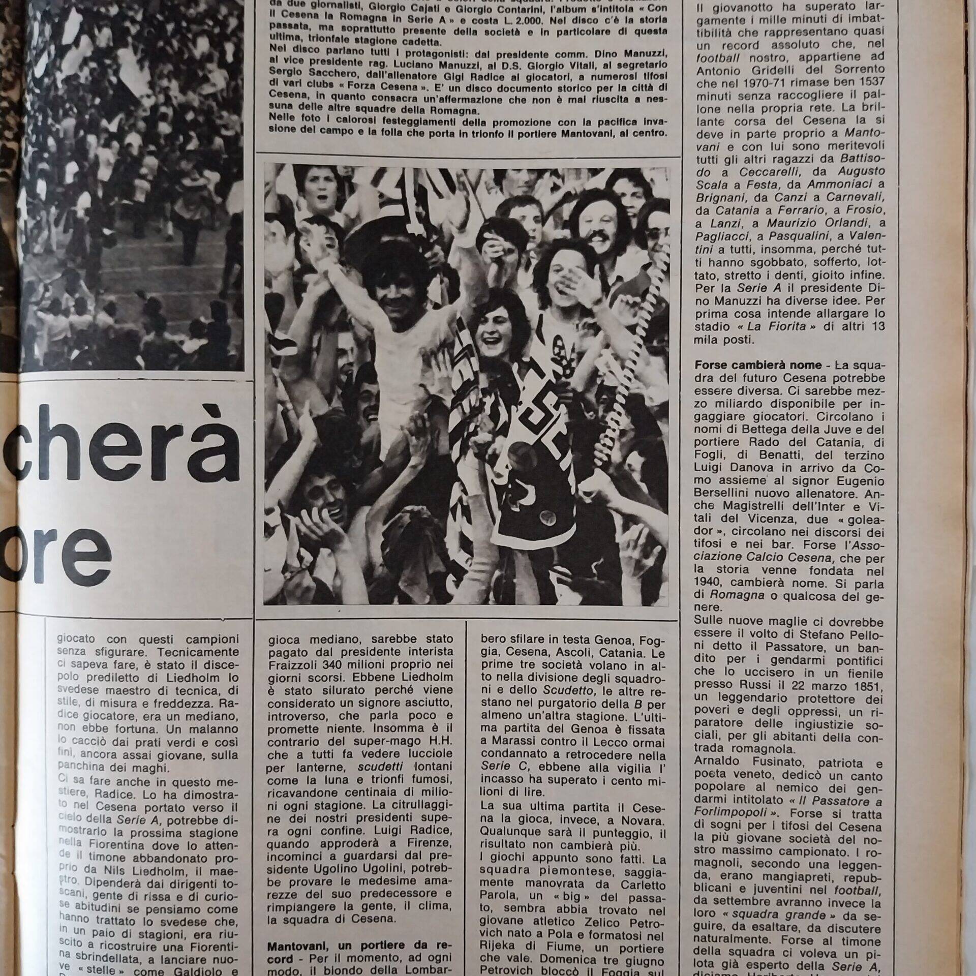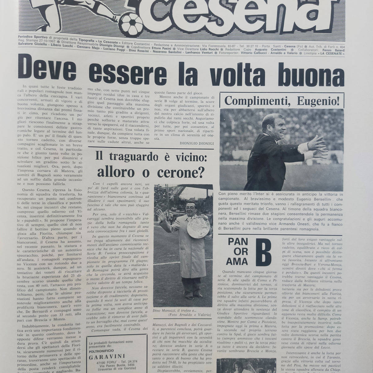 Calcio 74 Gianni Brera, Ottobre 1973, presentazione Cesena 1973-74
