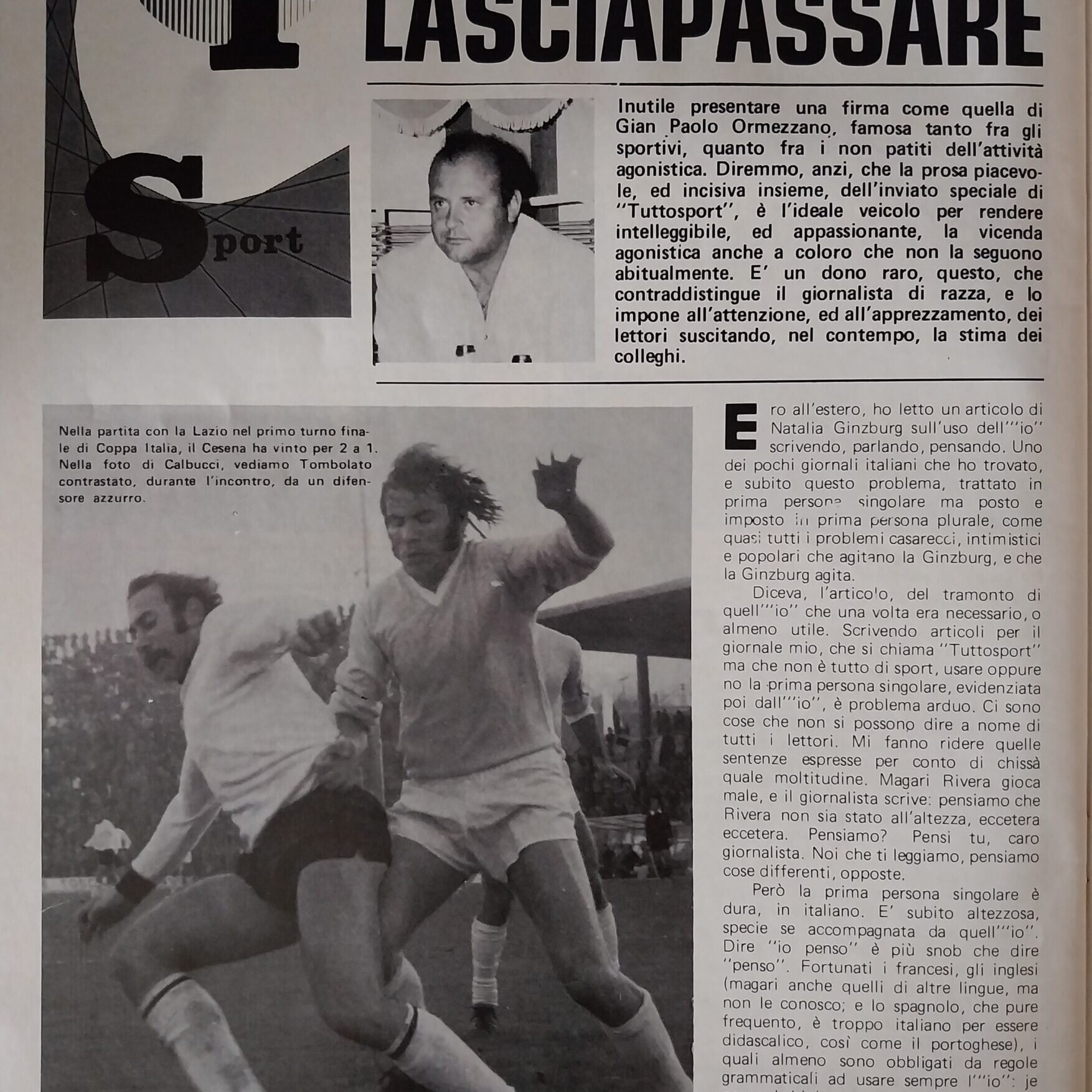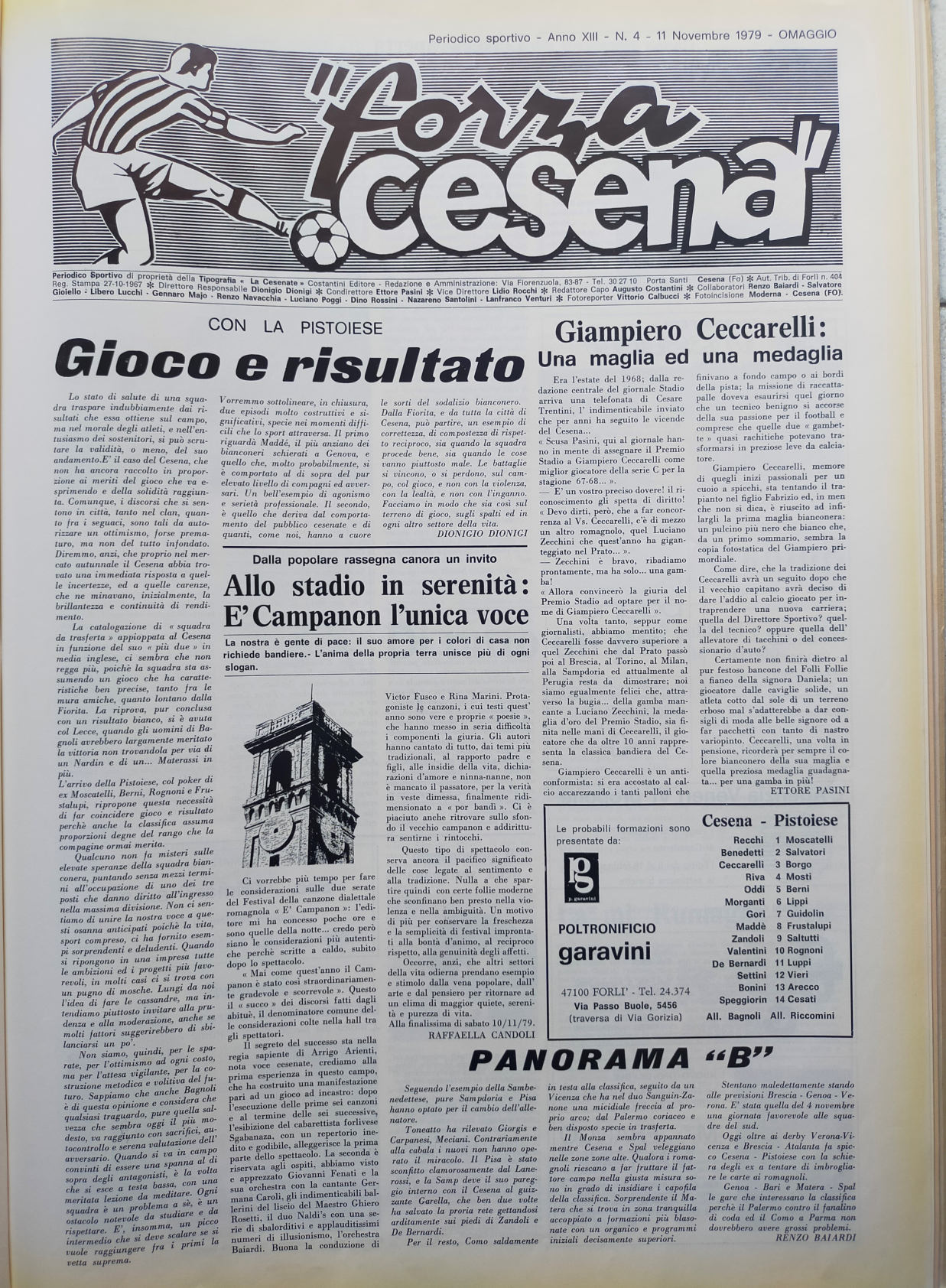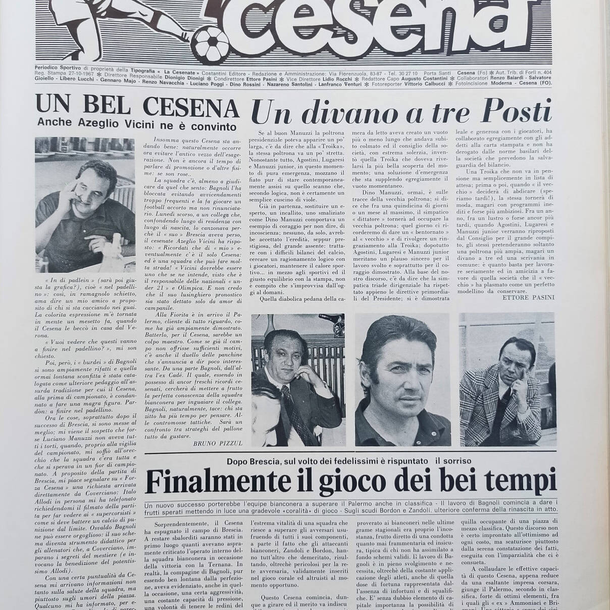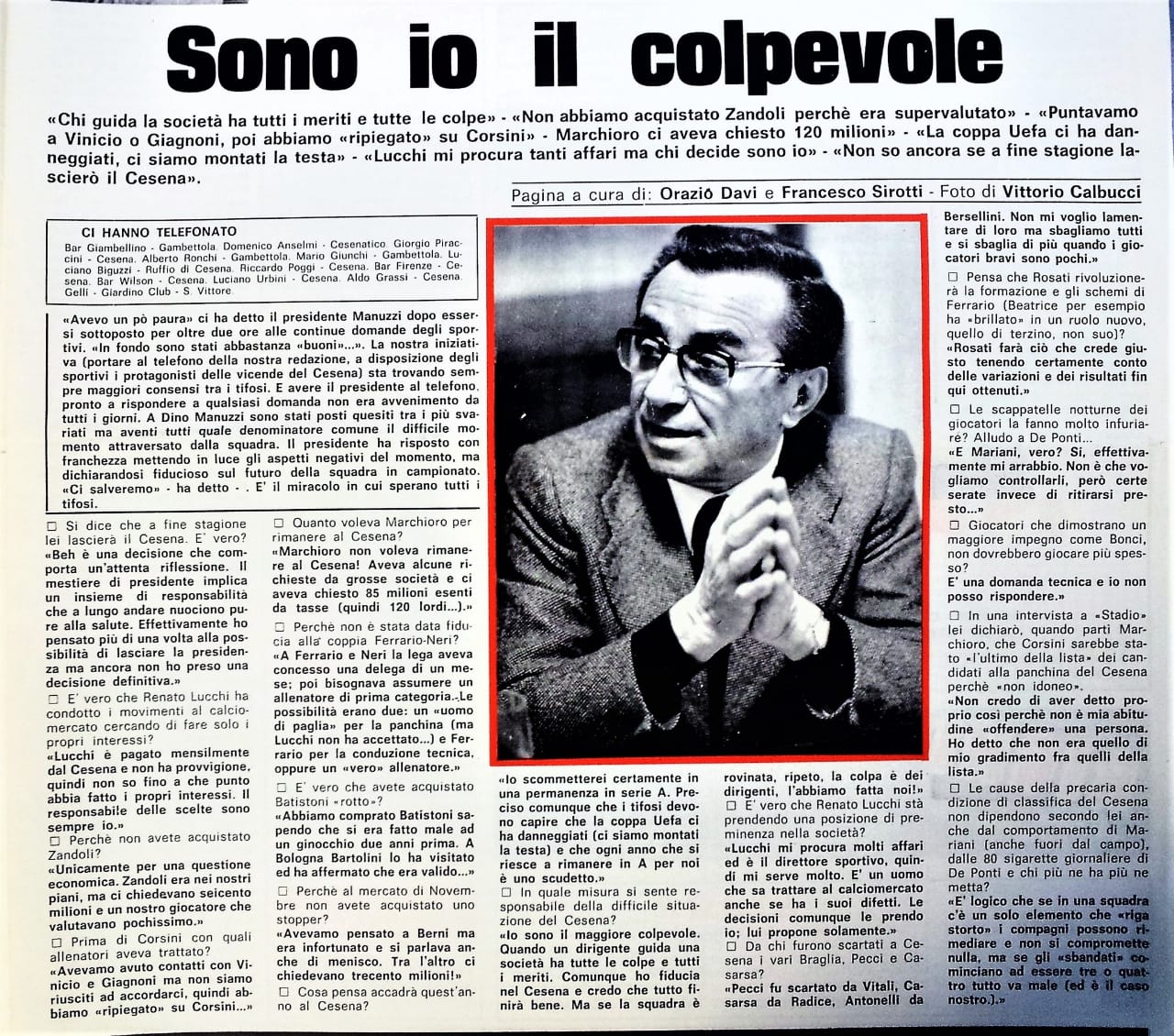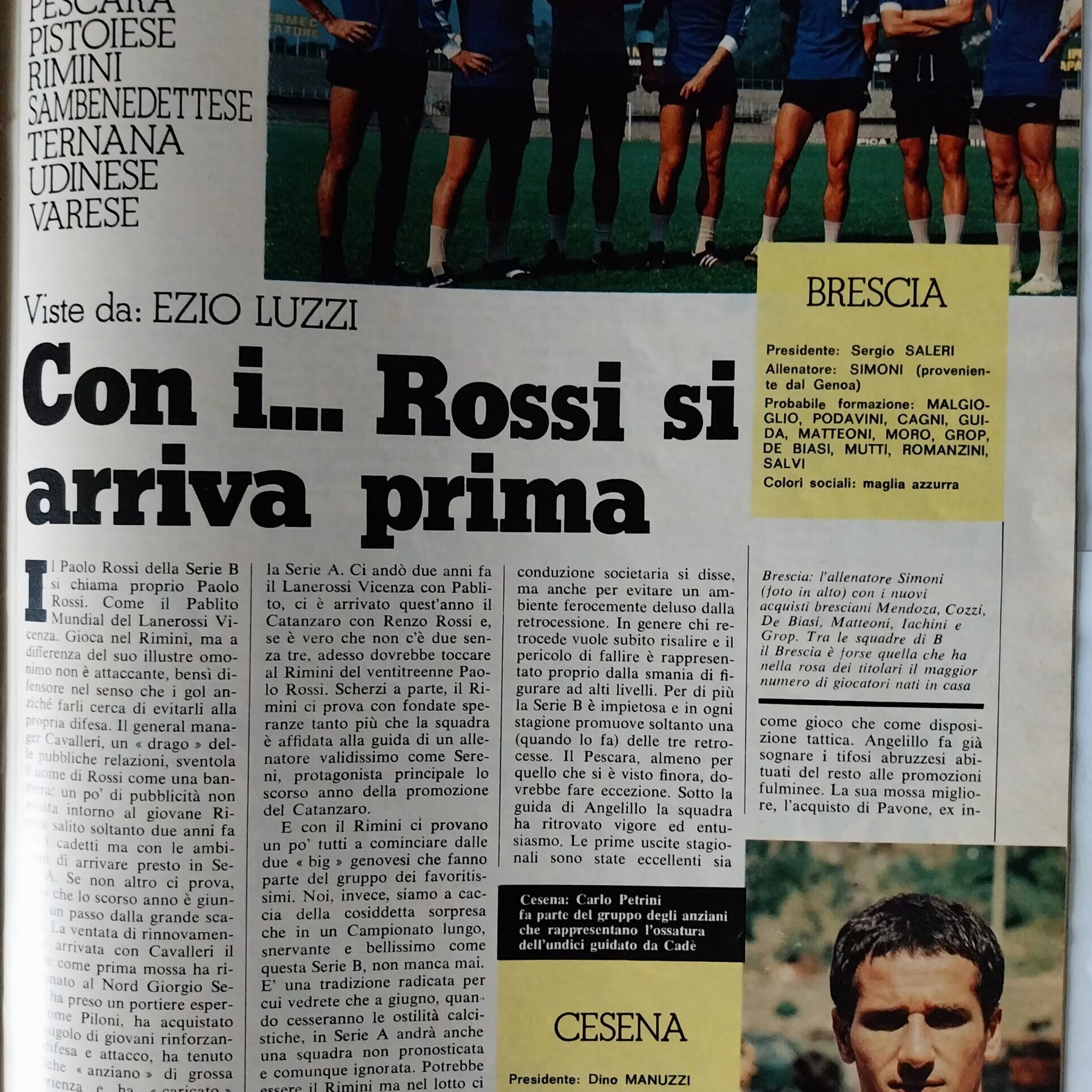 Calcio 74 Gianni Brera, Ottobre 1973, presentazione Cesena 1973-74