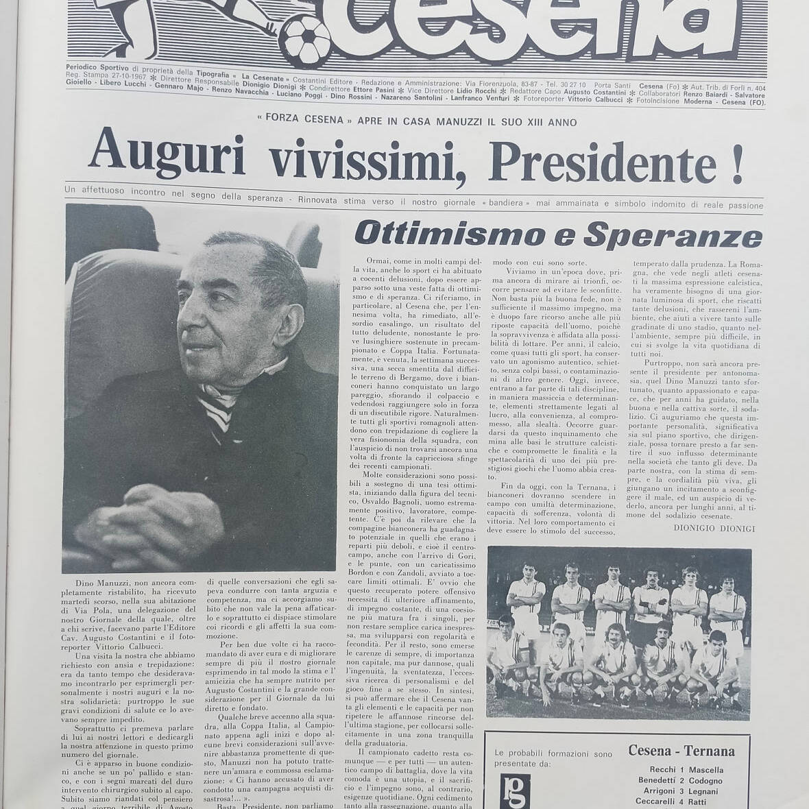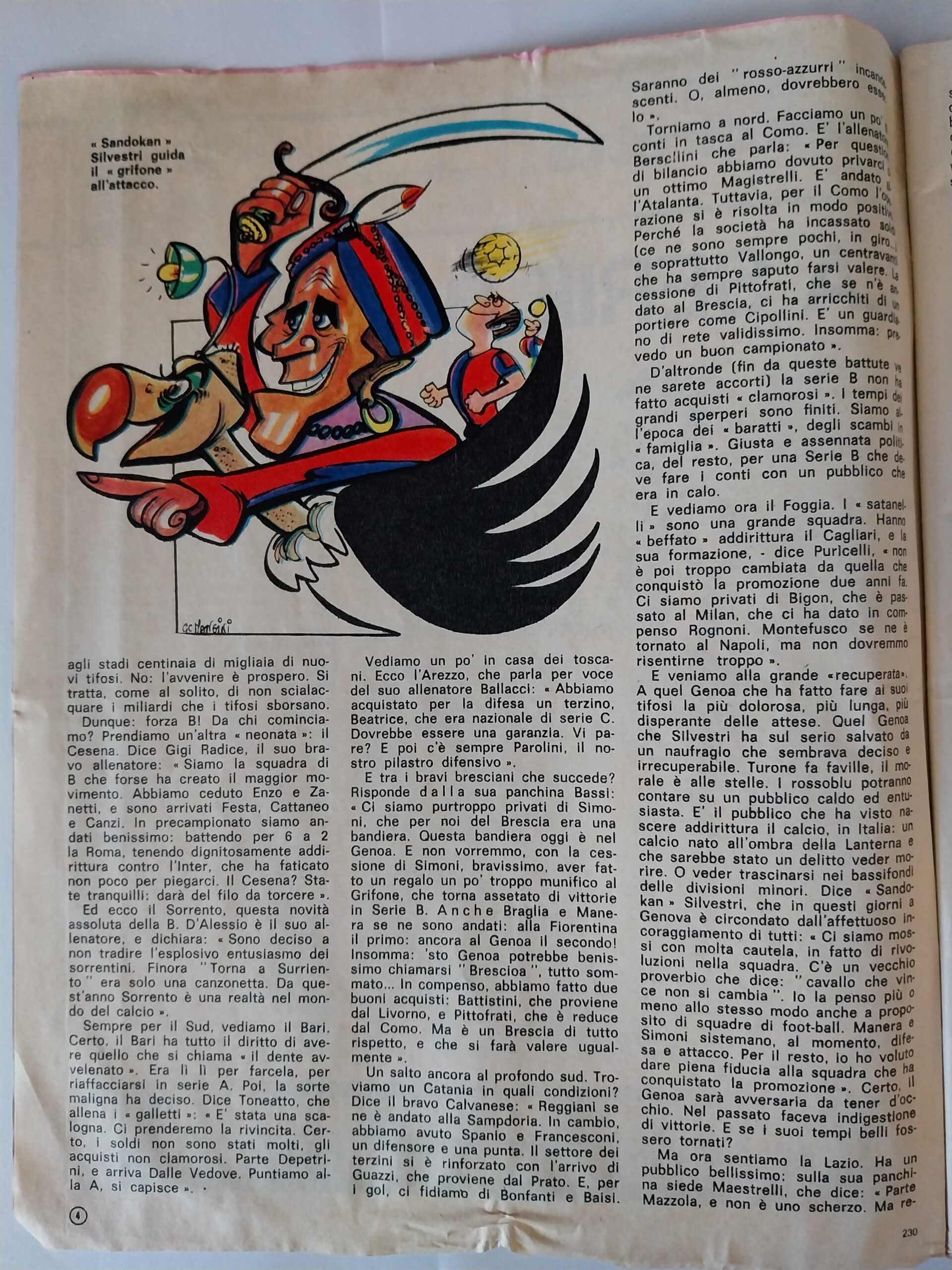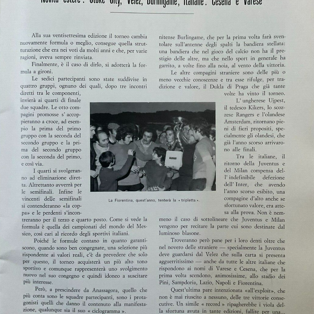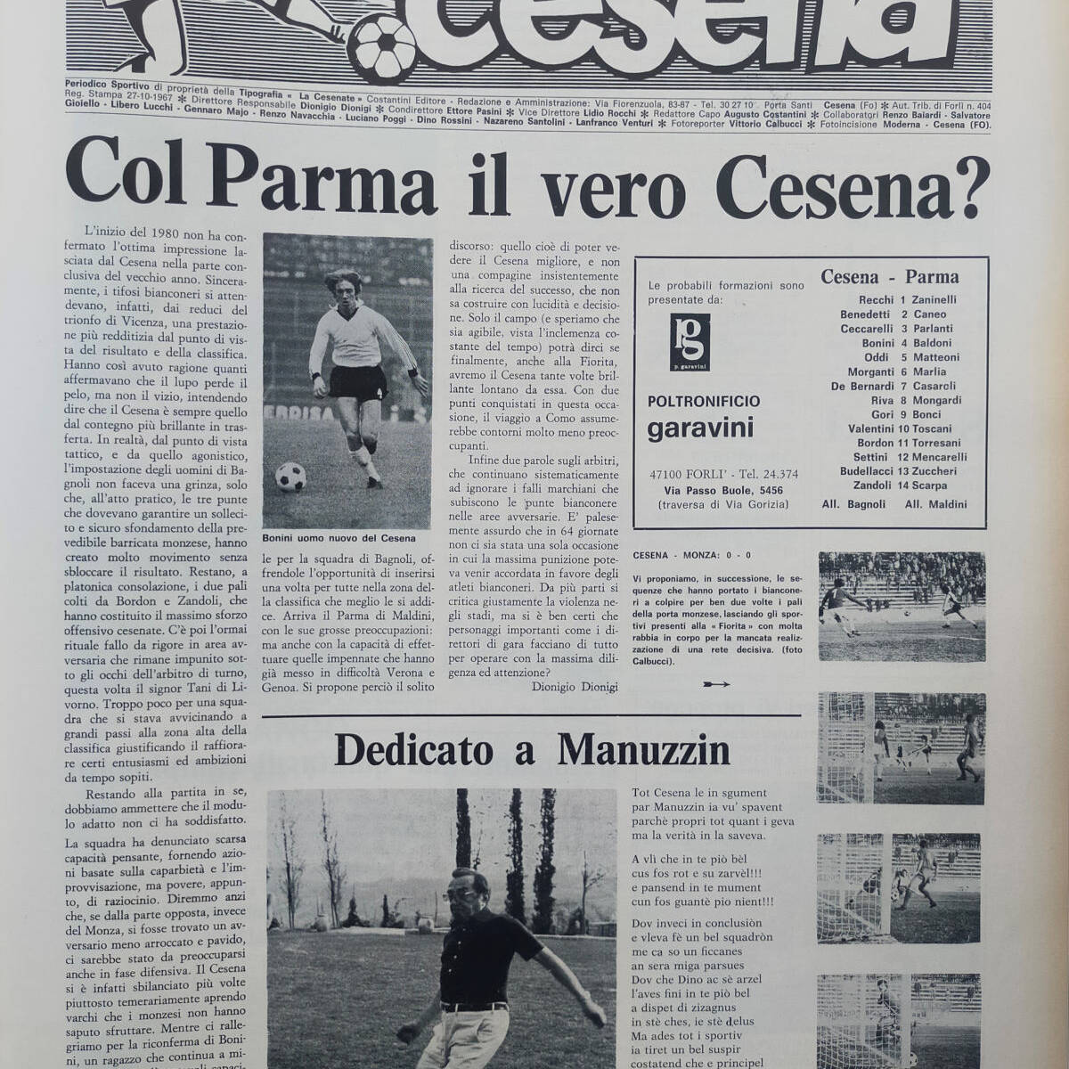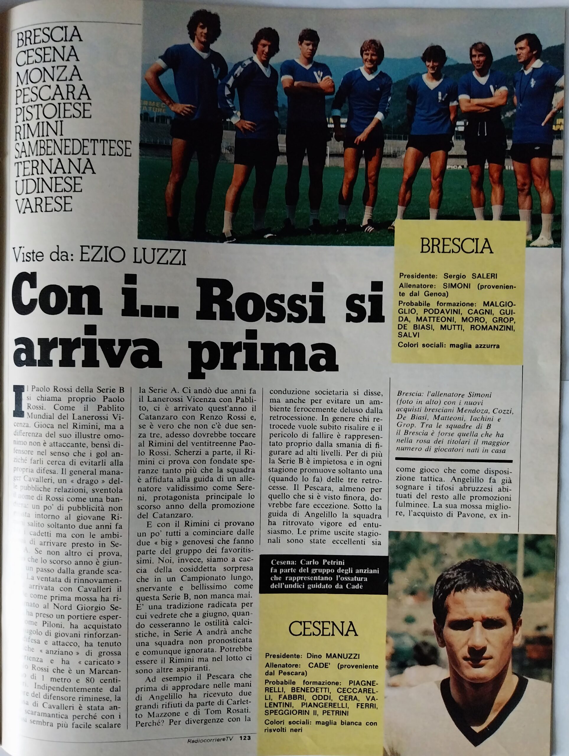 Calcio 74 Gianni Brera, Ottobre 1973, presentazione Cesena 1973-74