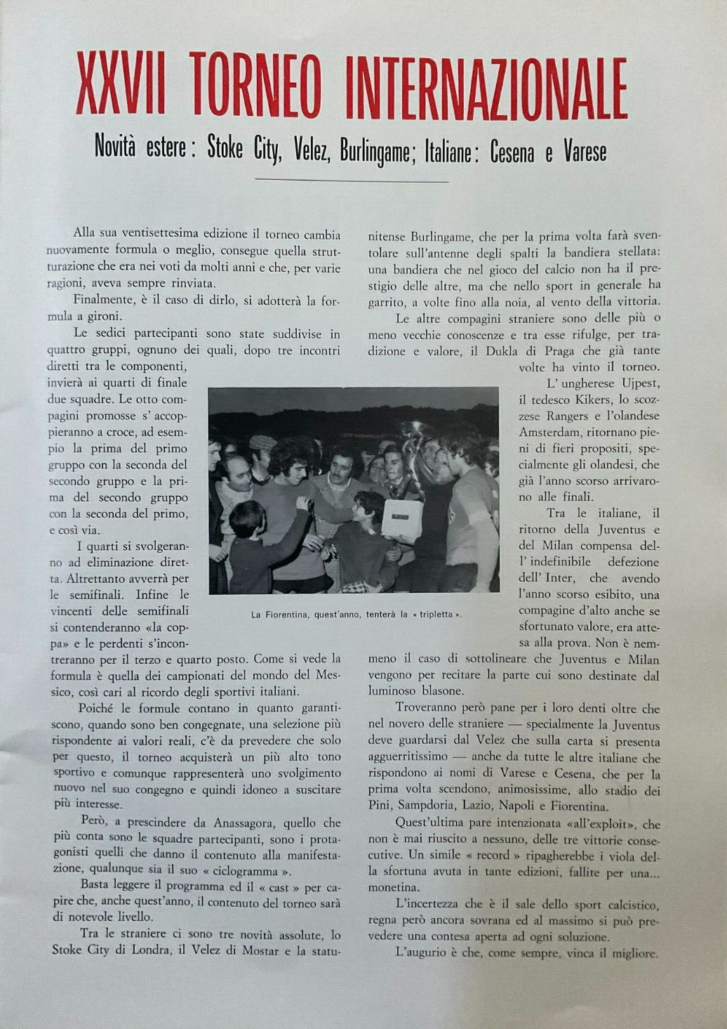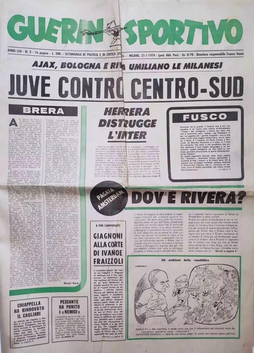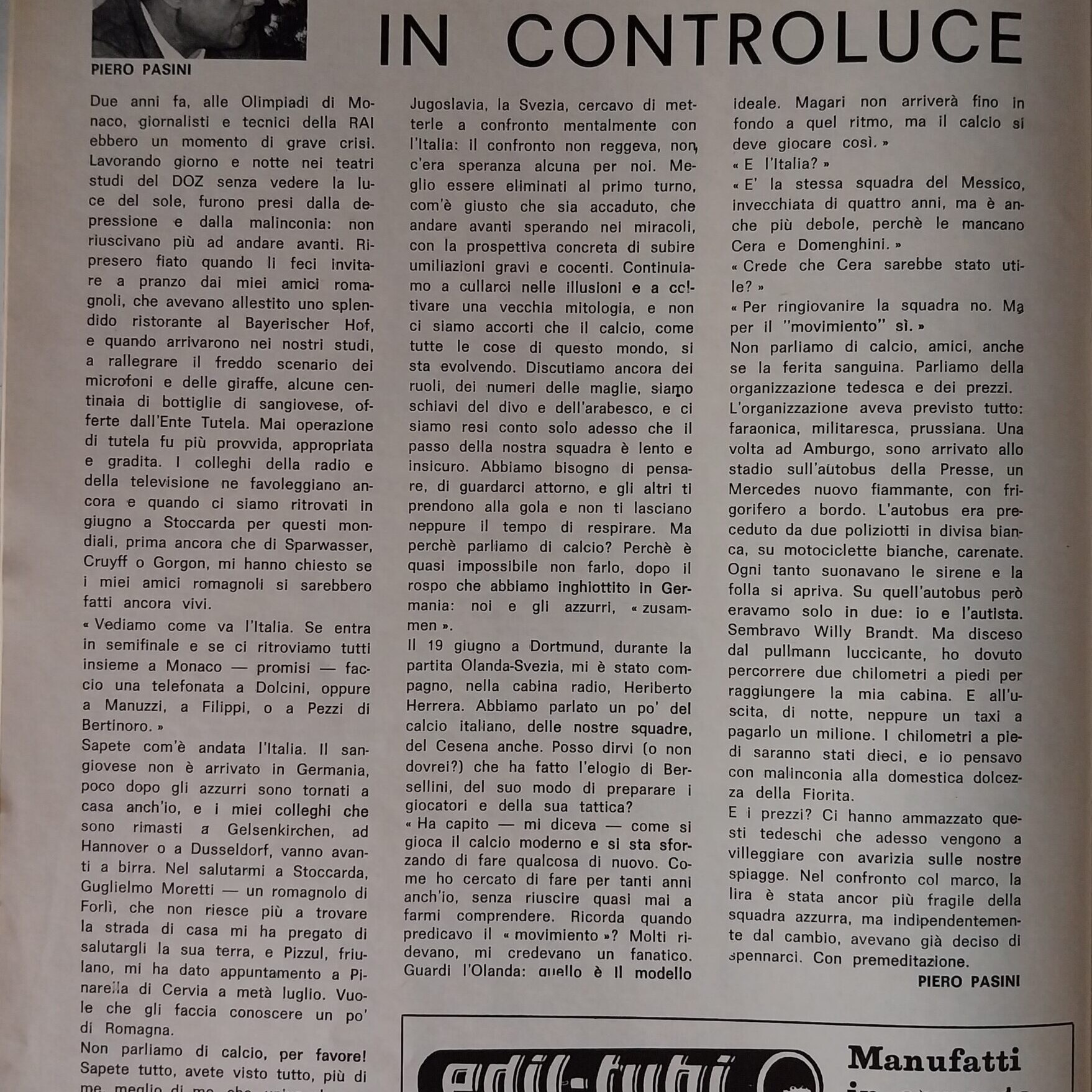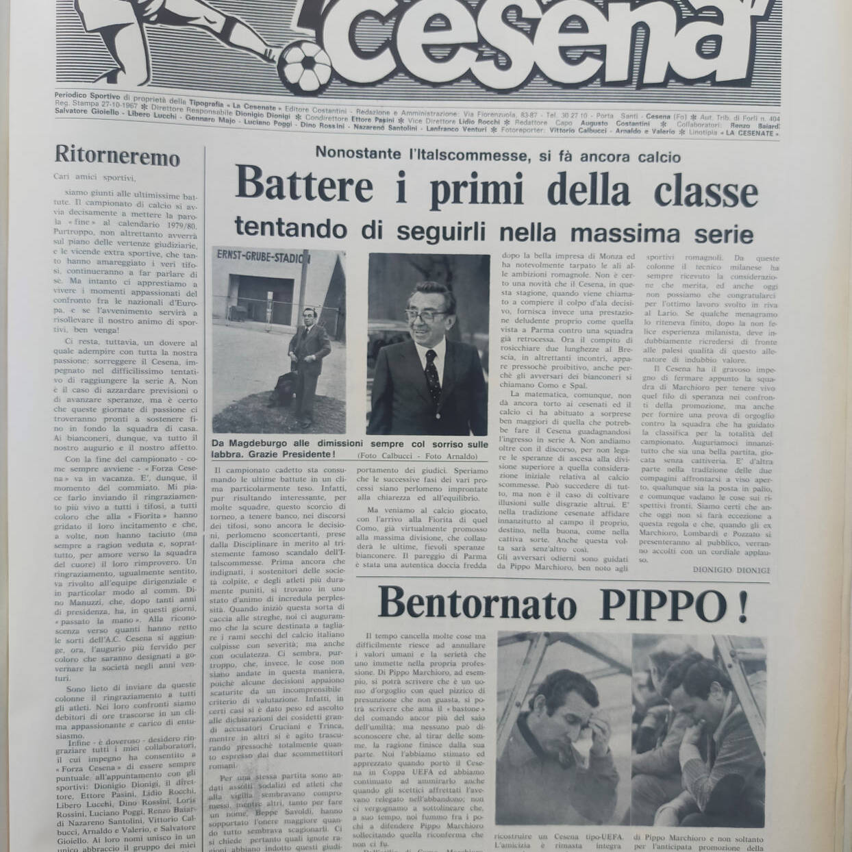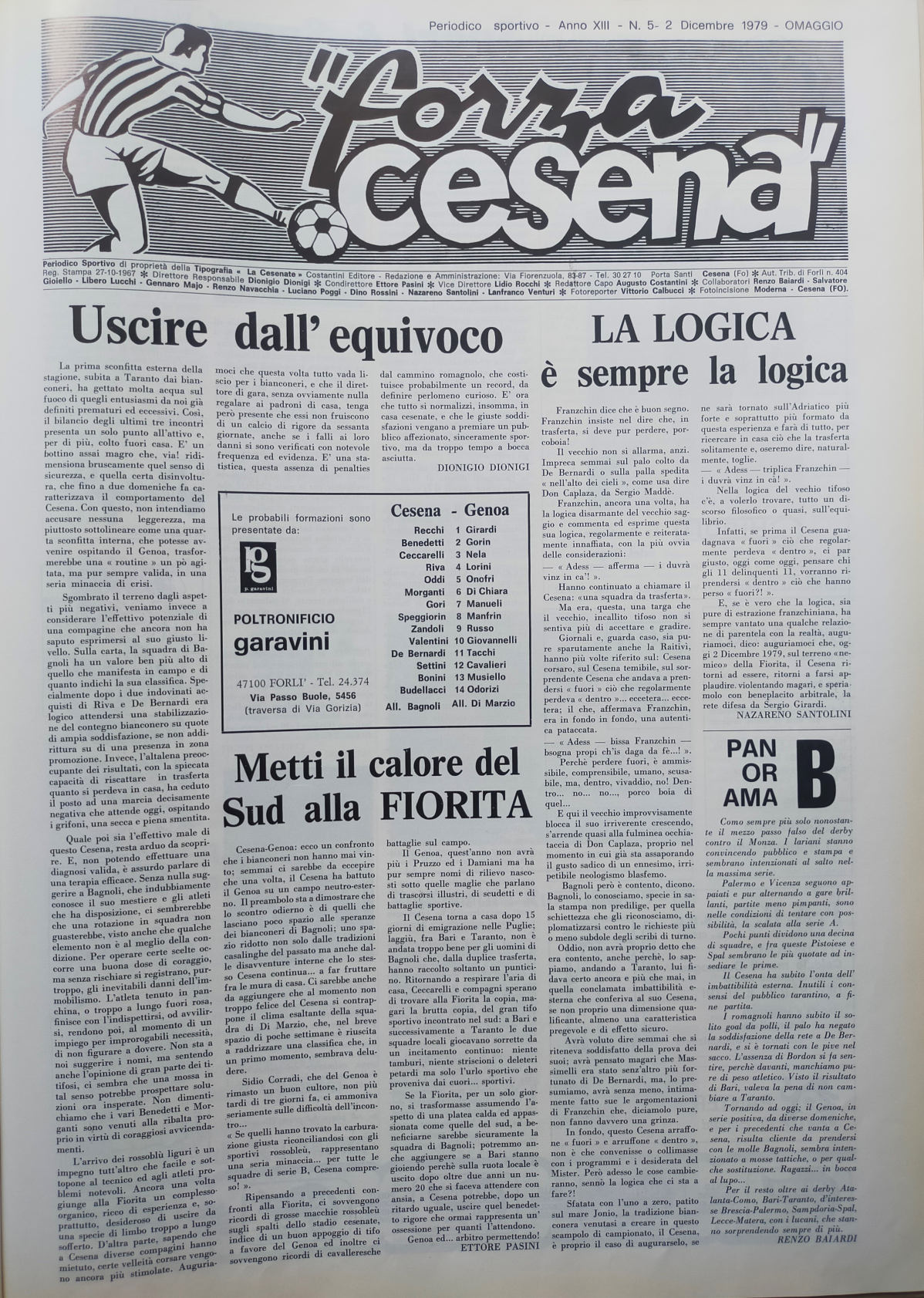 Calcio 74 Gianni Brera, Ottobre 1973, presentazione Cesena 1973-74