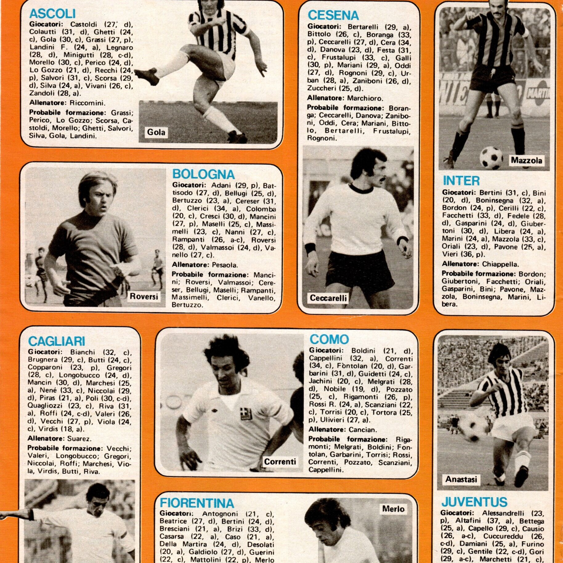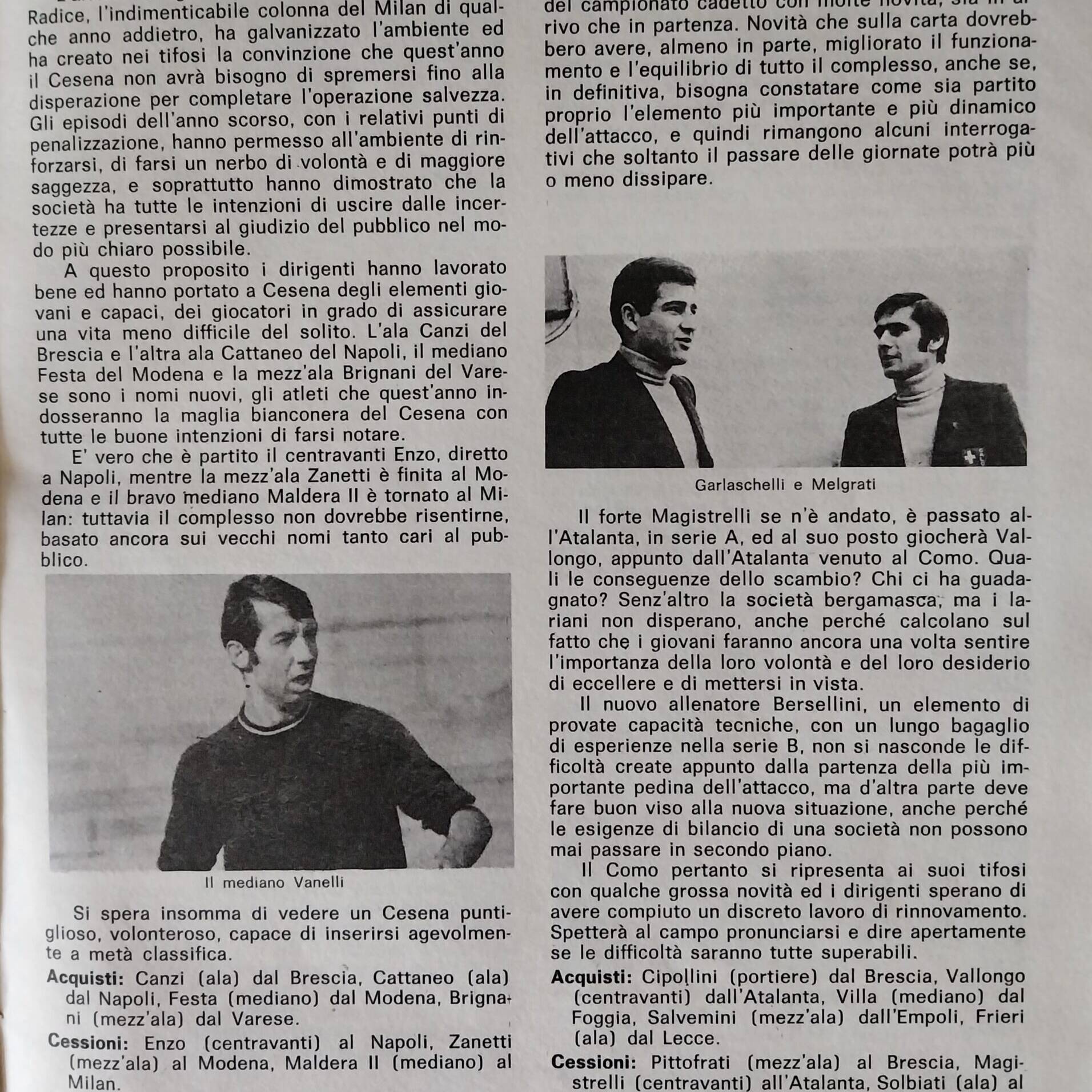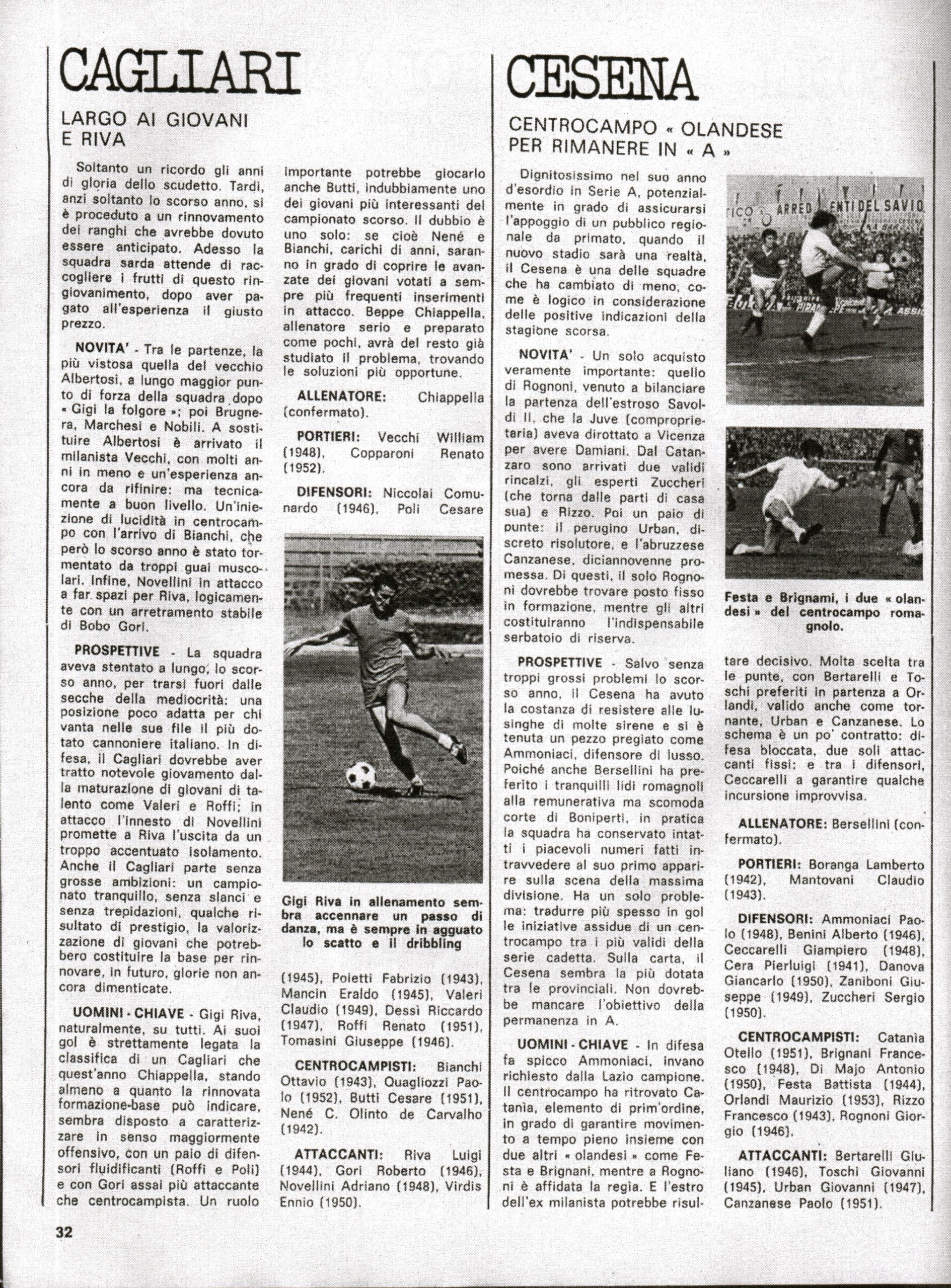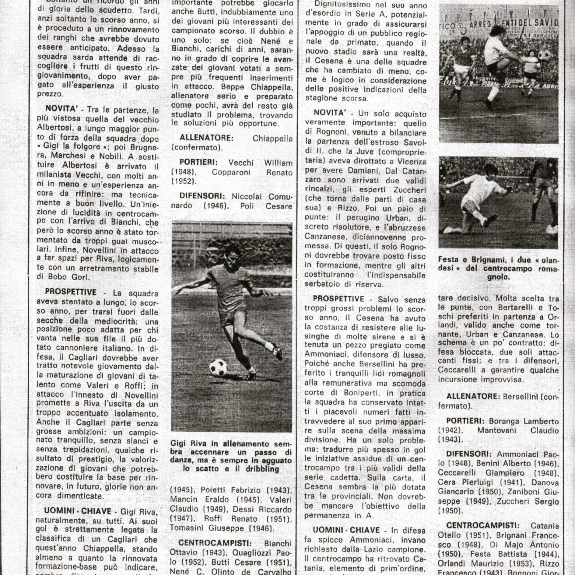 Calcio 73, Gino Sansoni Editore, 1972, p. 75, presentazione Cesena 1972-73