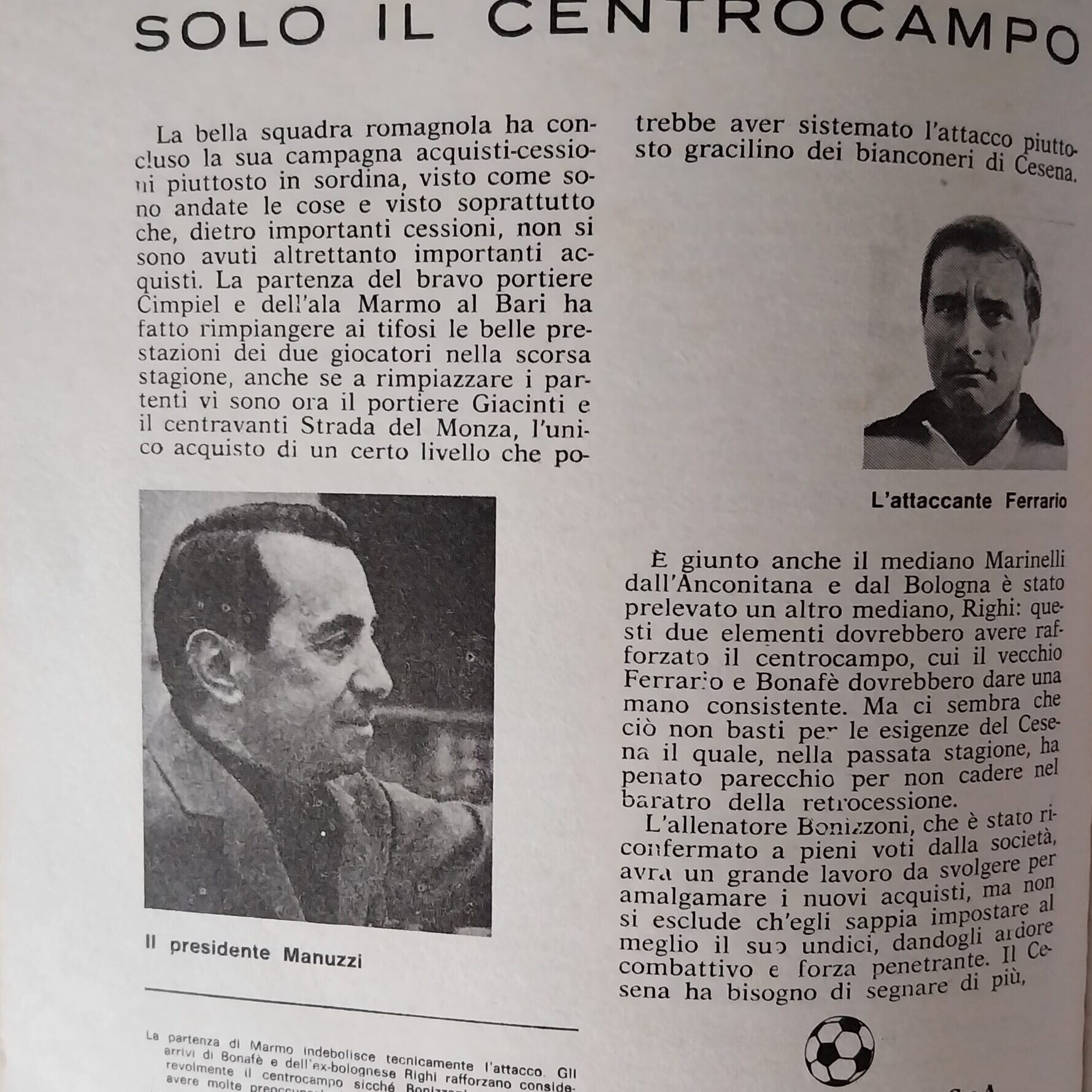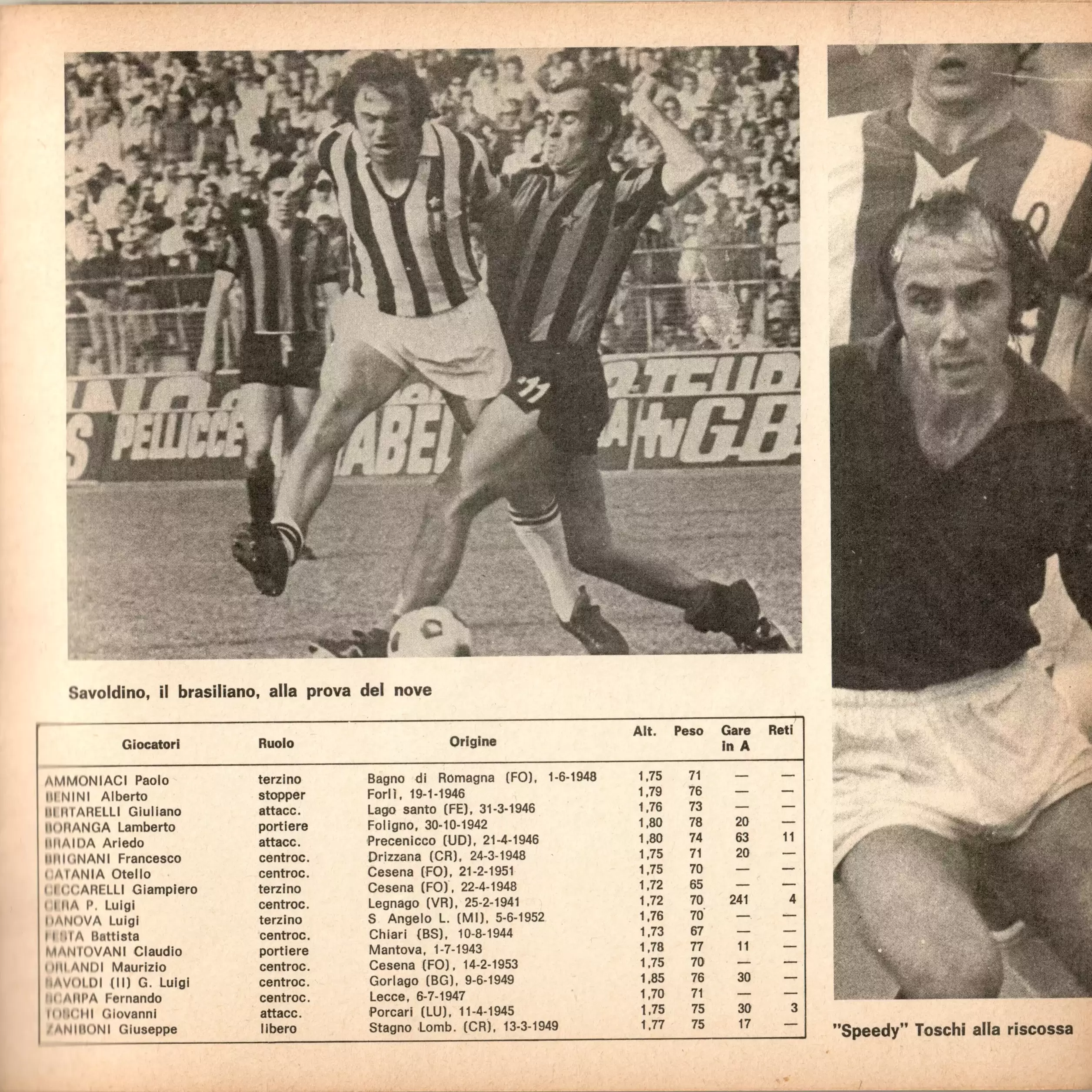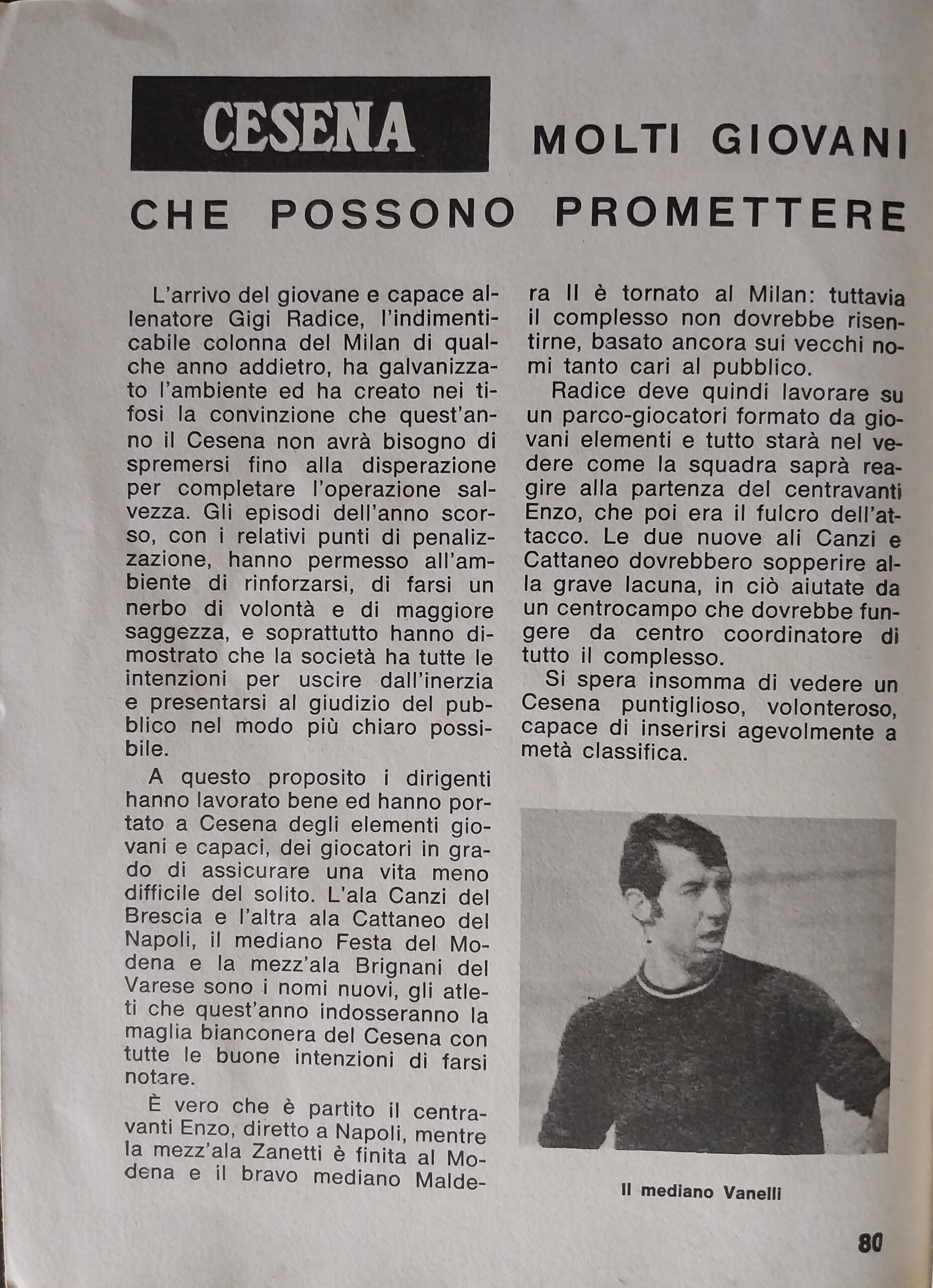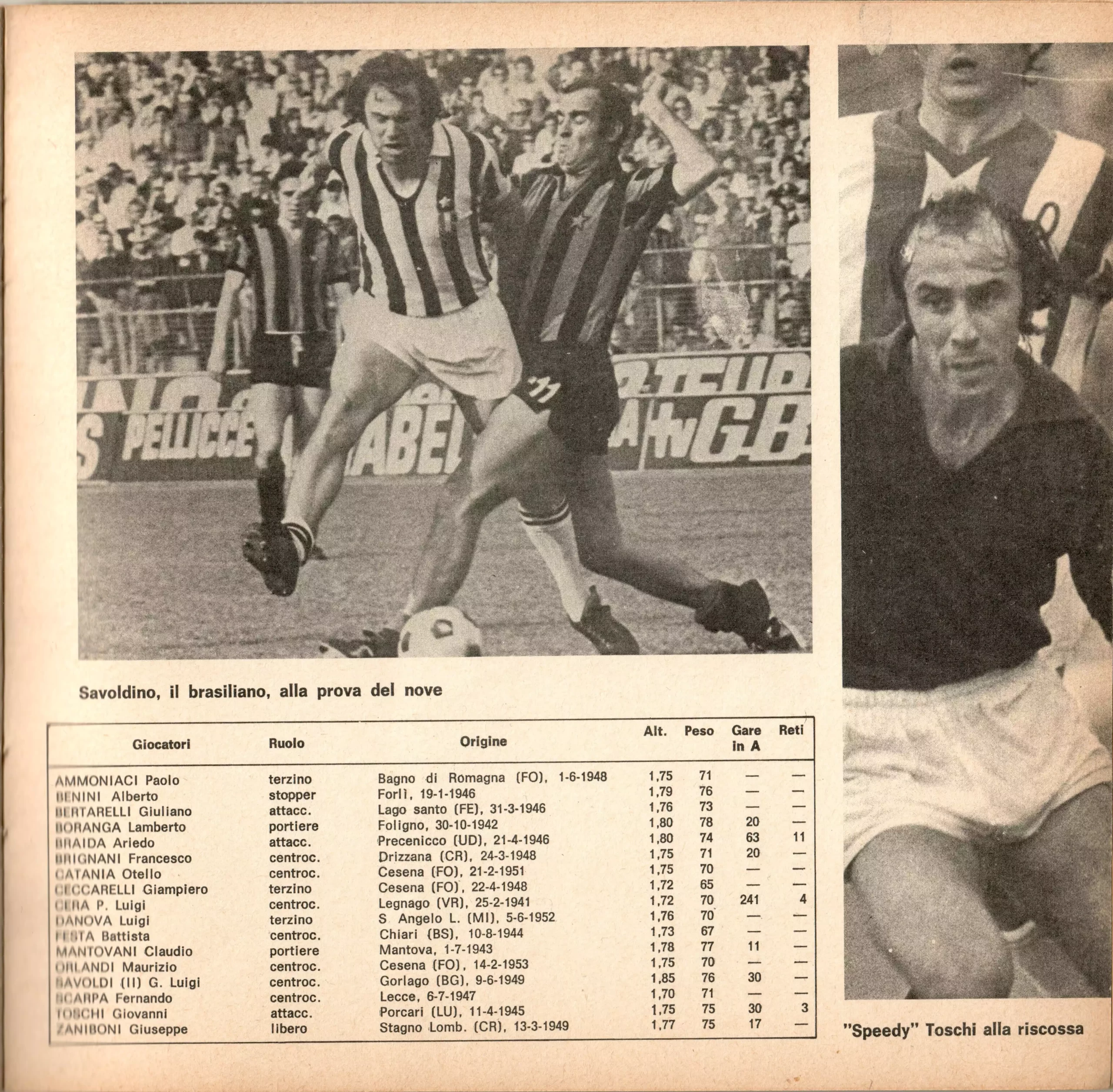 Sport Critica, ottobre 1970, n. 8, p. 35, presentazione Cesena 1970-71 Fabbri Bonizzoni Bonci Emilio