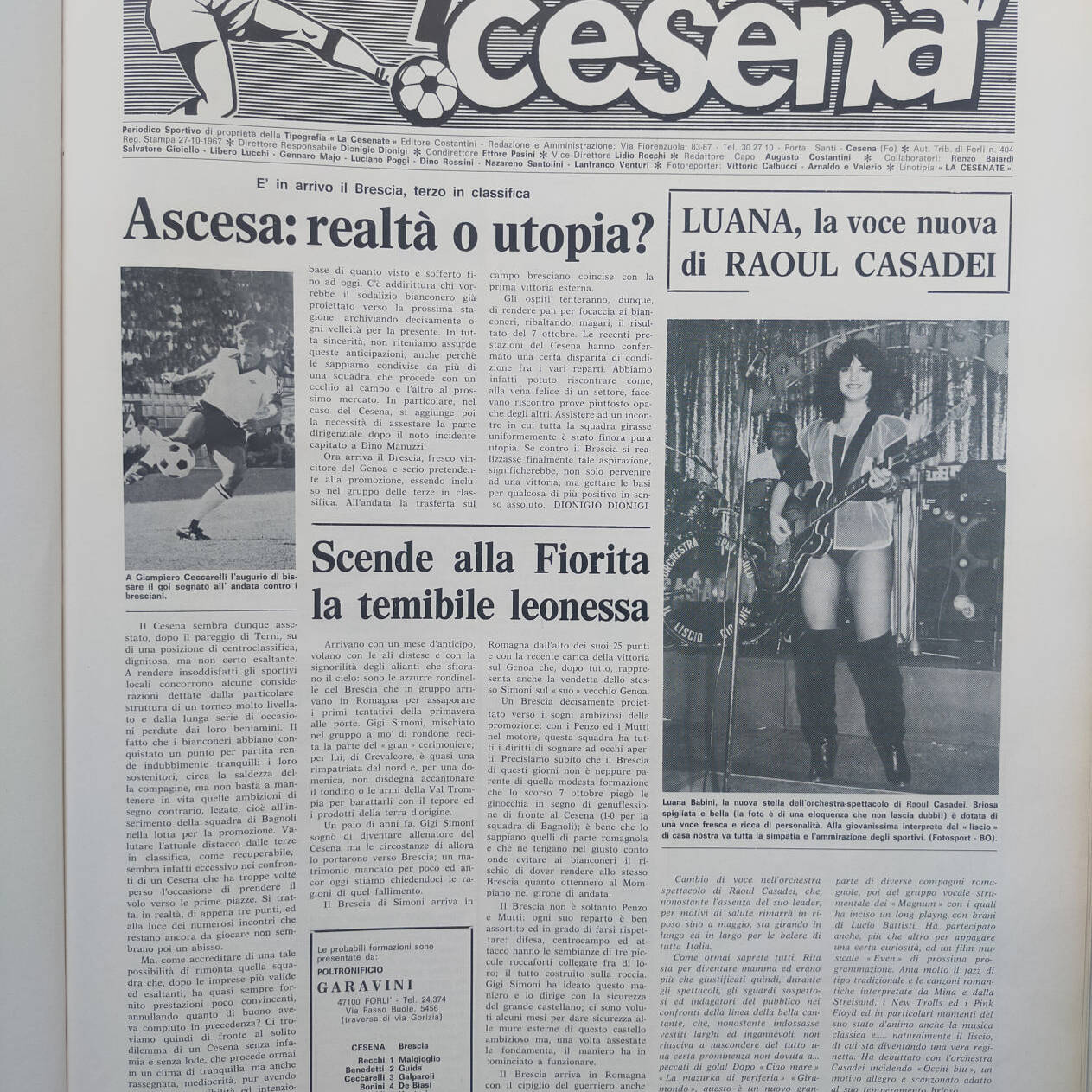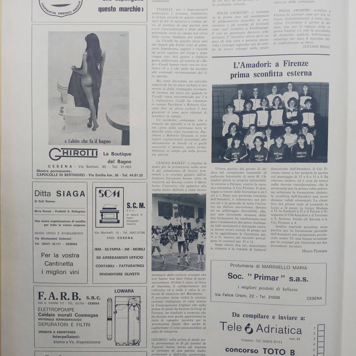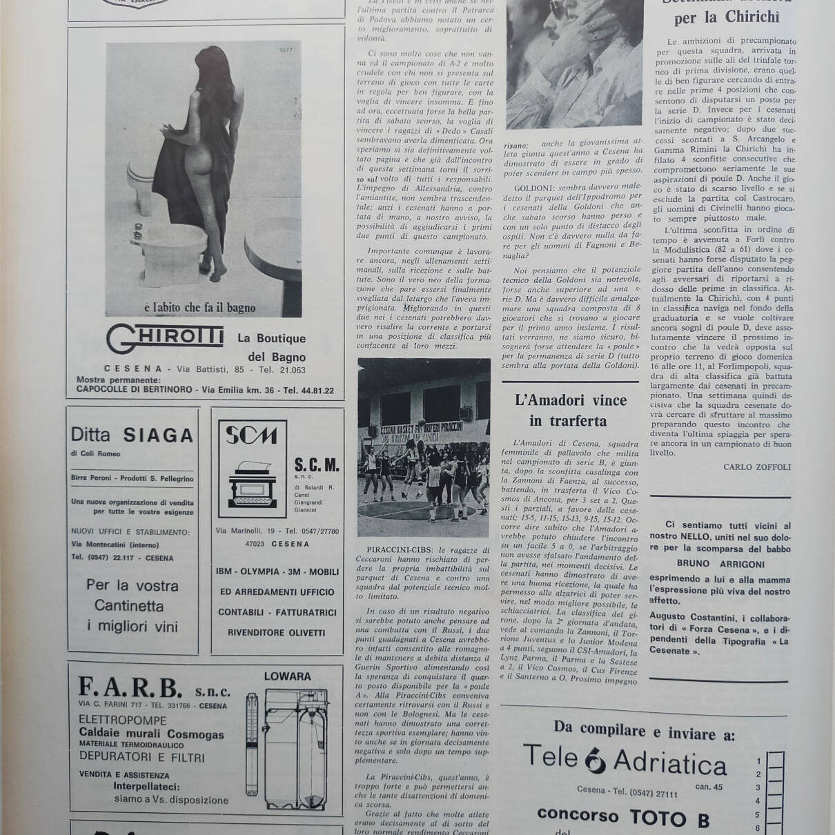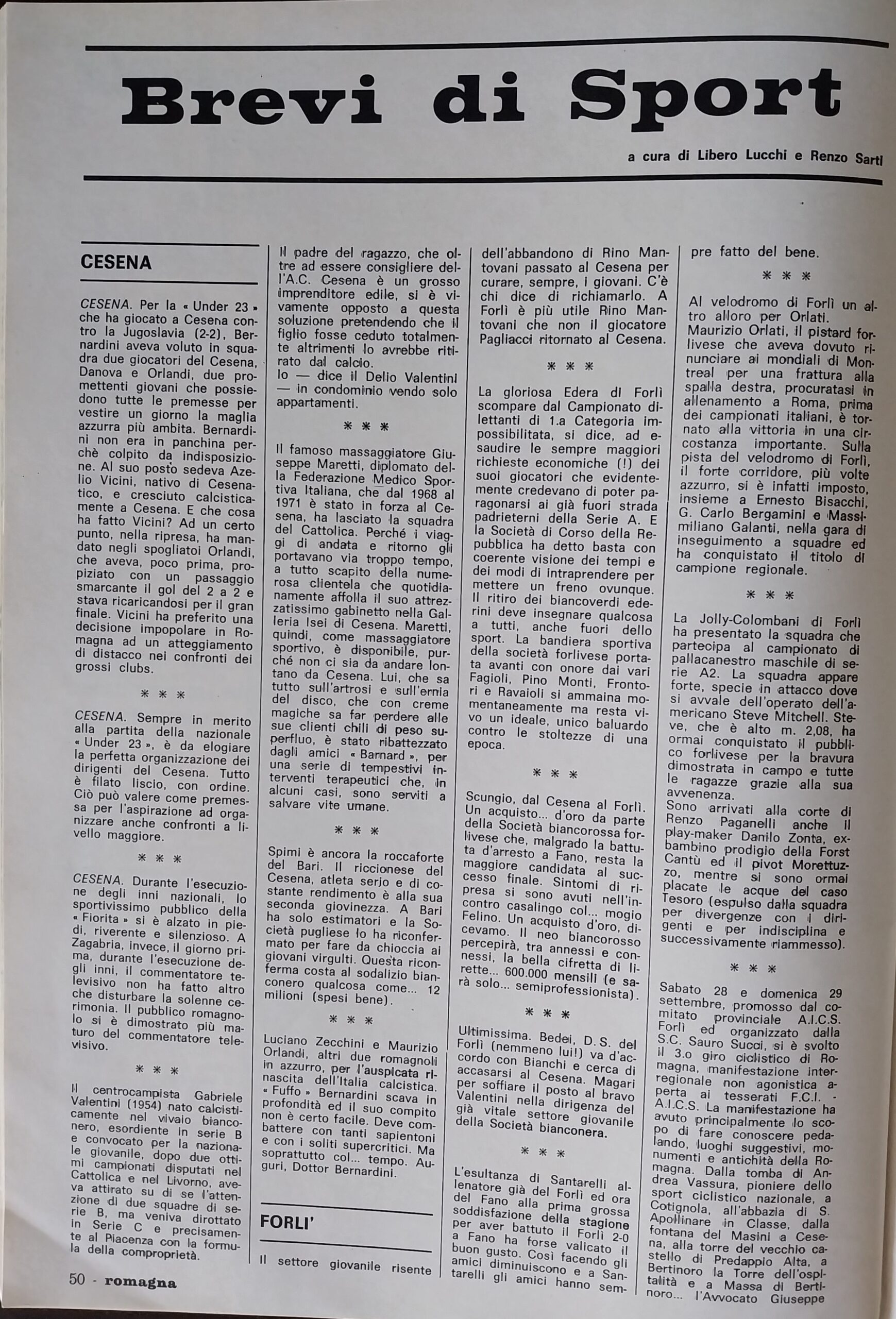 Romagna ottobre 1974, n. 10, p. 50, articolo notizie brevi Cesena 1974-75