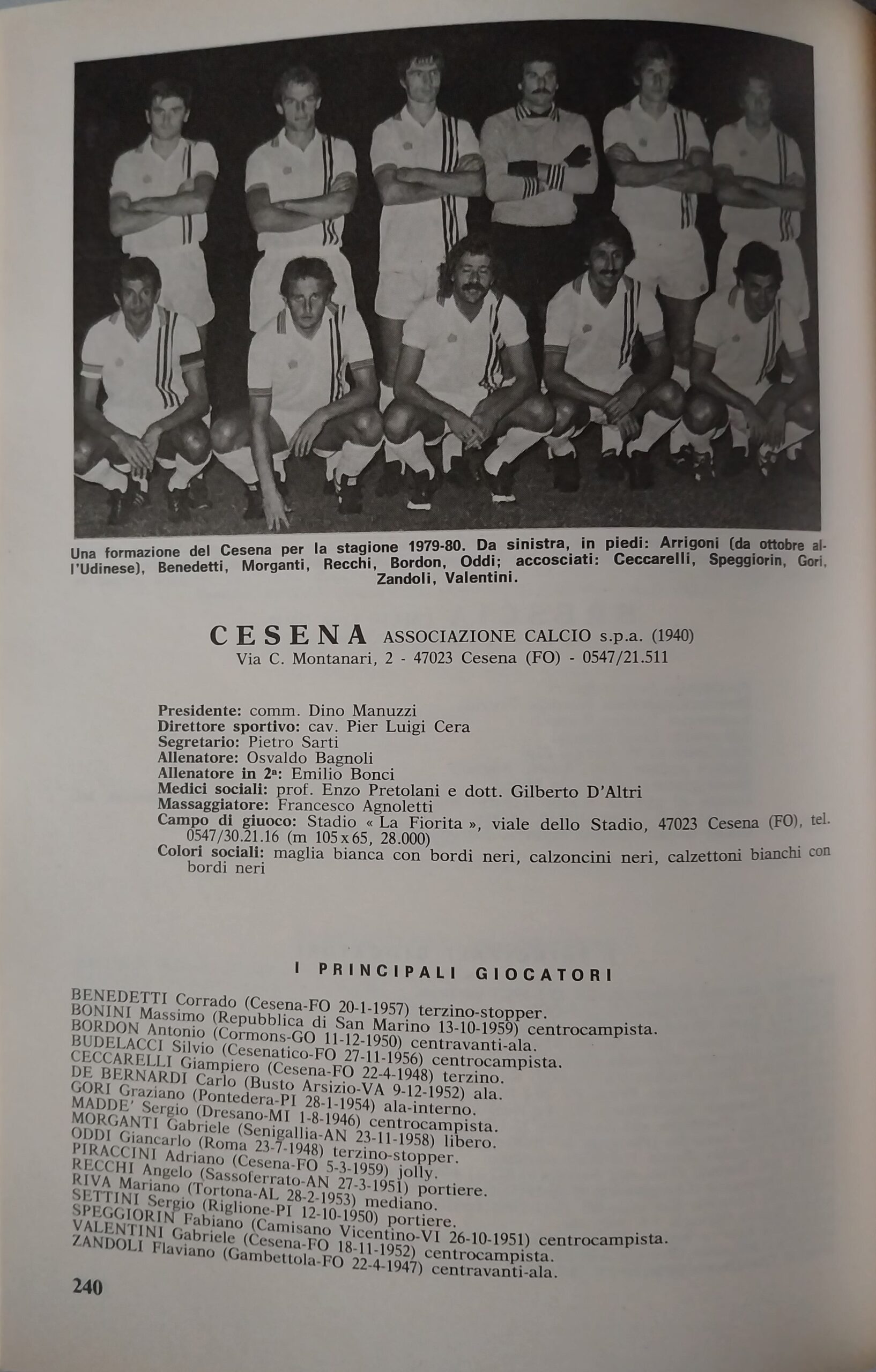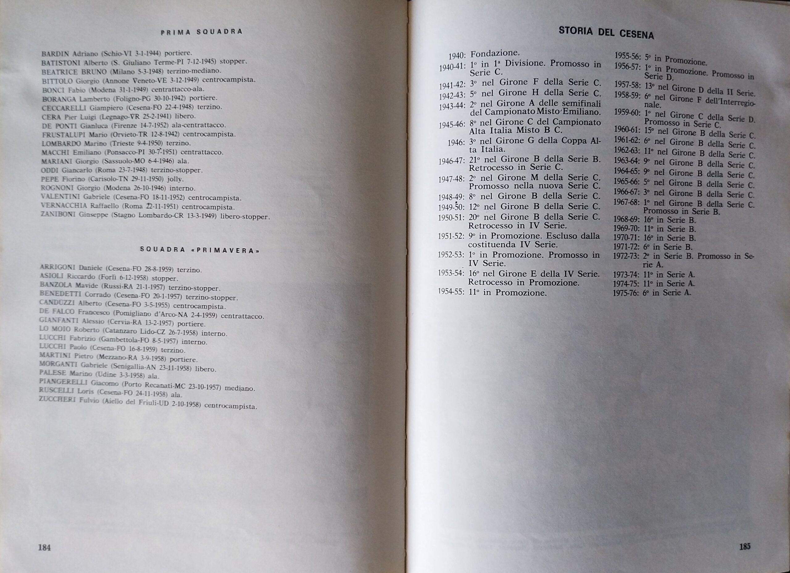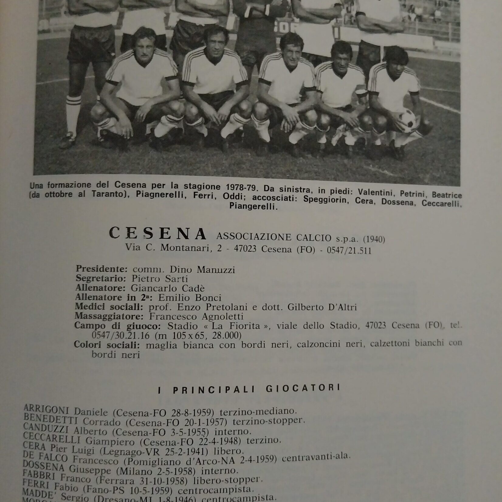 C. Casadei, Cesena Calcio. Dalla Barléda a Magdeburgo 1919-1976, Costantini, 1977