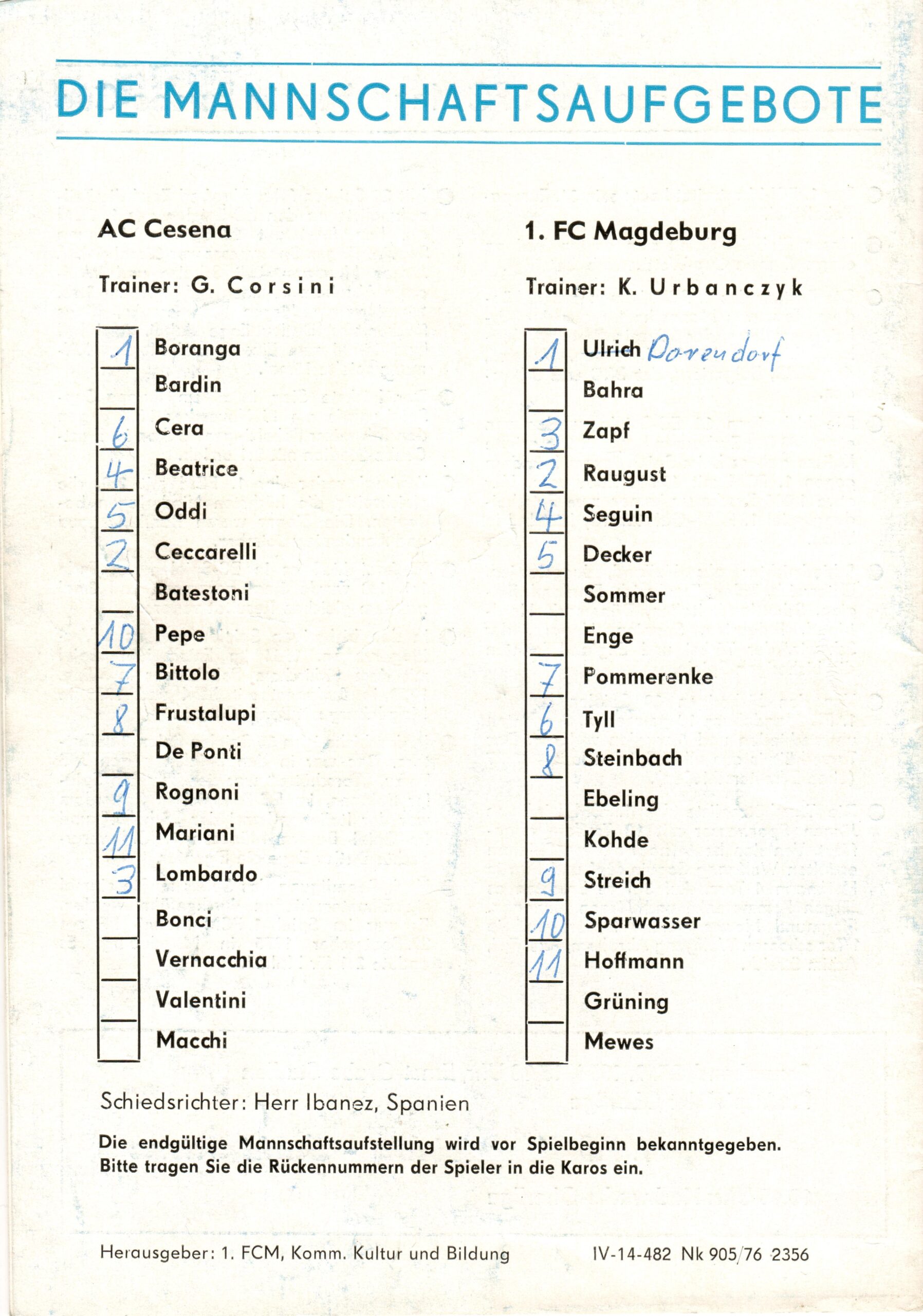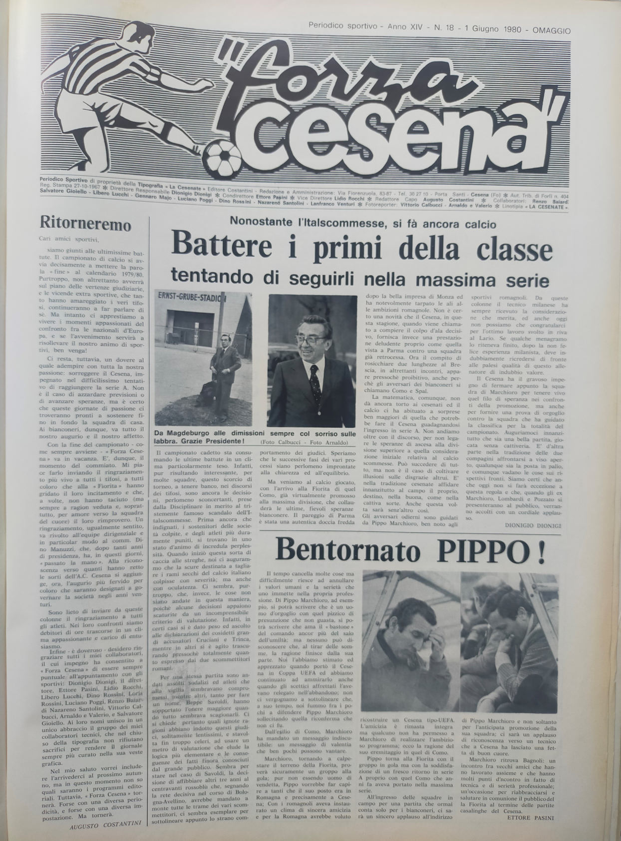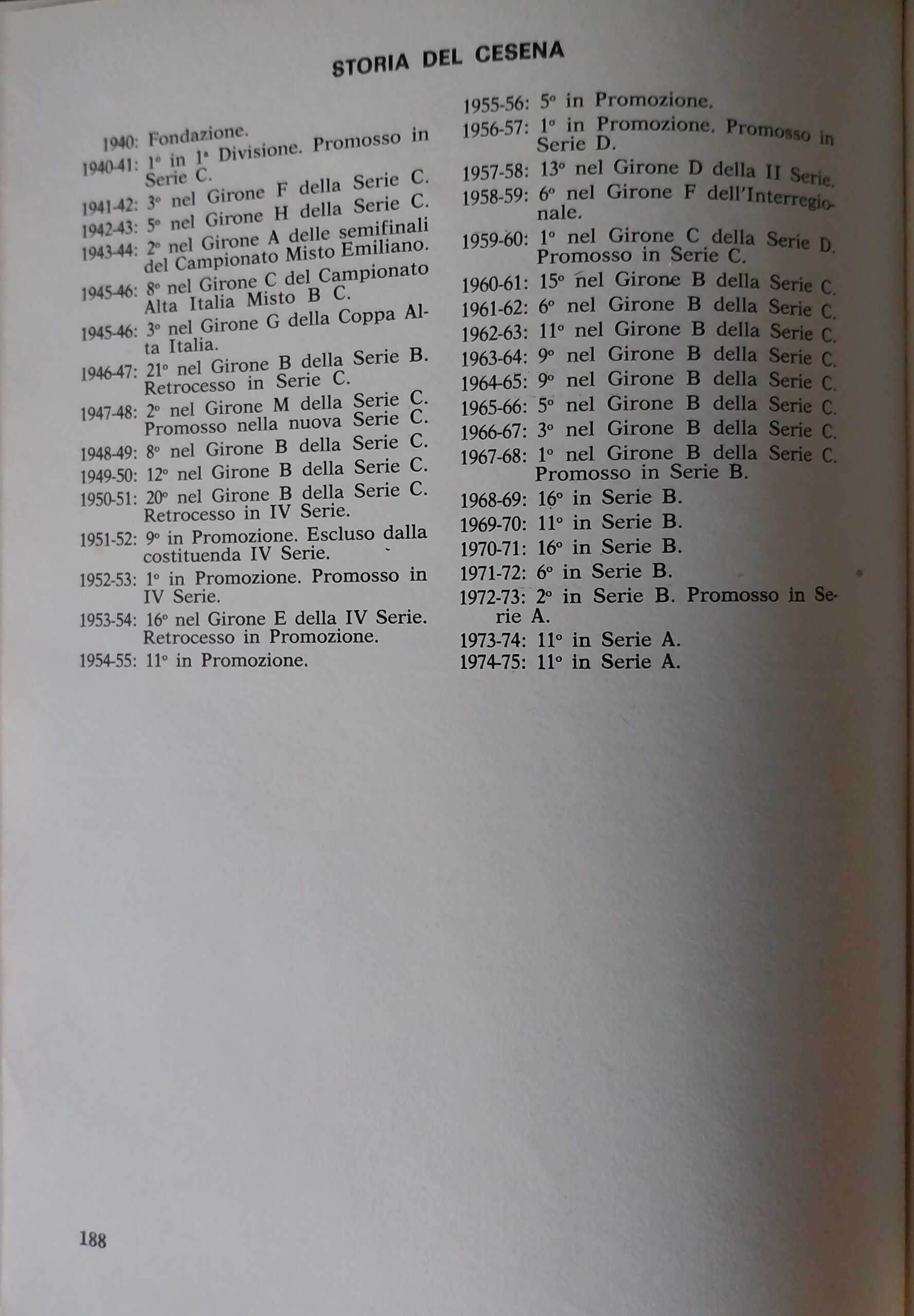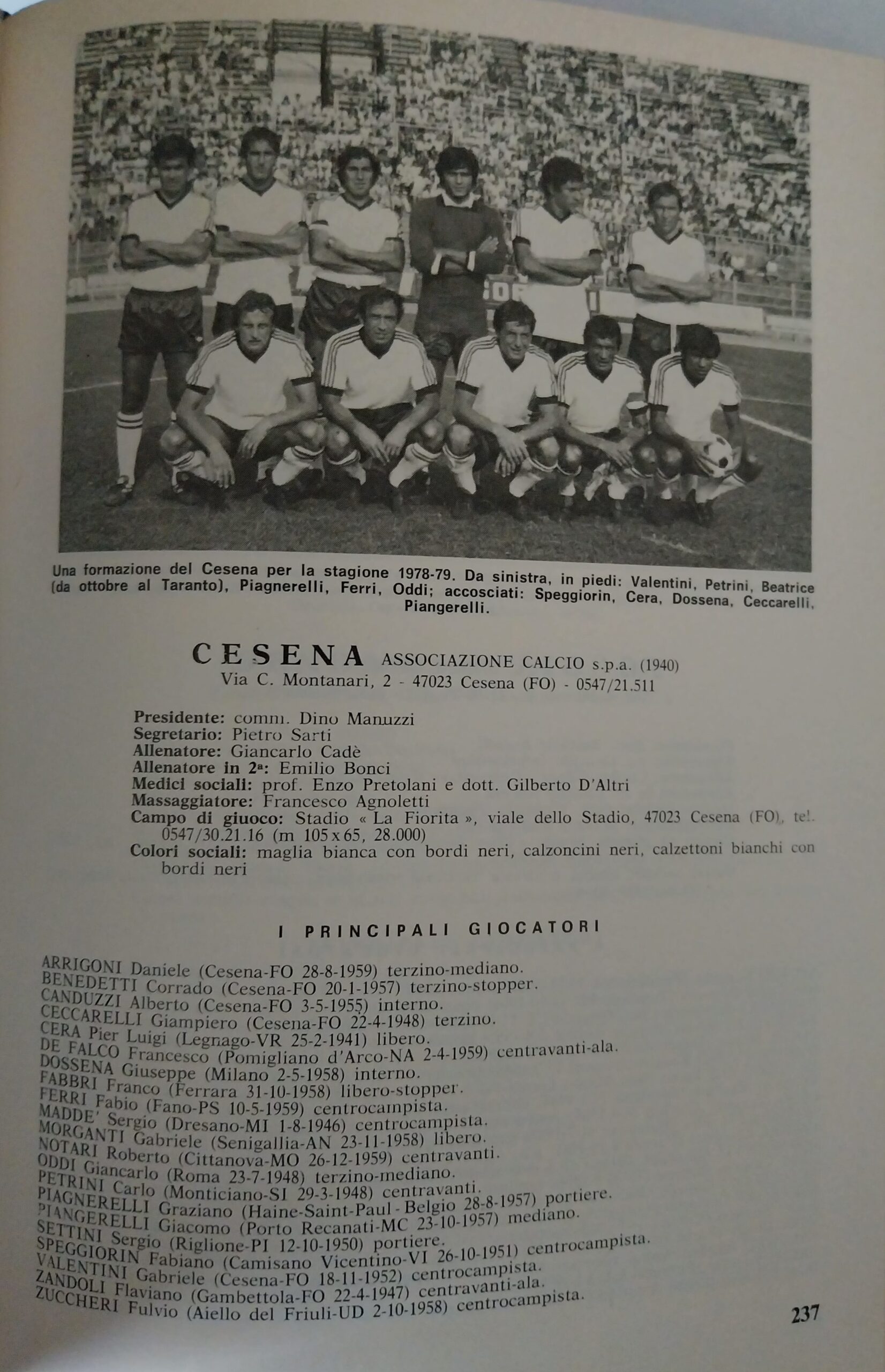 C. Casadei, Cesena Calcio. Dalla Barléda a Magdeburgo 1919-1976, Costantini, 1977