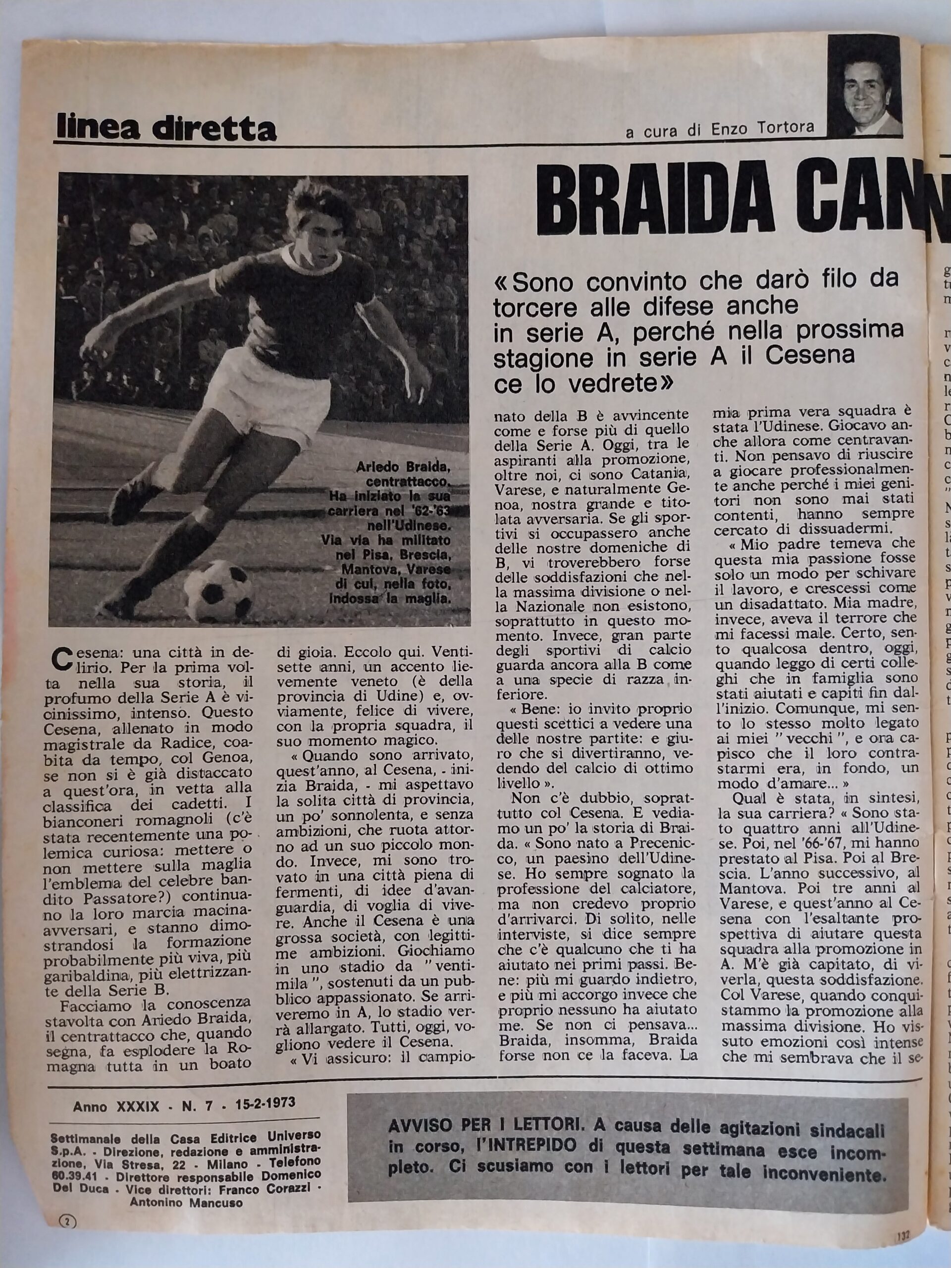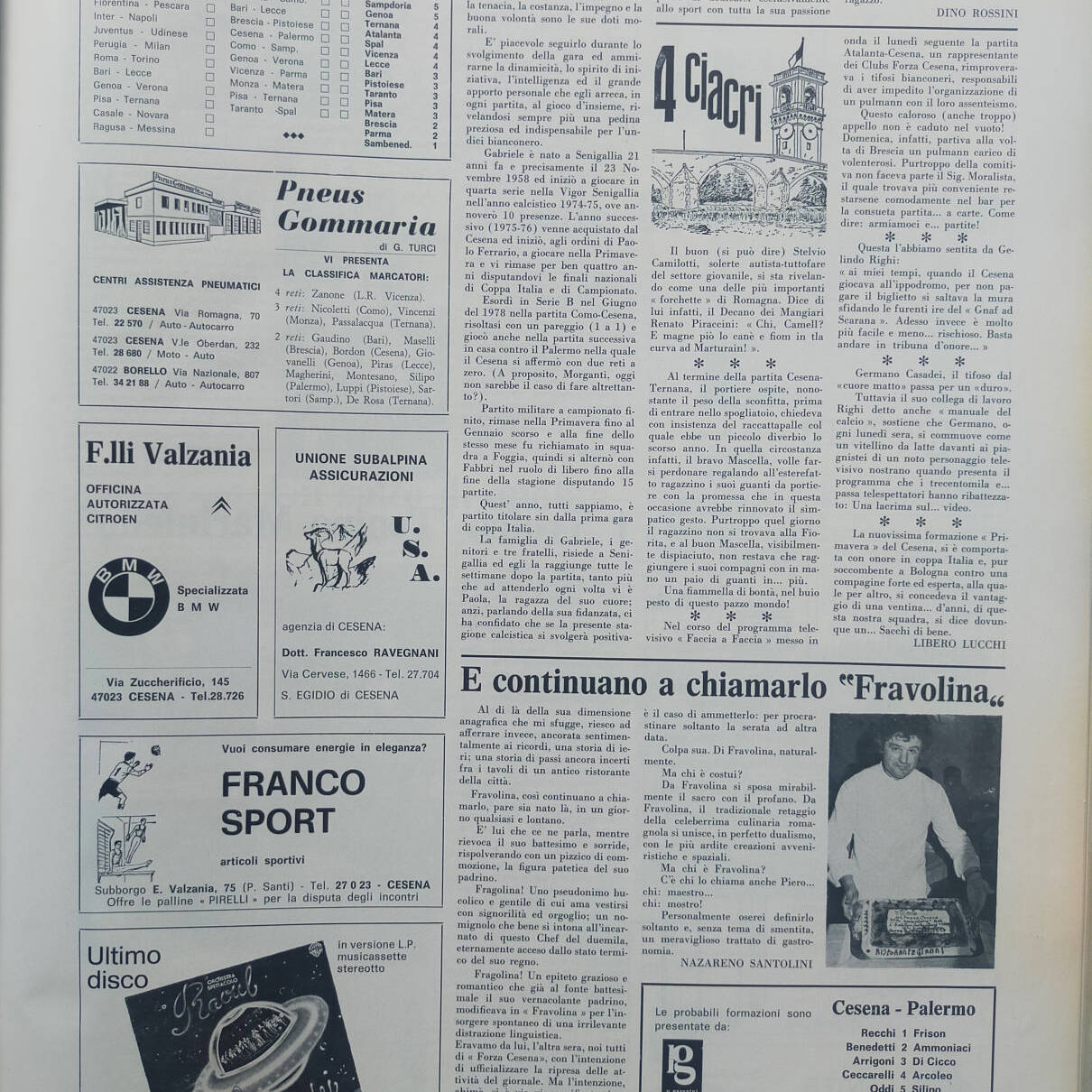 Tempo 28 gennaio 1973, n. 2-3, p. 55, articolo Cesena 1972-73