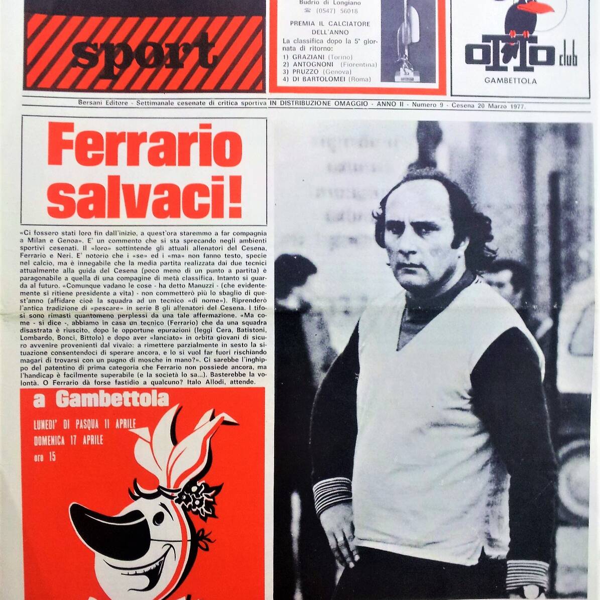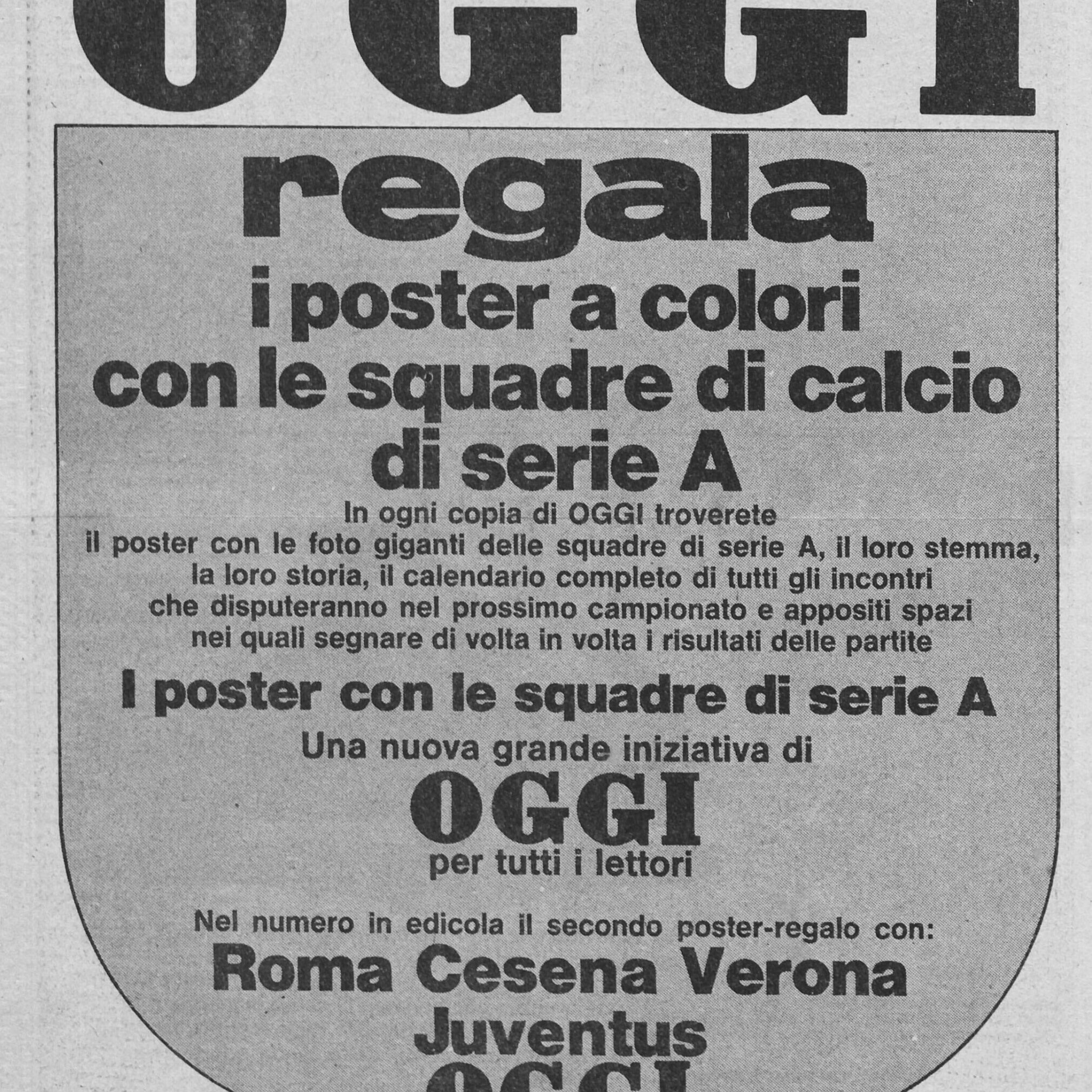 Stadio 17 ottobre 1976 pubblicità rivista Oggi in uscita in edicola con poster del Cesena 1976-77