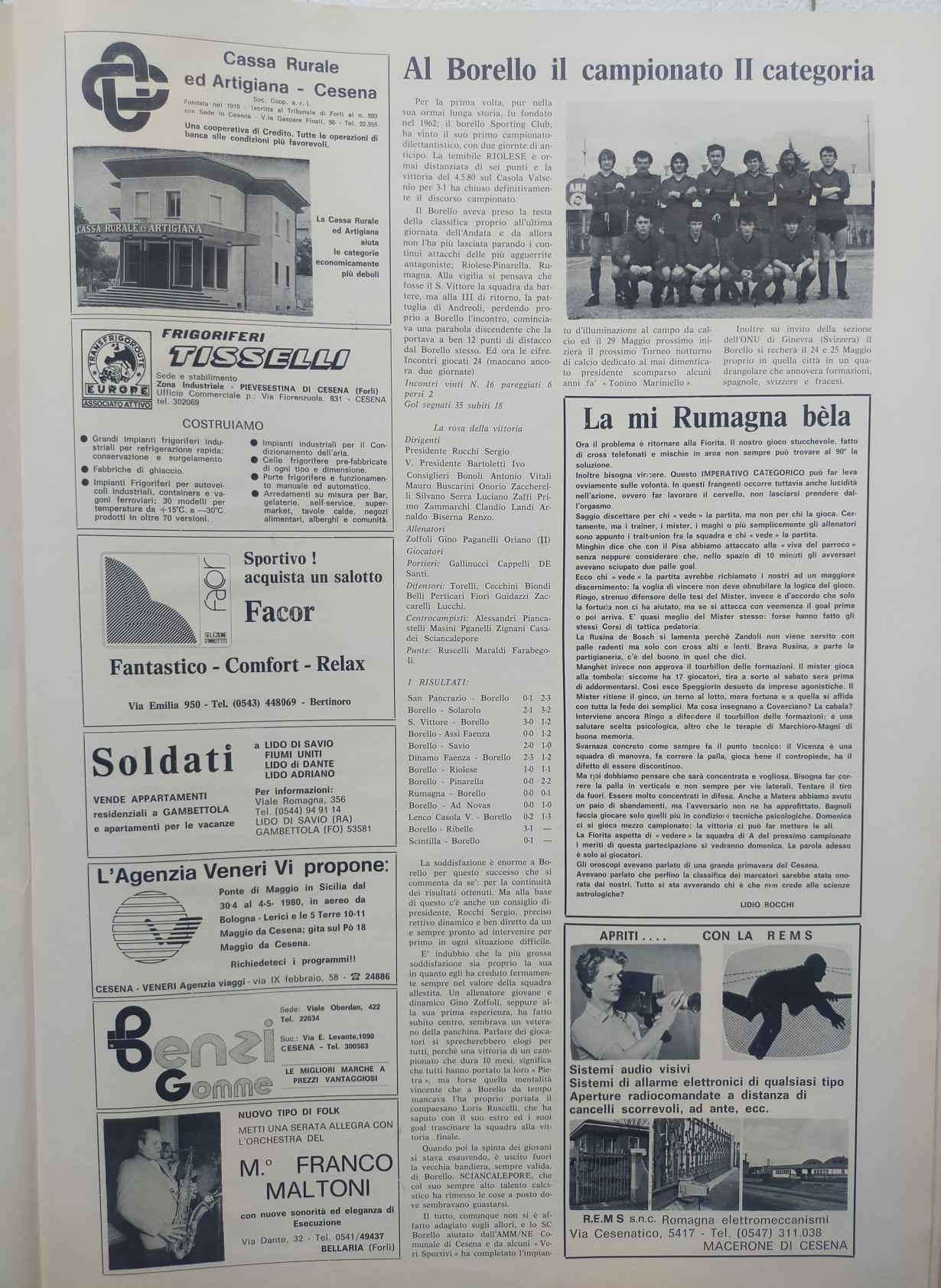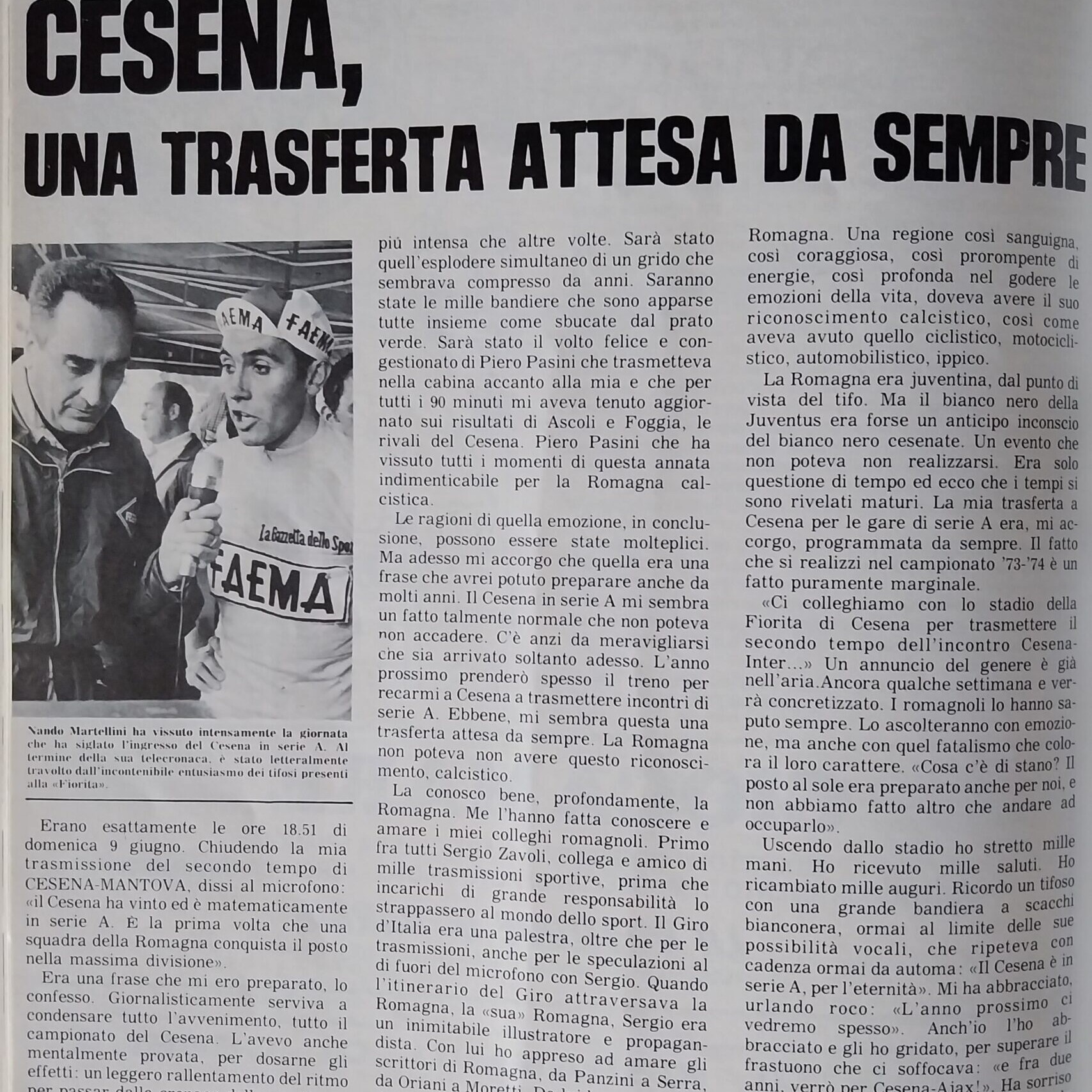 Romagna maggio 1974, n. 5, p. 27, articolo Cera Cesena 1973-74