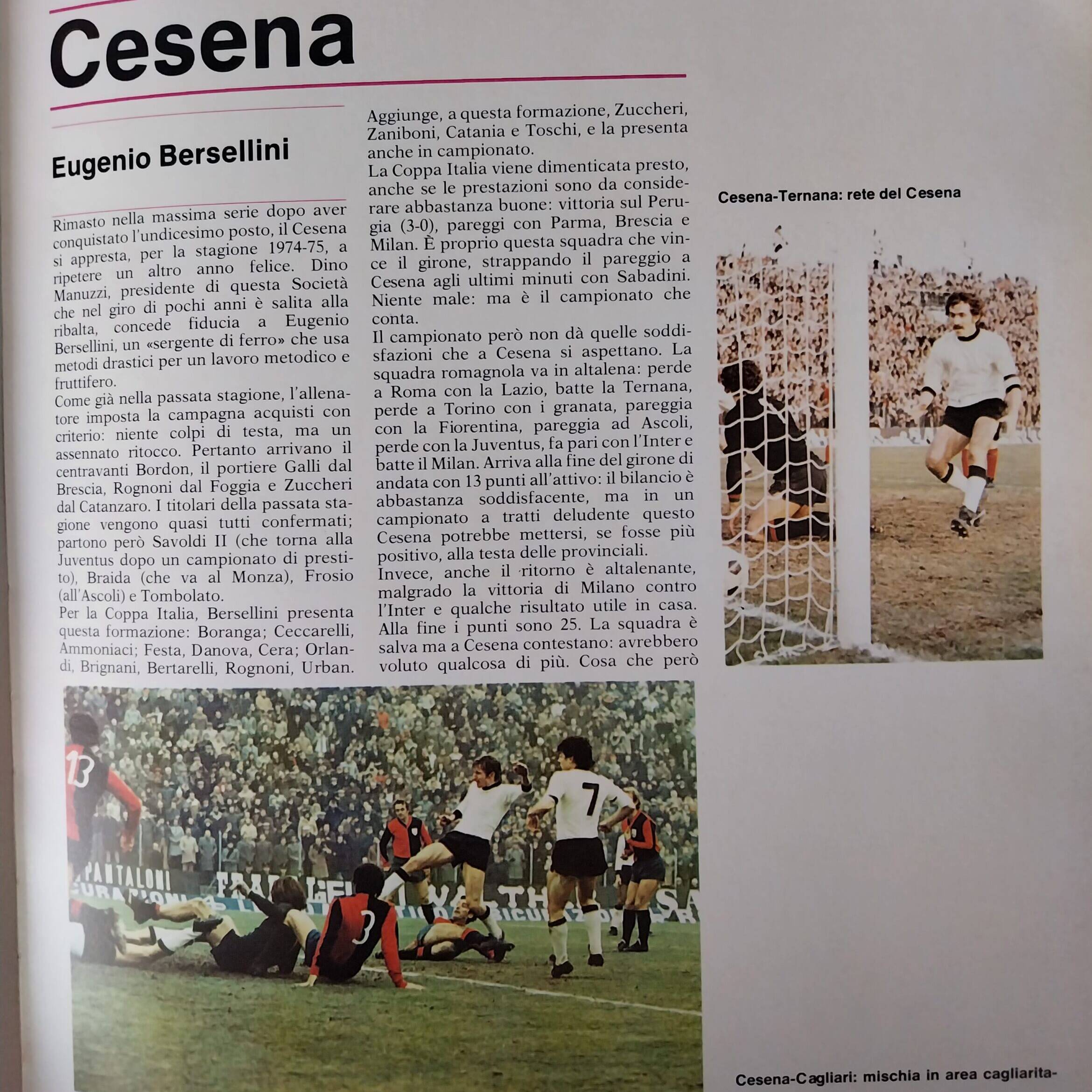 Almanacco del Calcio Panini 1975 presentazione Cesena 1974-75 2