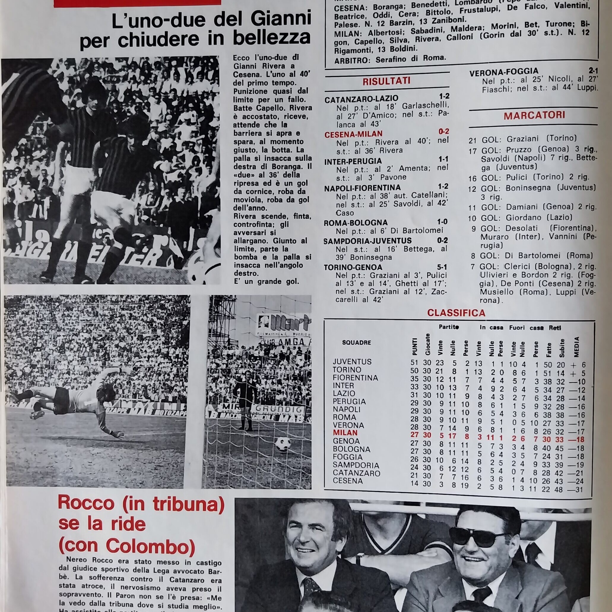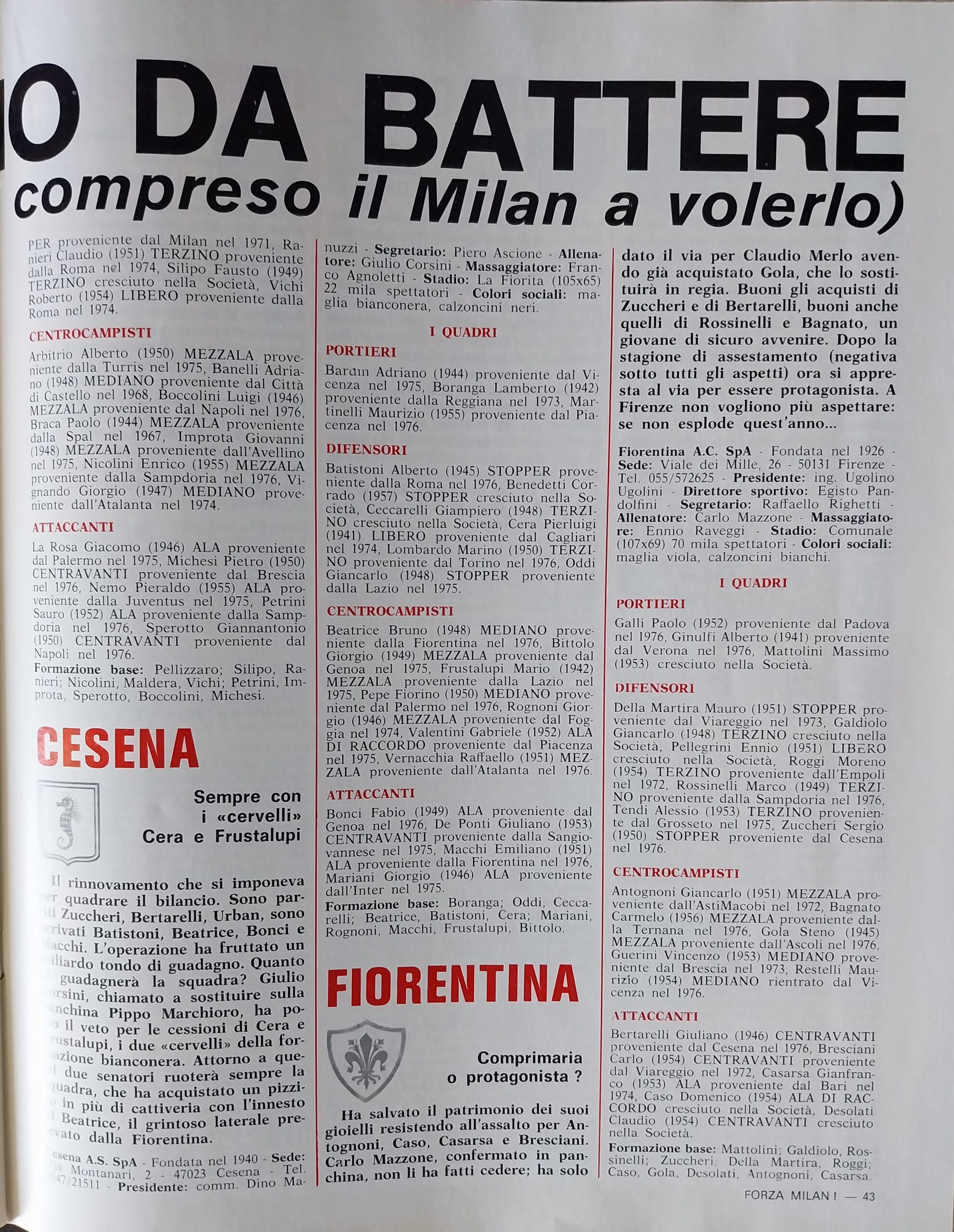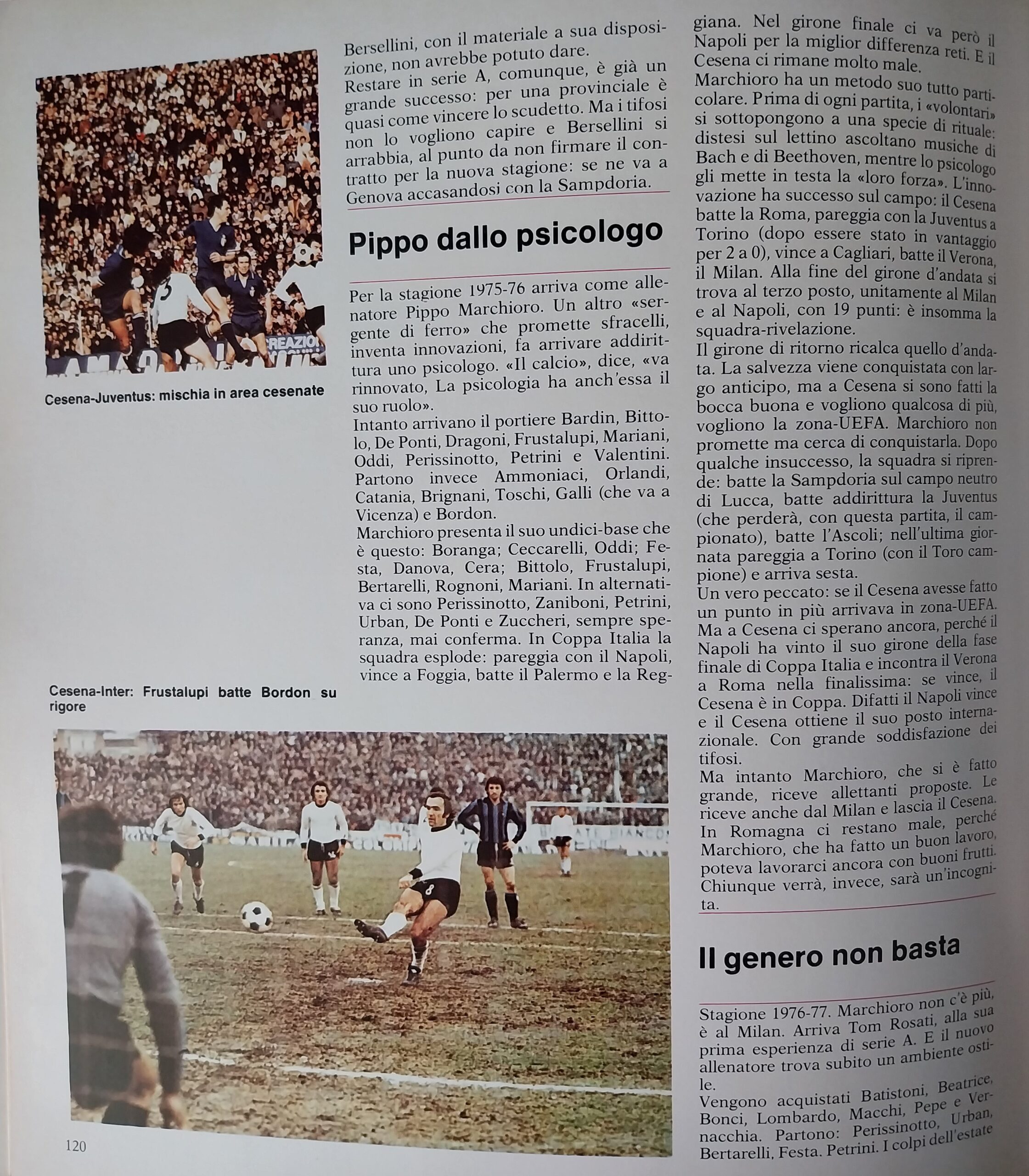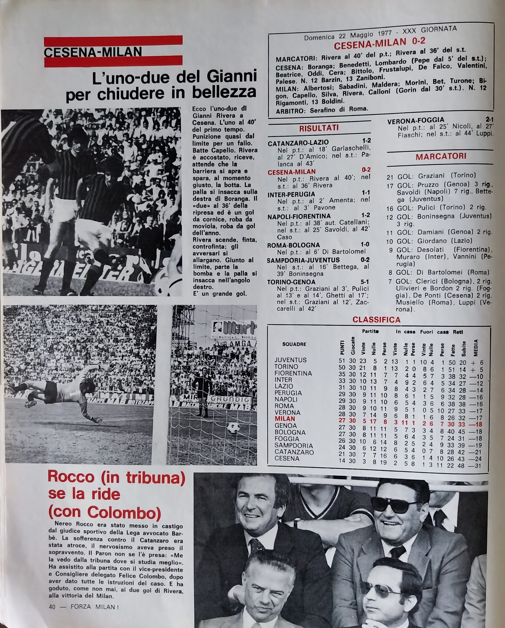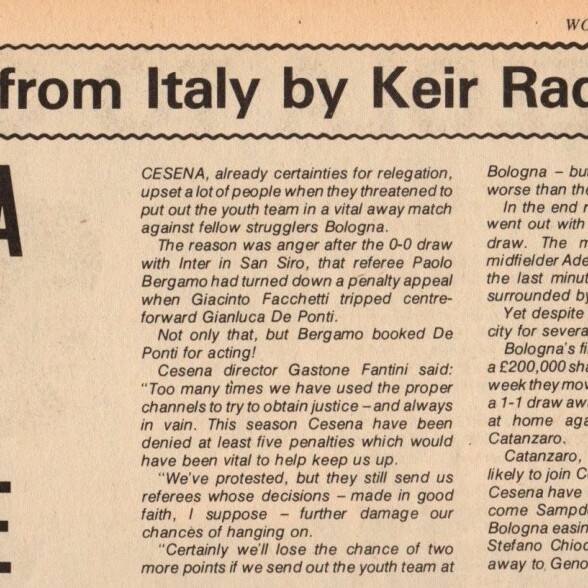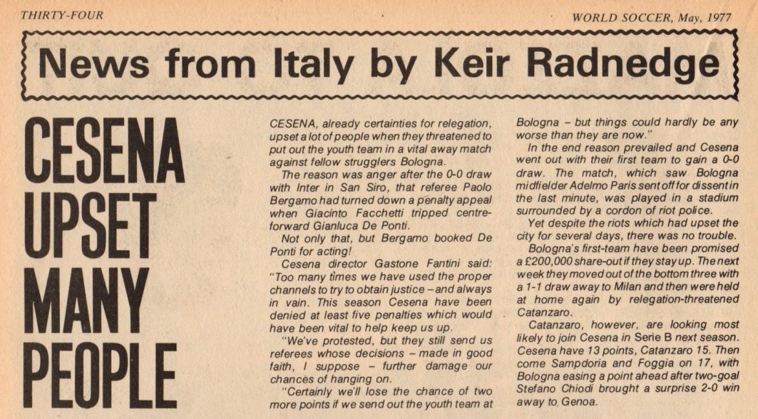 World Soccer, Philip Rising, maggio 1977, n. 5, p. 35, articolo Cesena 1976-77