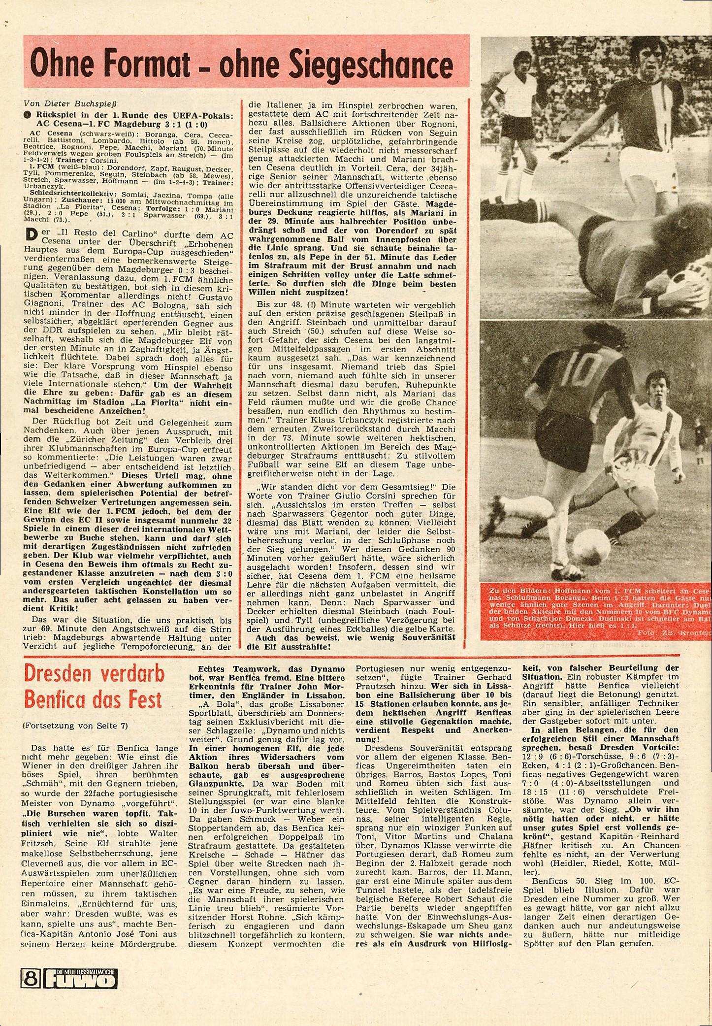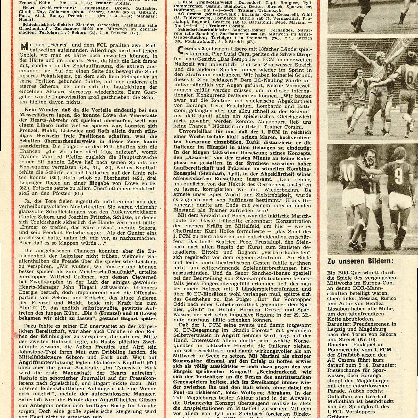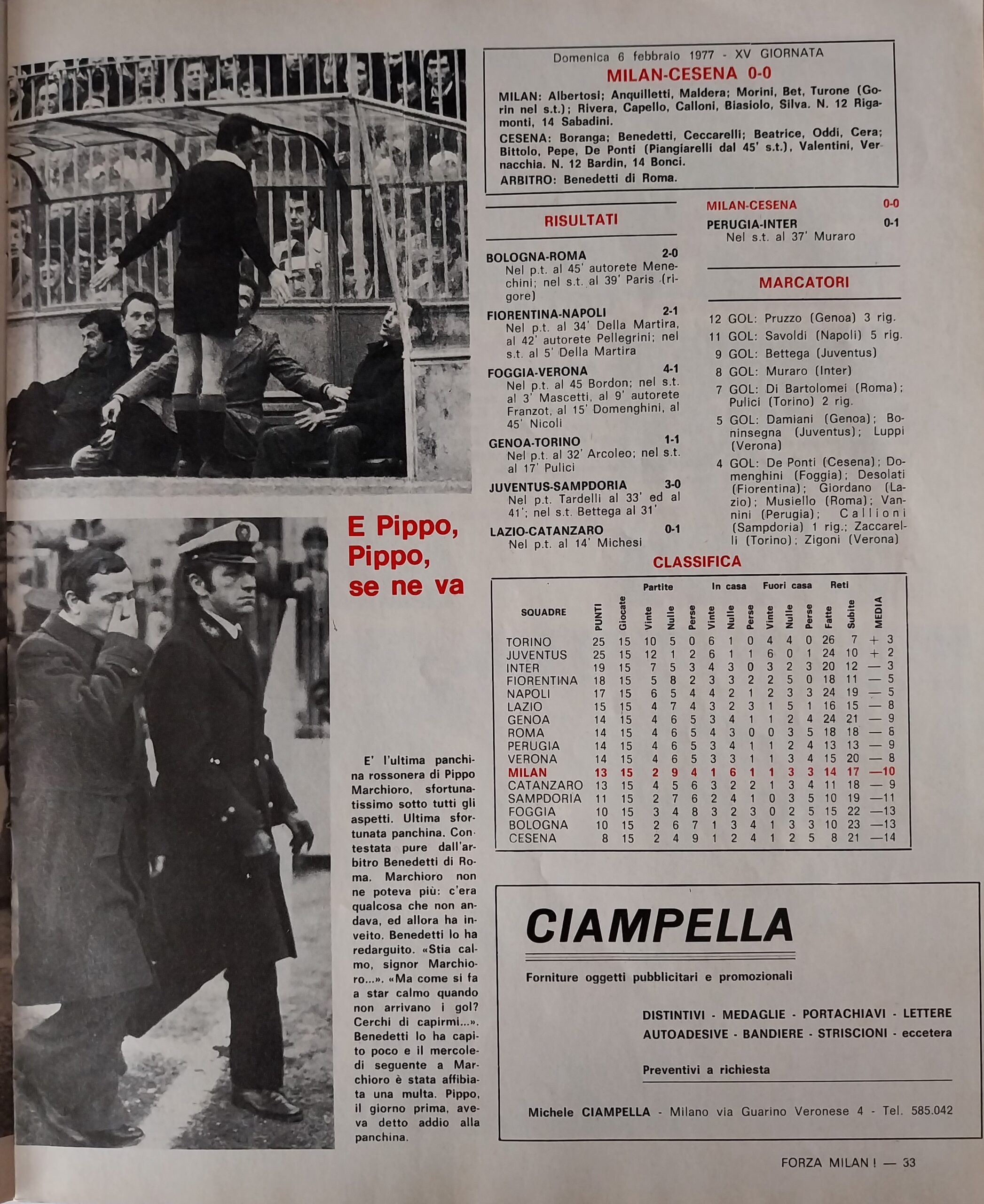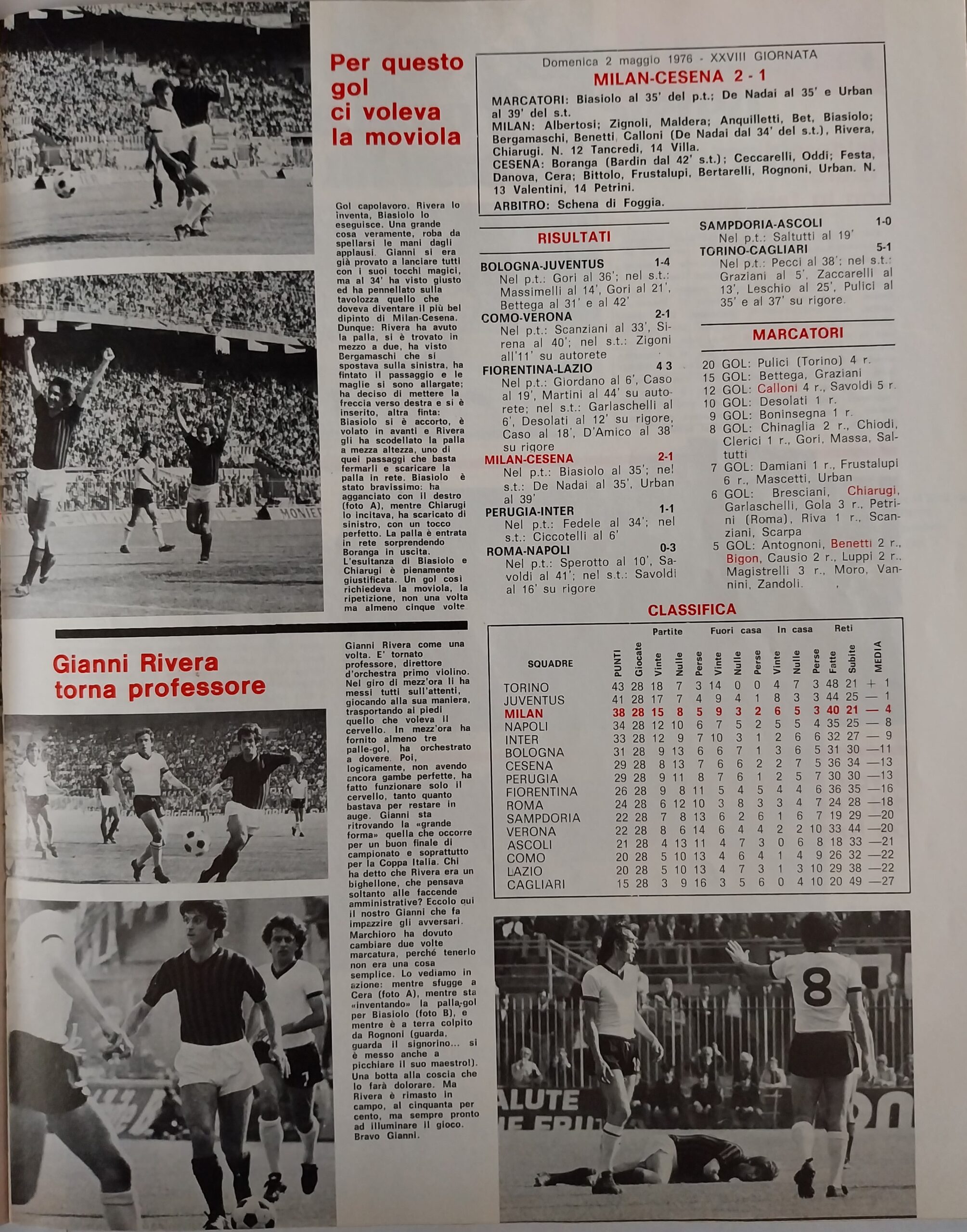 World Soccer, Philip Rising, maggio 1977, n. 5, p. 35, articolo Cesena 1976-77