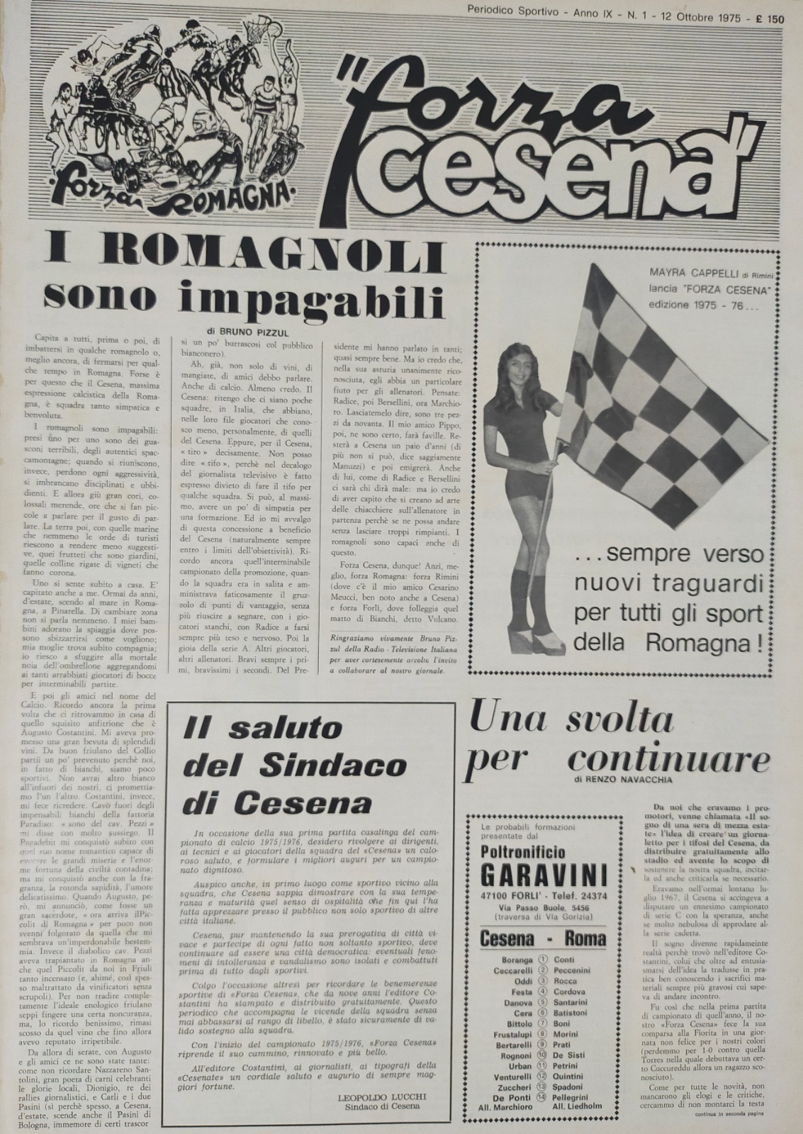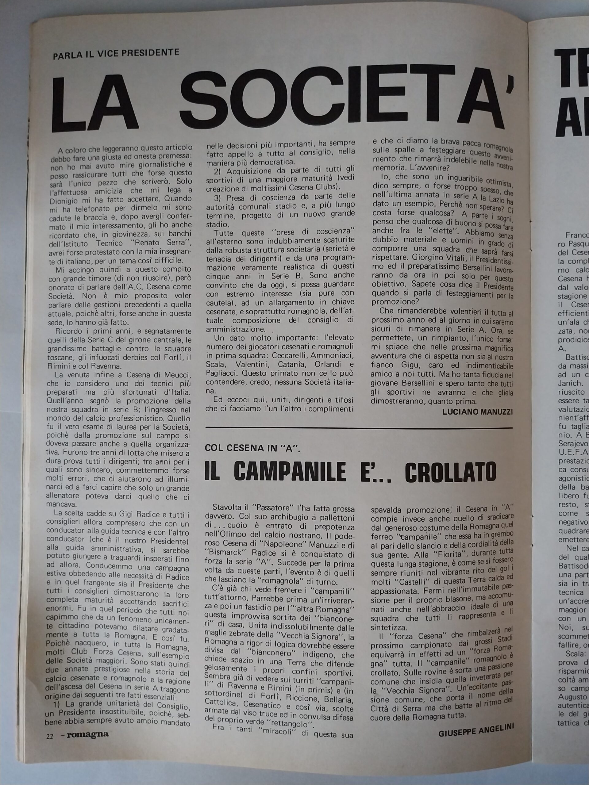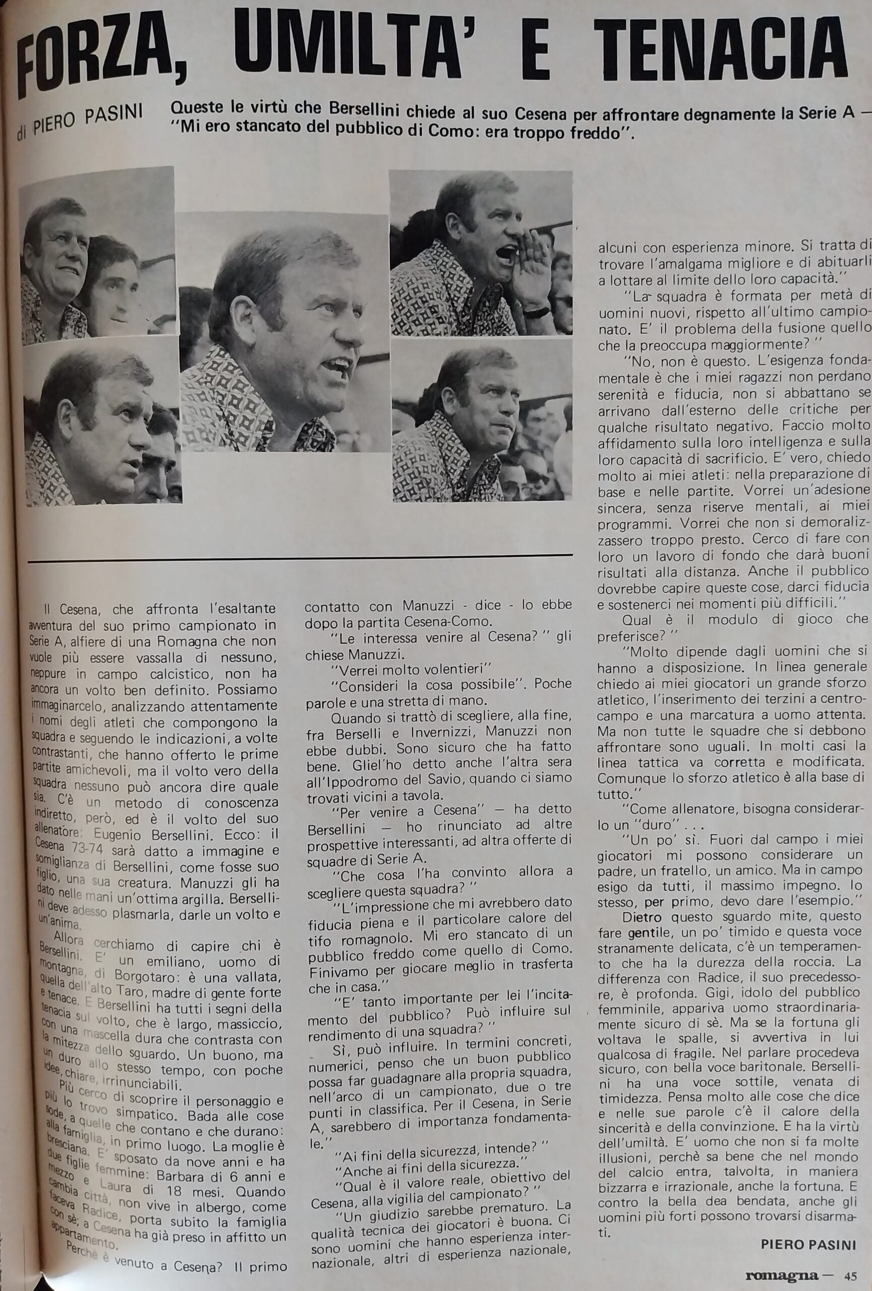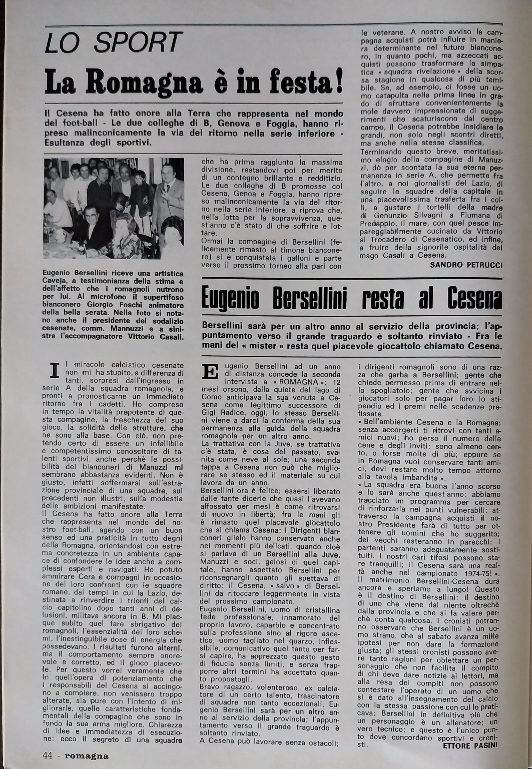 Romagna ottobre 1974, n. 10, p. 22, articolo Bersellini e Onesti 1974-75