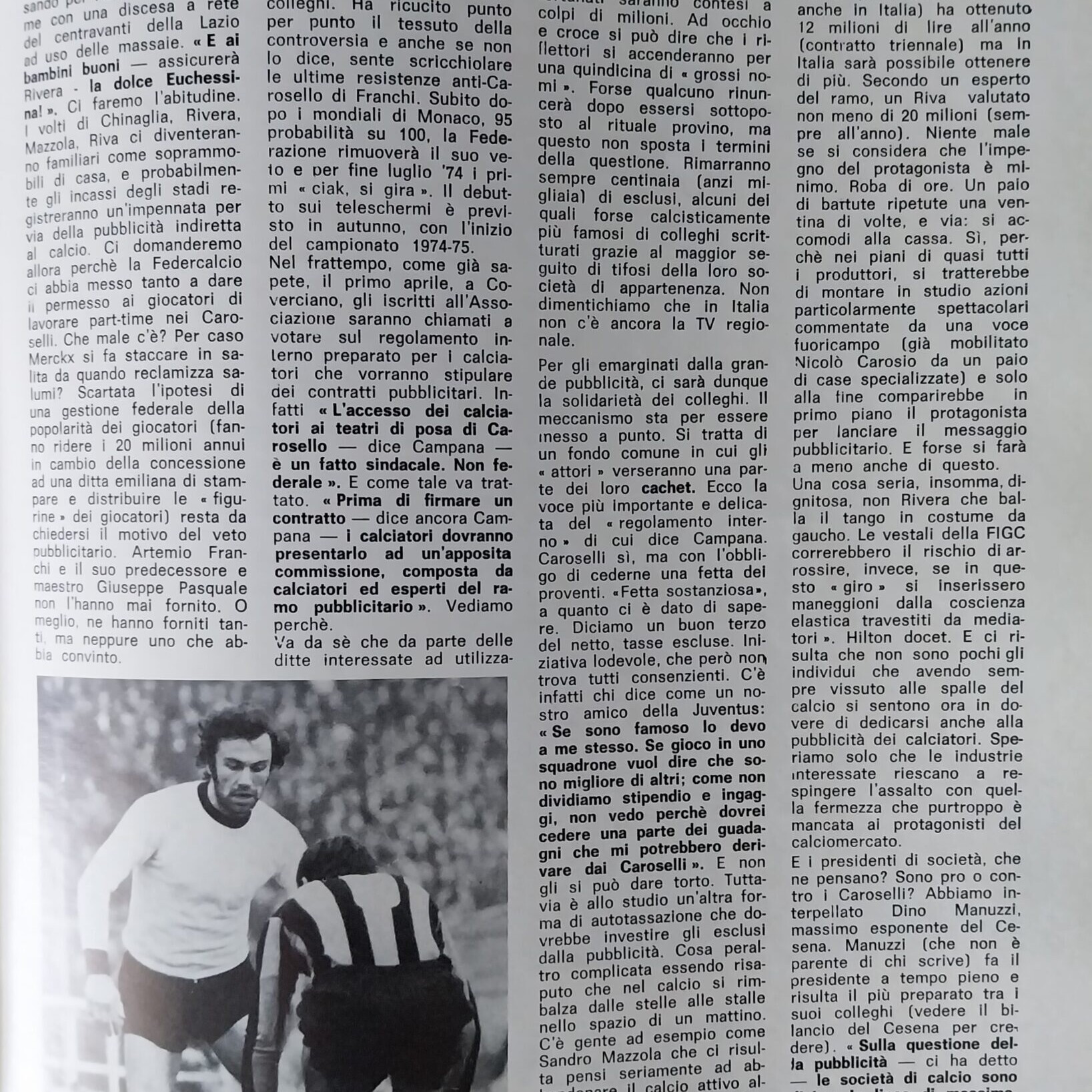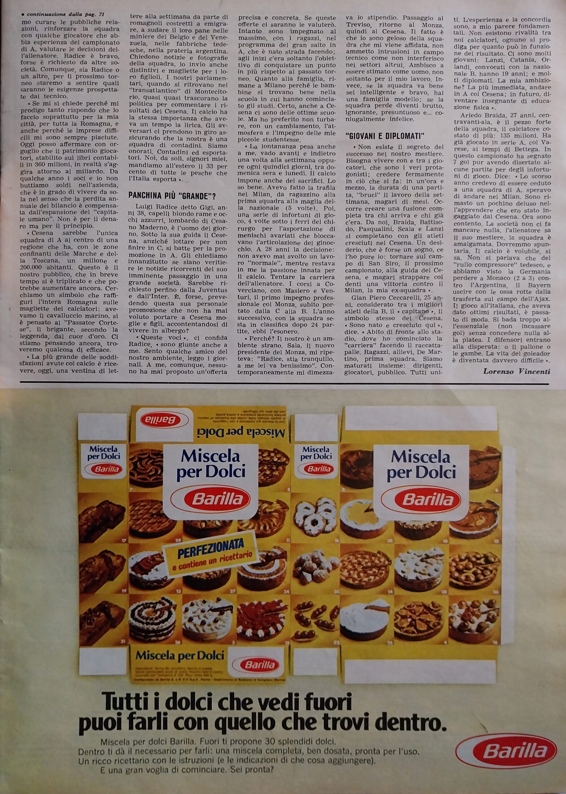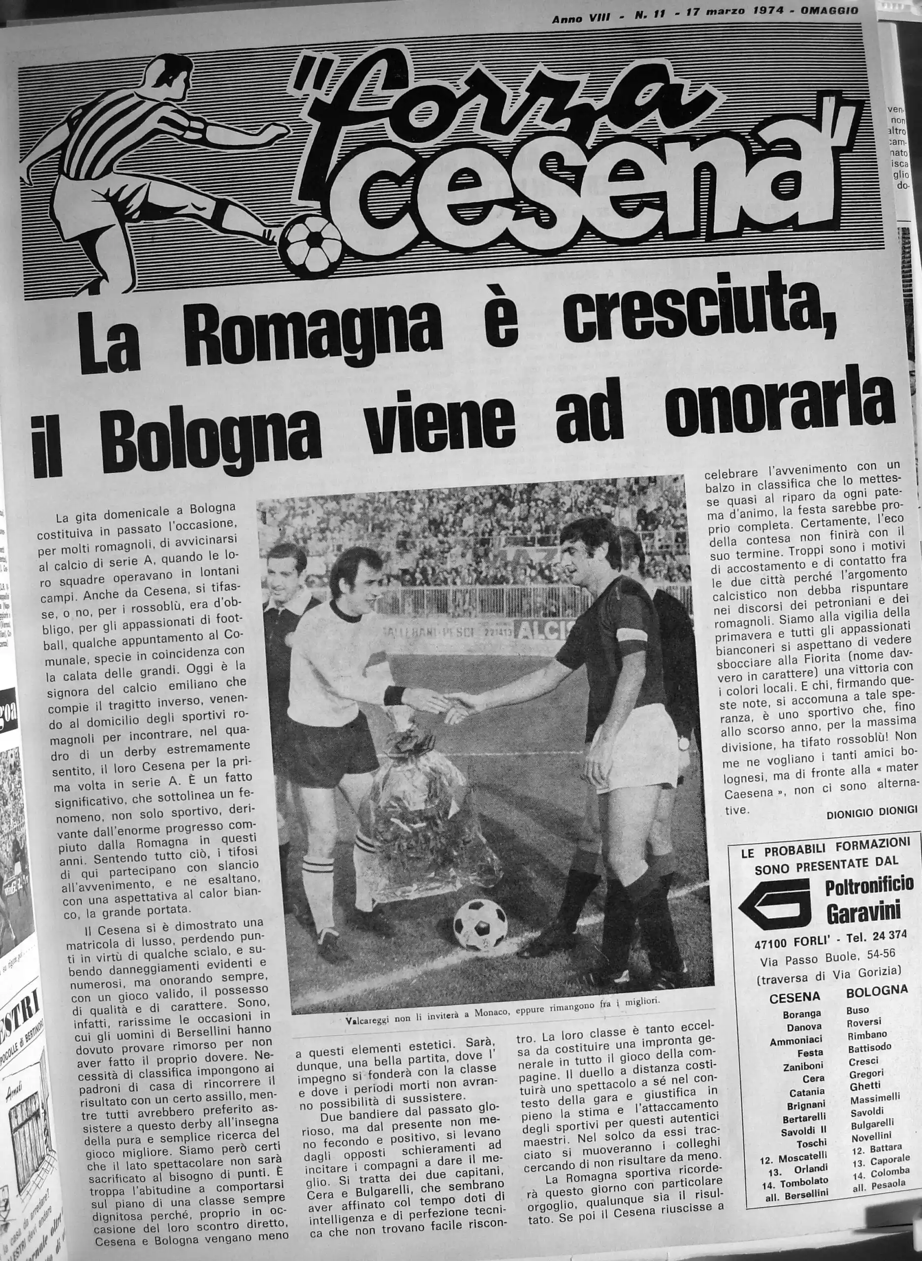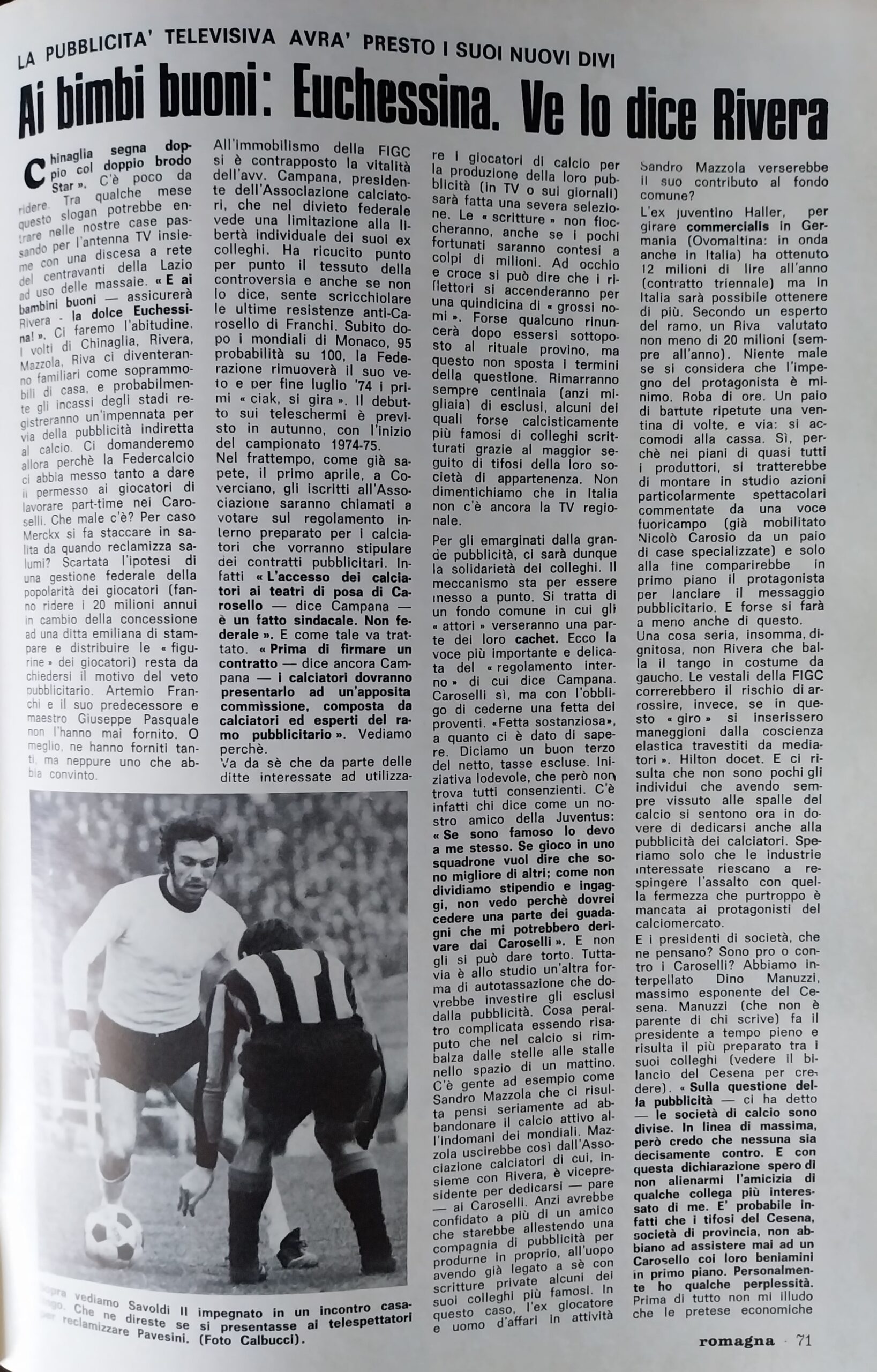 Romagna marzo 1974, n. 3, p. 71, articolo Carosello e il Cesena 1973-74