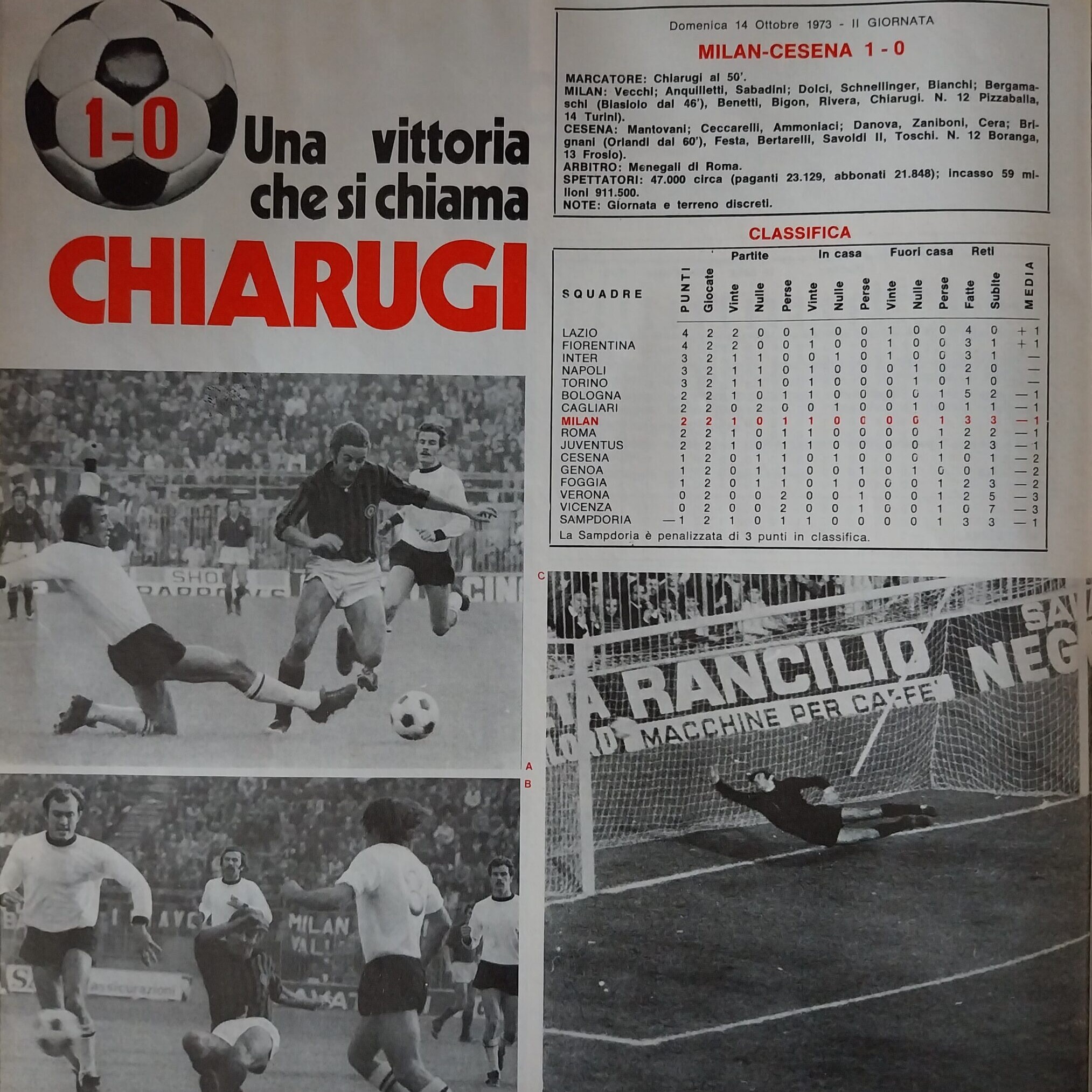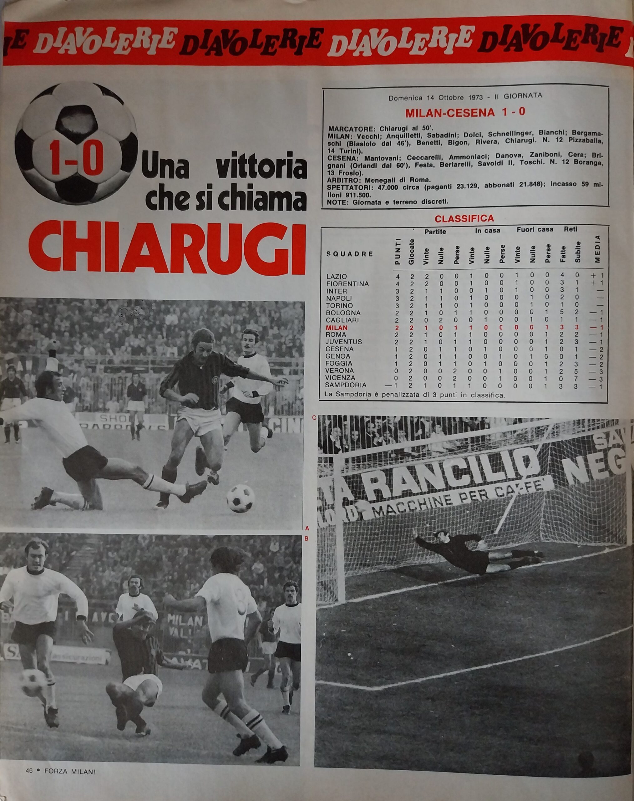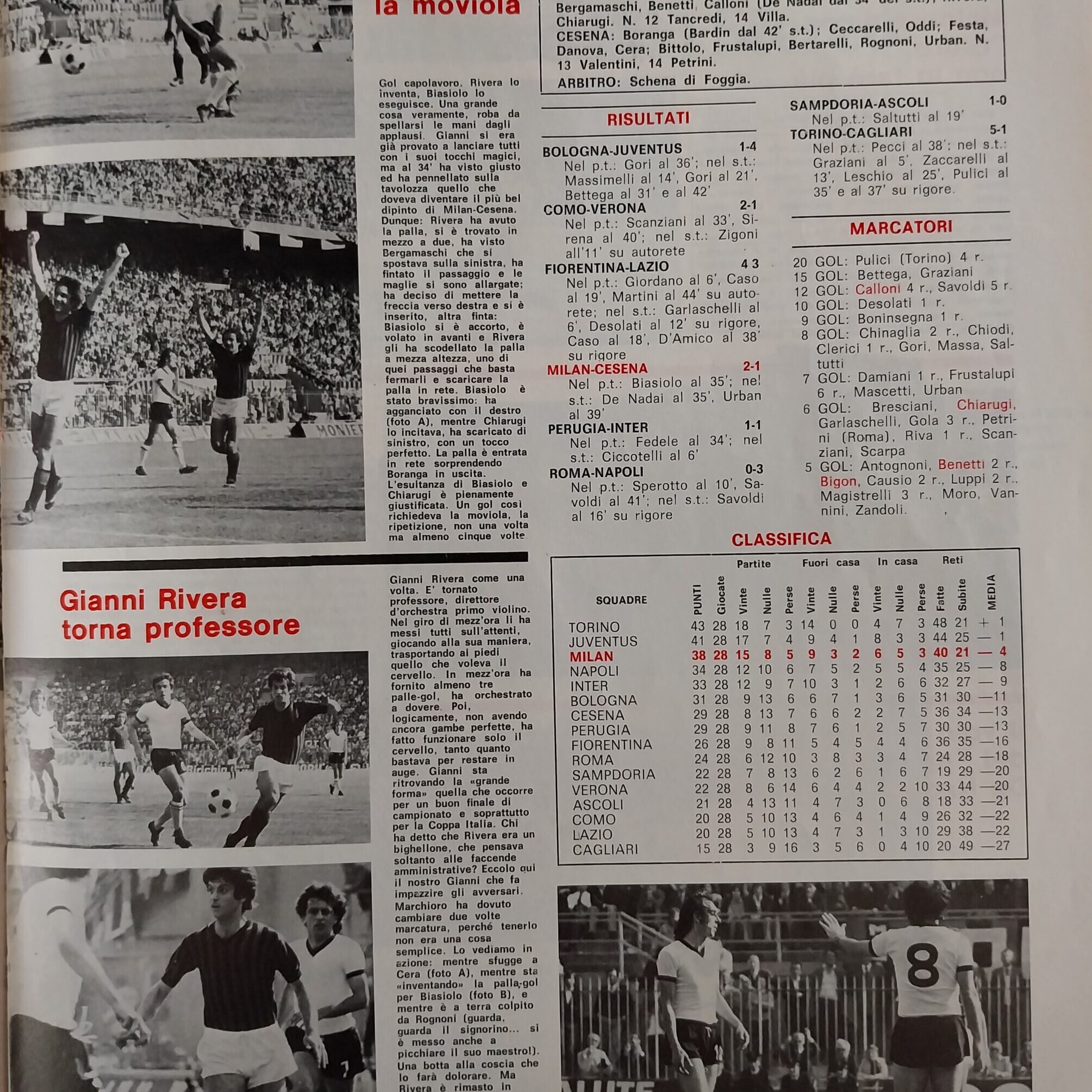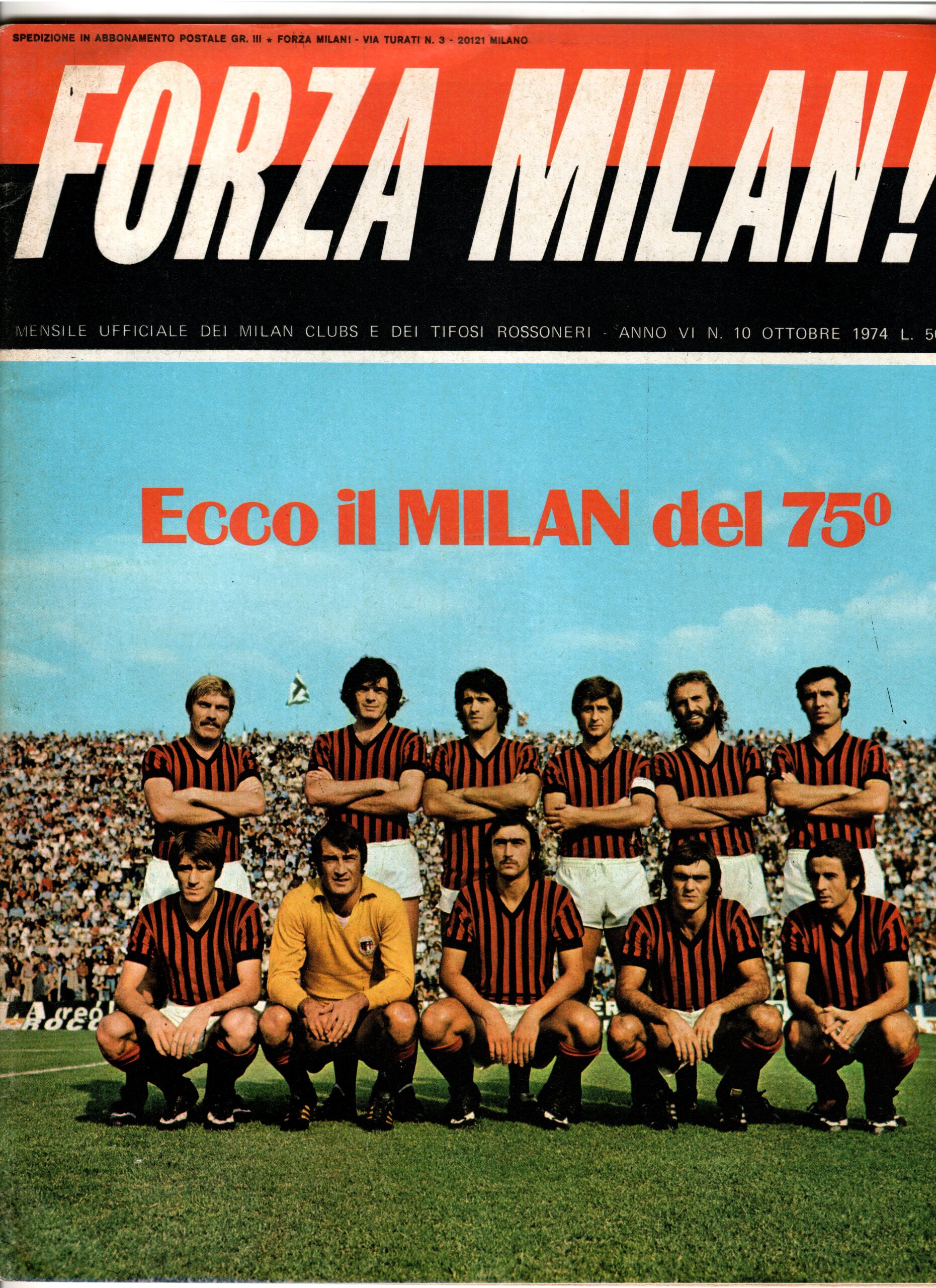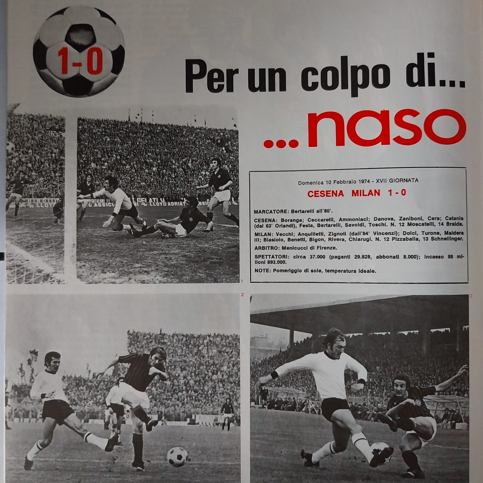 10 novembre 1973, n. 45, poster formazione di Milan-Cesena
