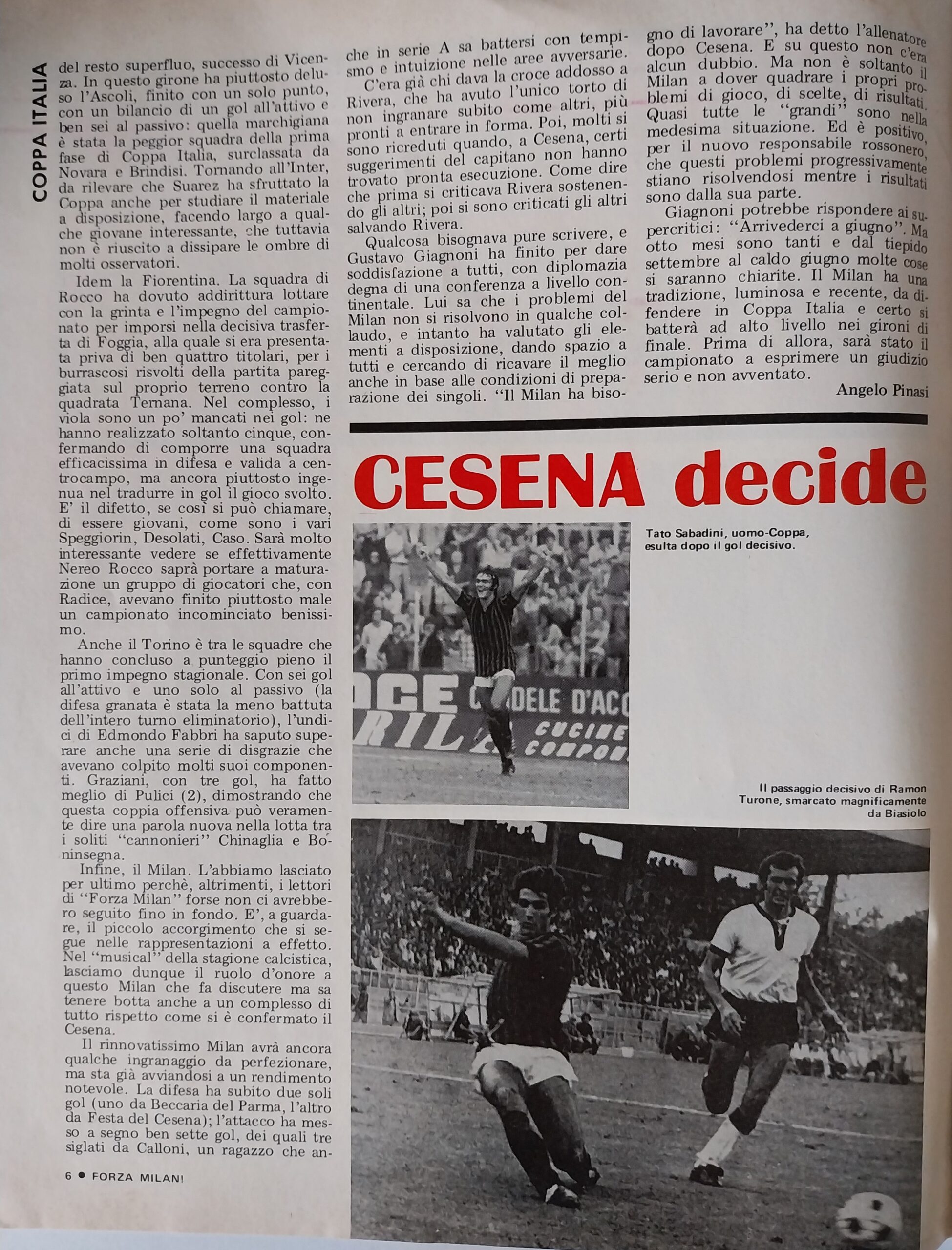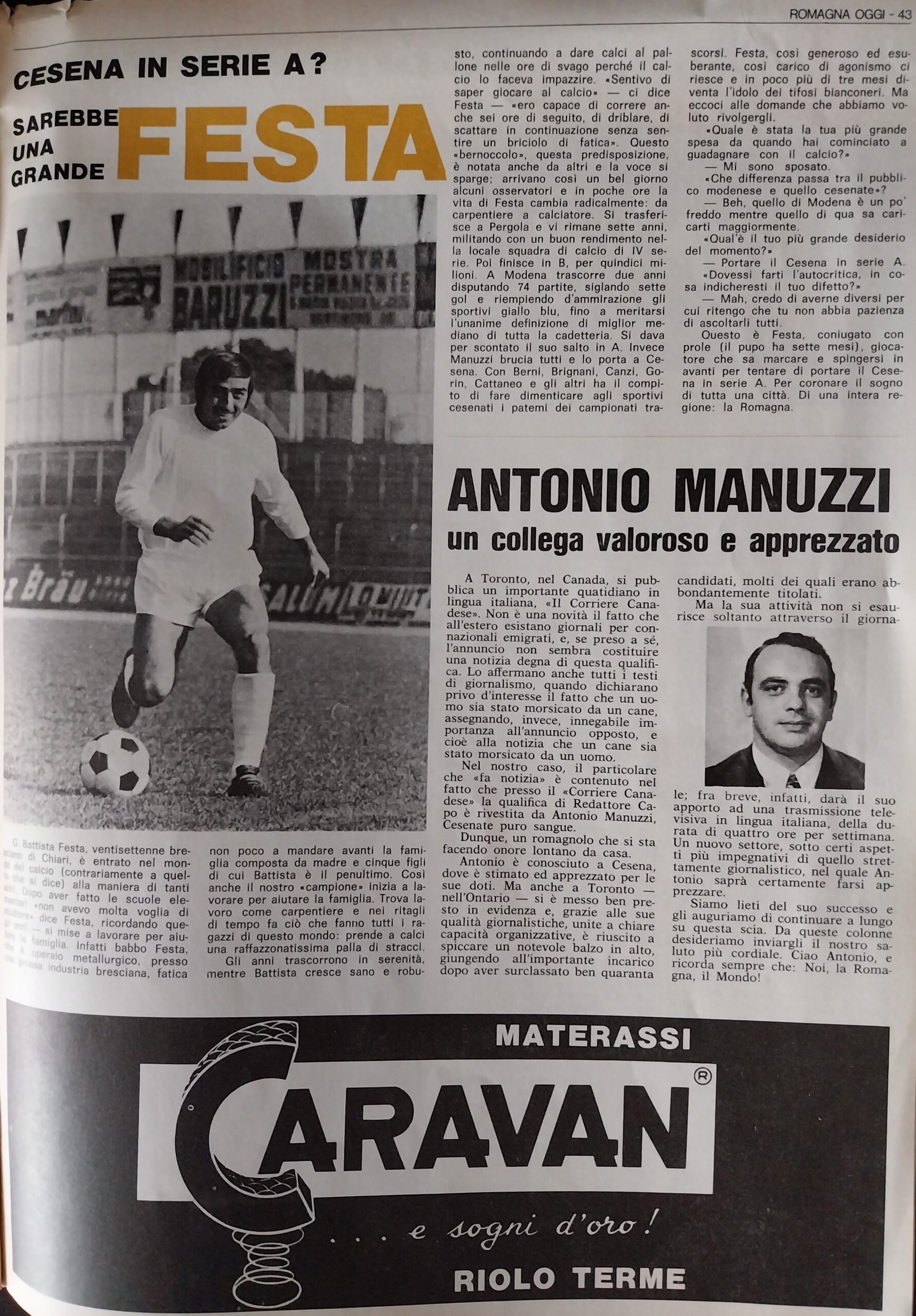 Romagna Oggi 14 novembre 1971, n. 8, p. 43, articolo Cesena 1971-72 Festa