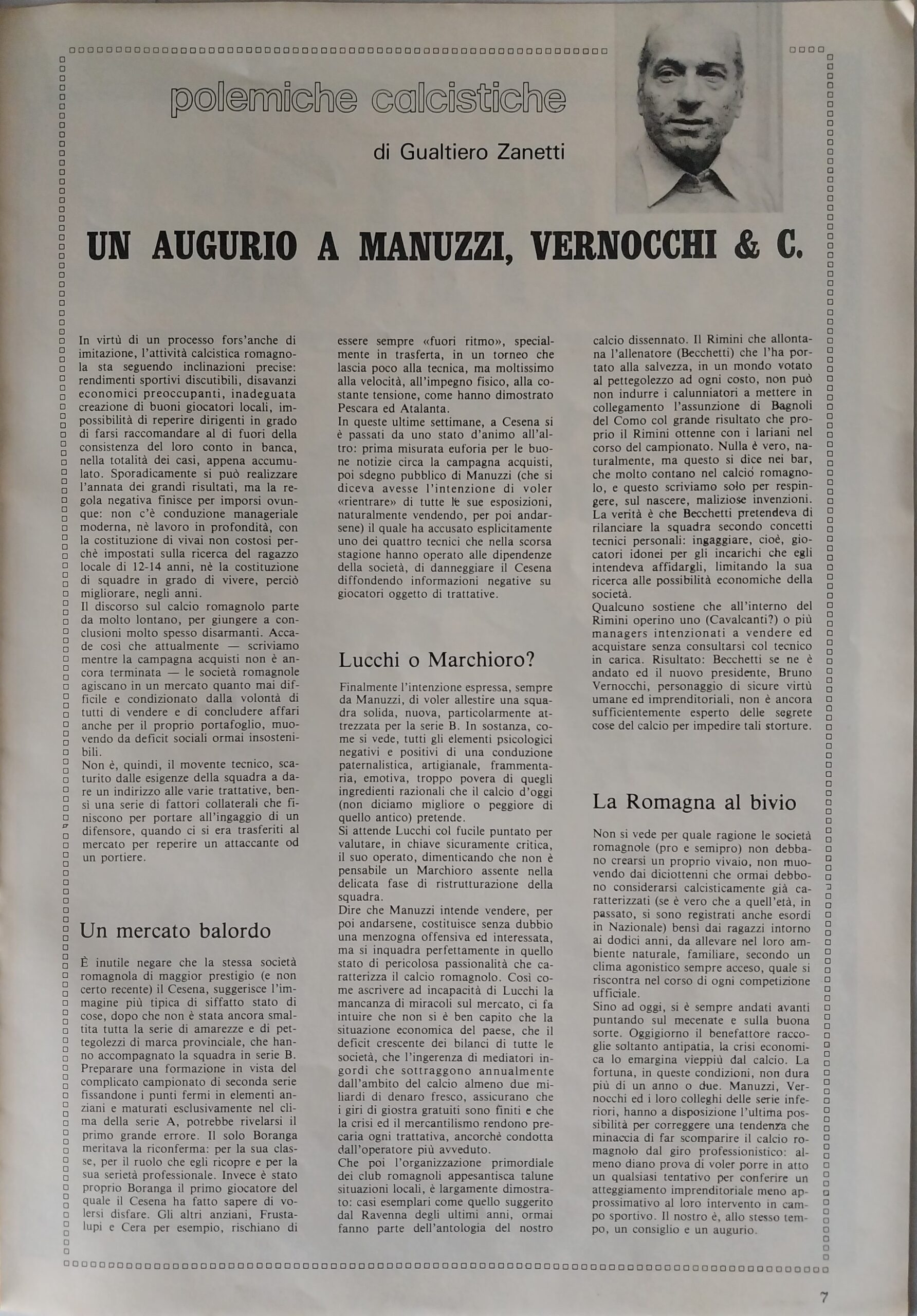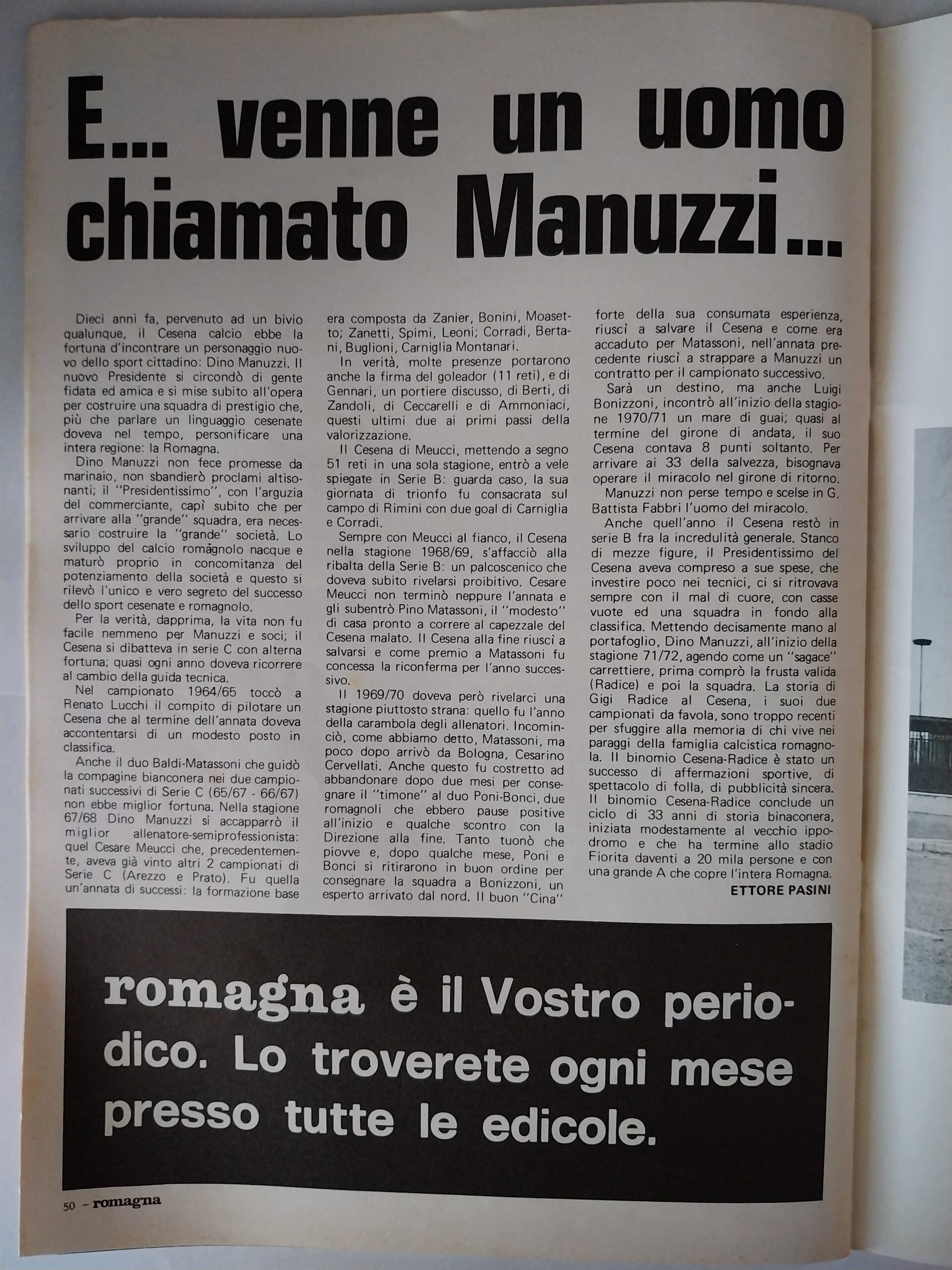 Romagna luglio 1974, n. 7, p. 47, articolo Cesena Manuzzi