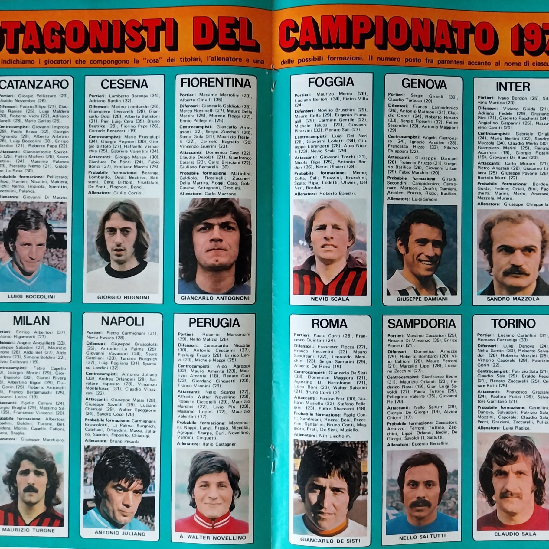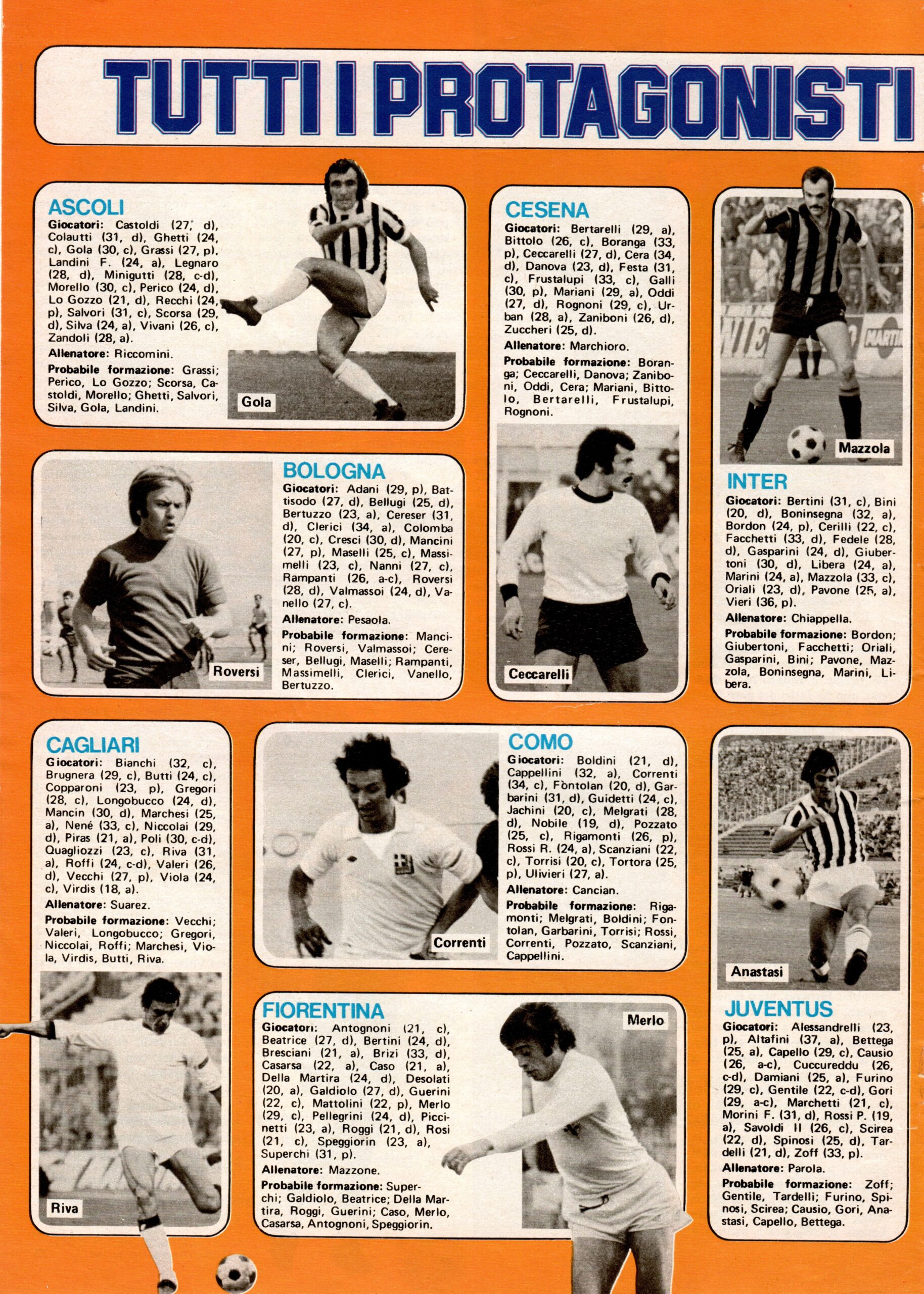 ABC Calcio 1973, copertina, presentazione squadre 1972-73