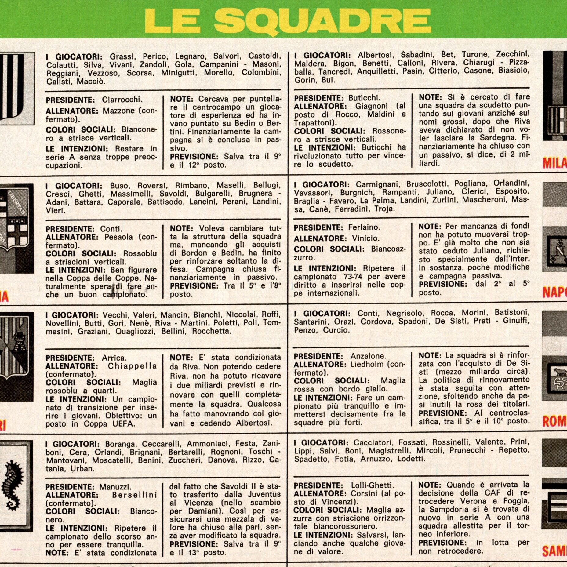 Almanacco del Calcio Panini 1973 presentazione squadre 1972-73