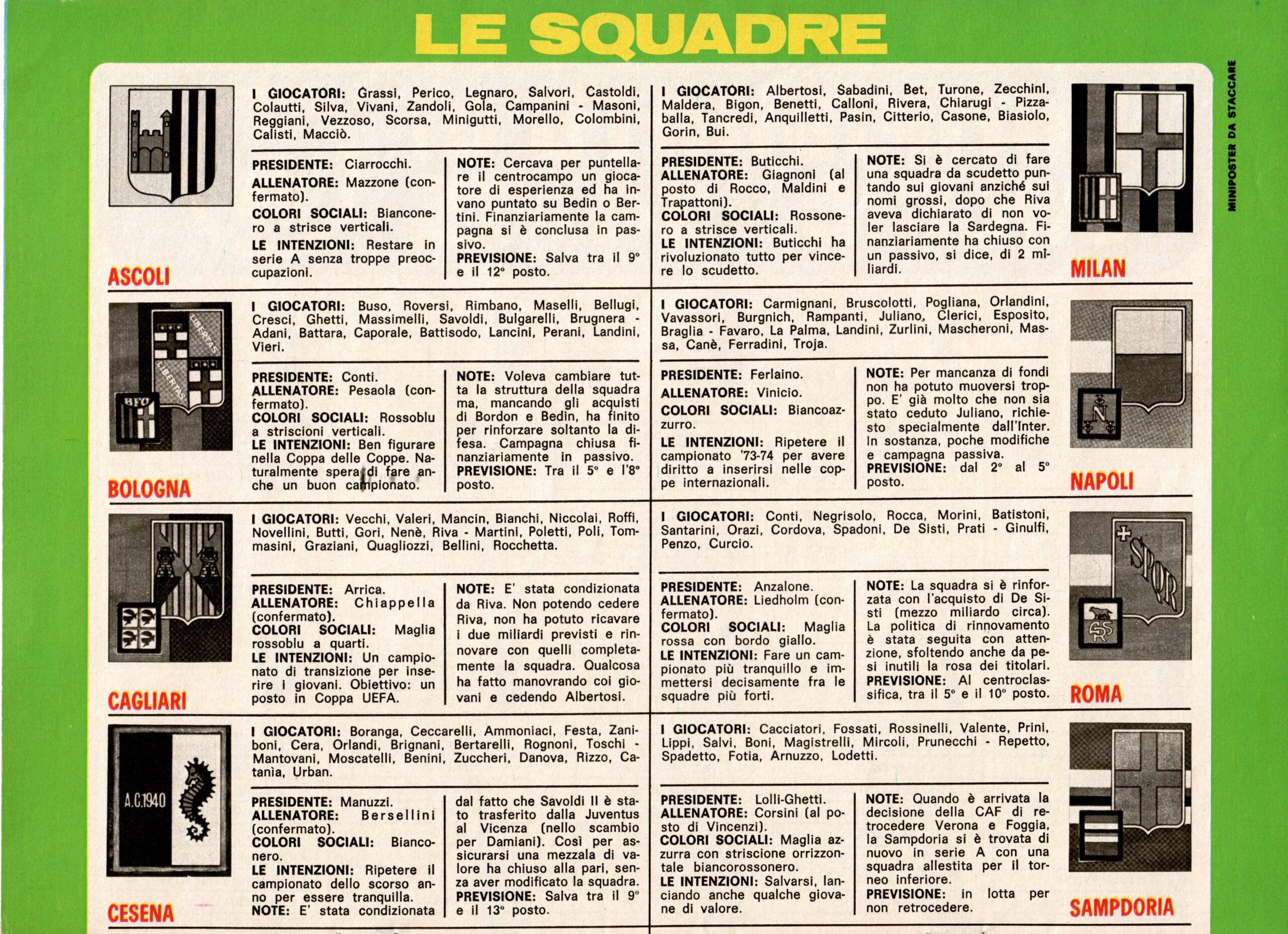 Almanacco del Calcio Panini 1975 presentazione Cesena 1974-75