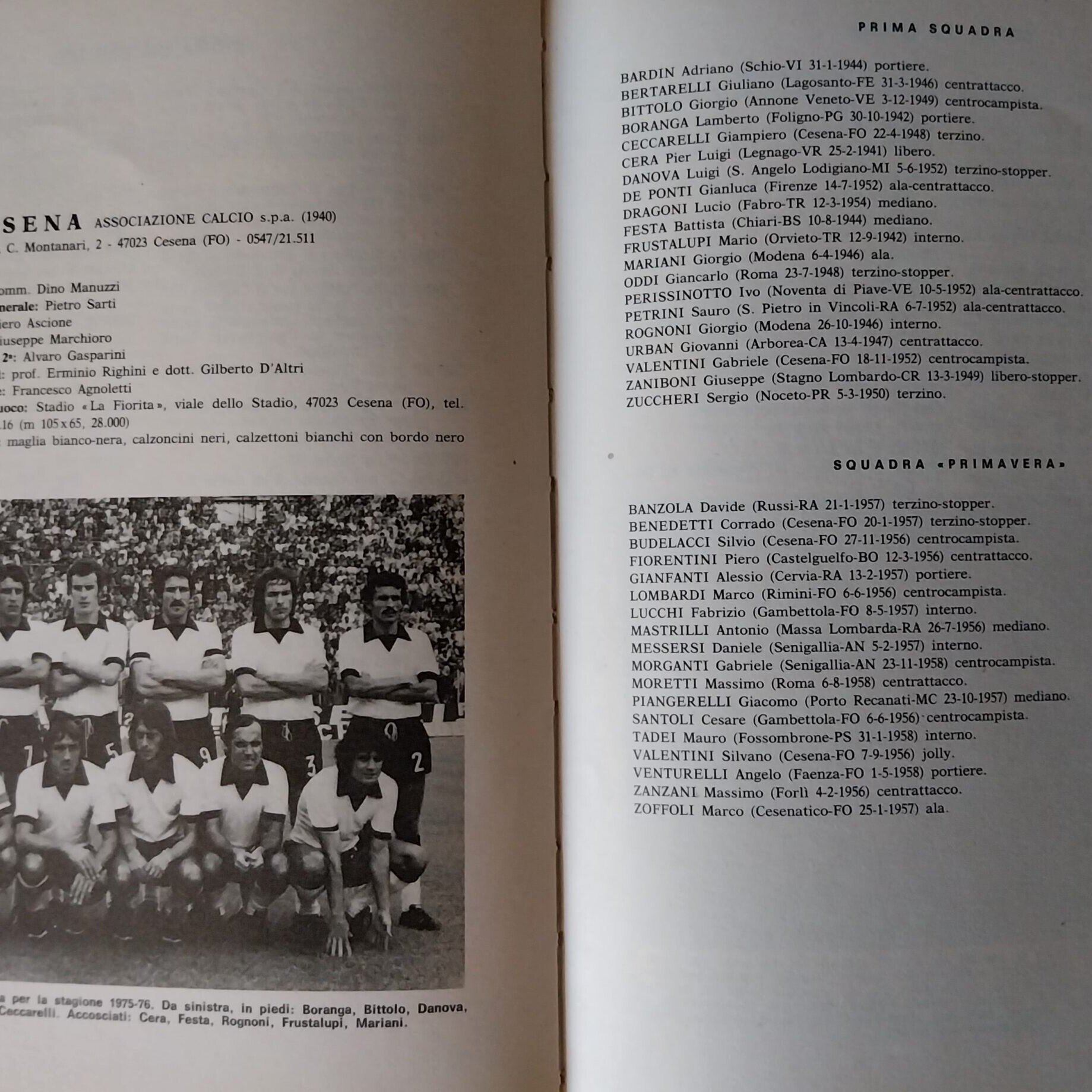 C. Casadei, La rosa bianconera. Il Cesena 1975-76, Edizioni Romagna, 1976