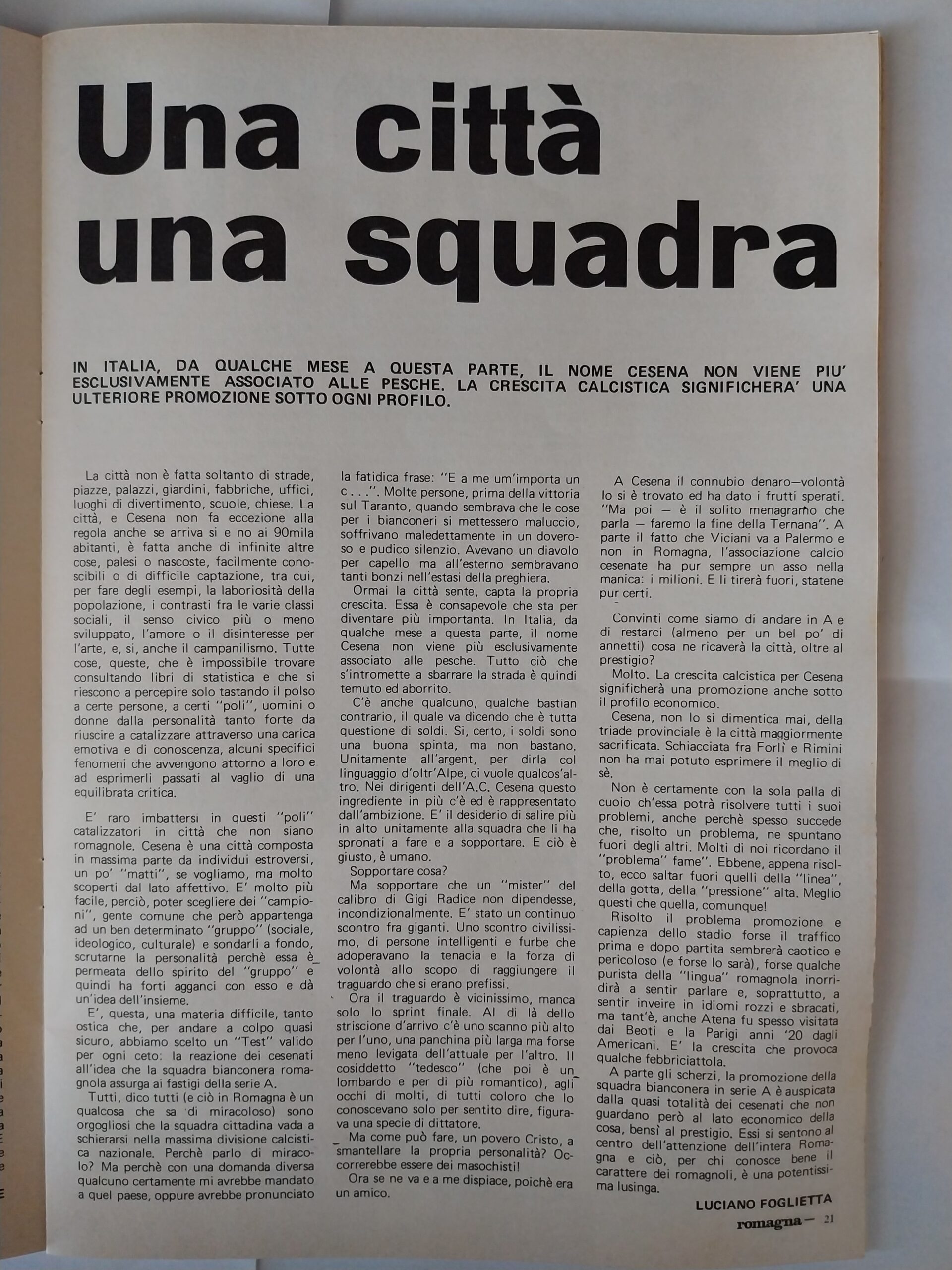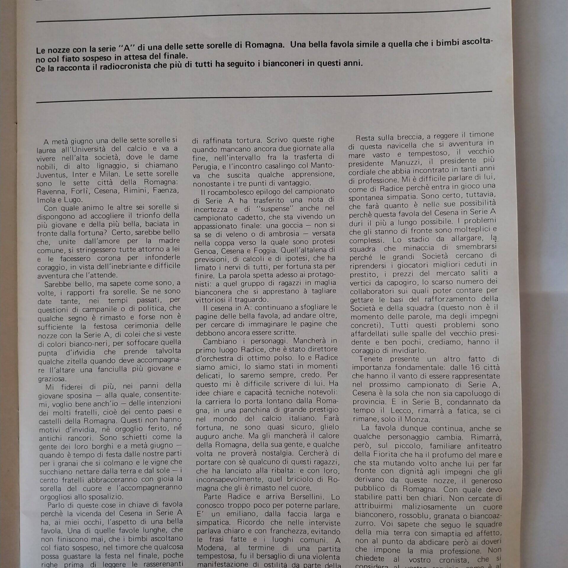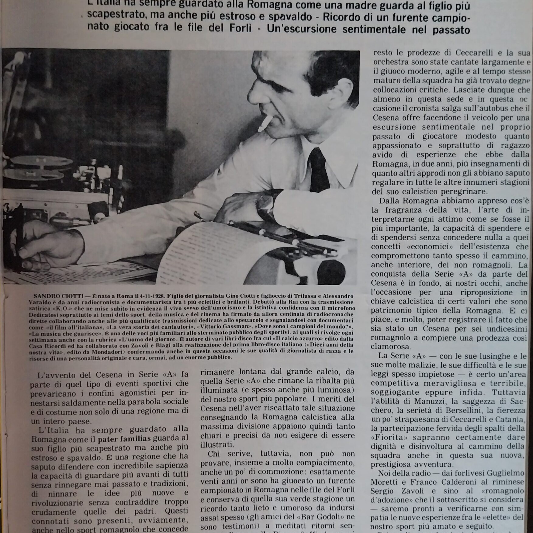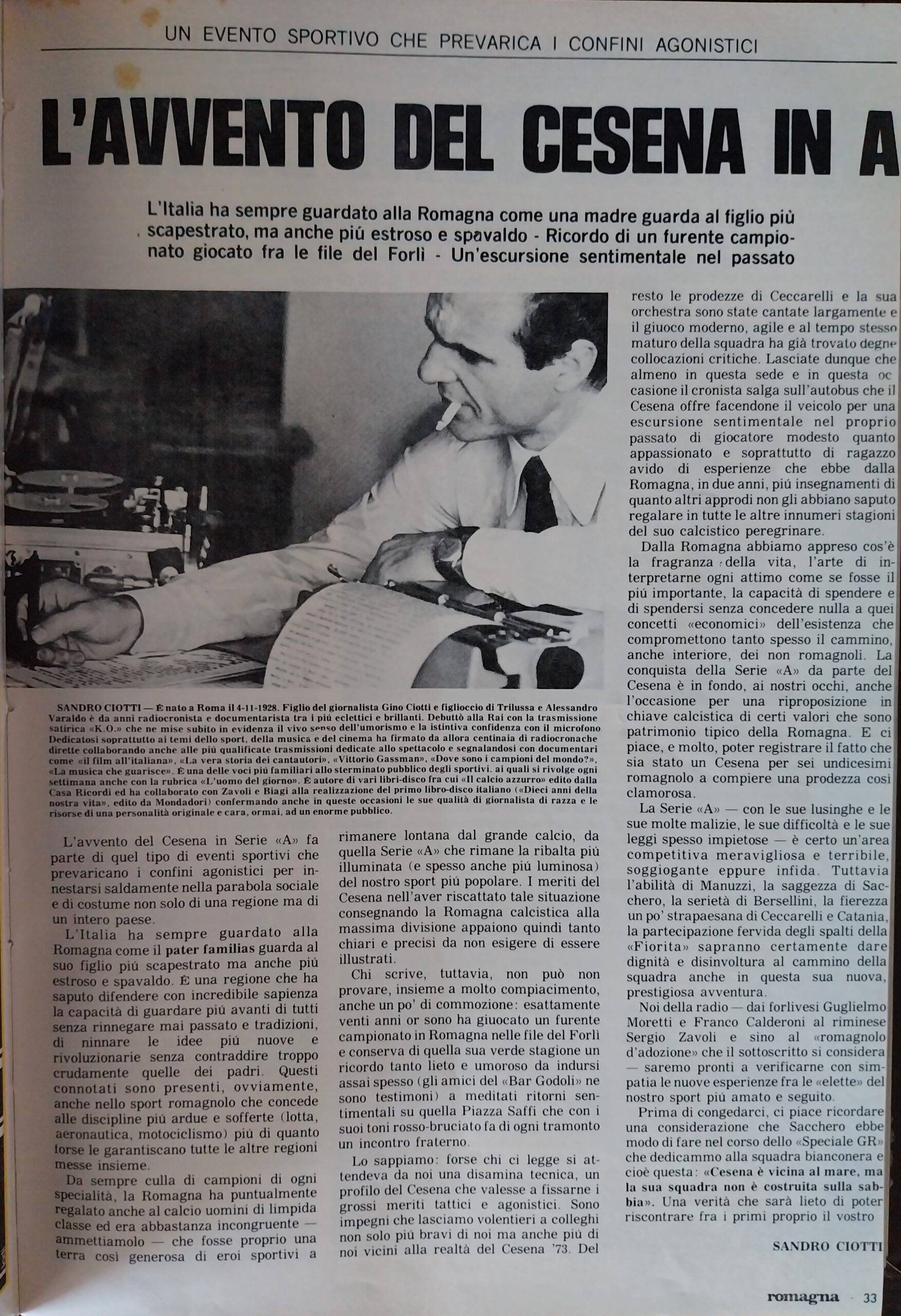Romagna luglio 1973 n. 5, p. 33 articolo Cesena di Sandro Ciotti