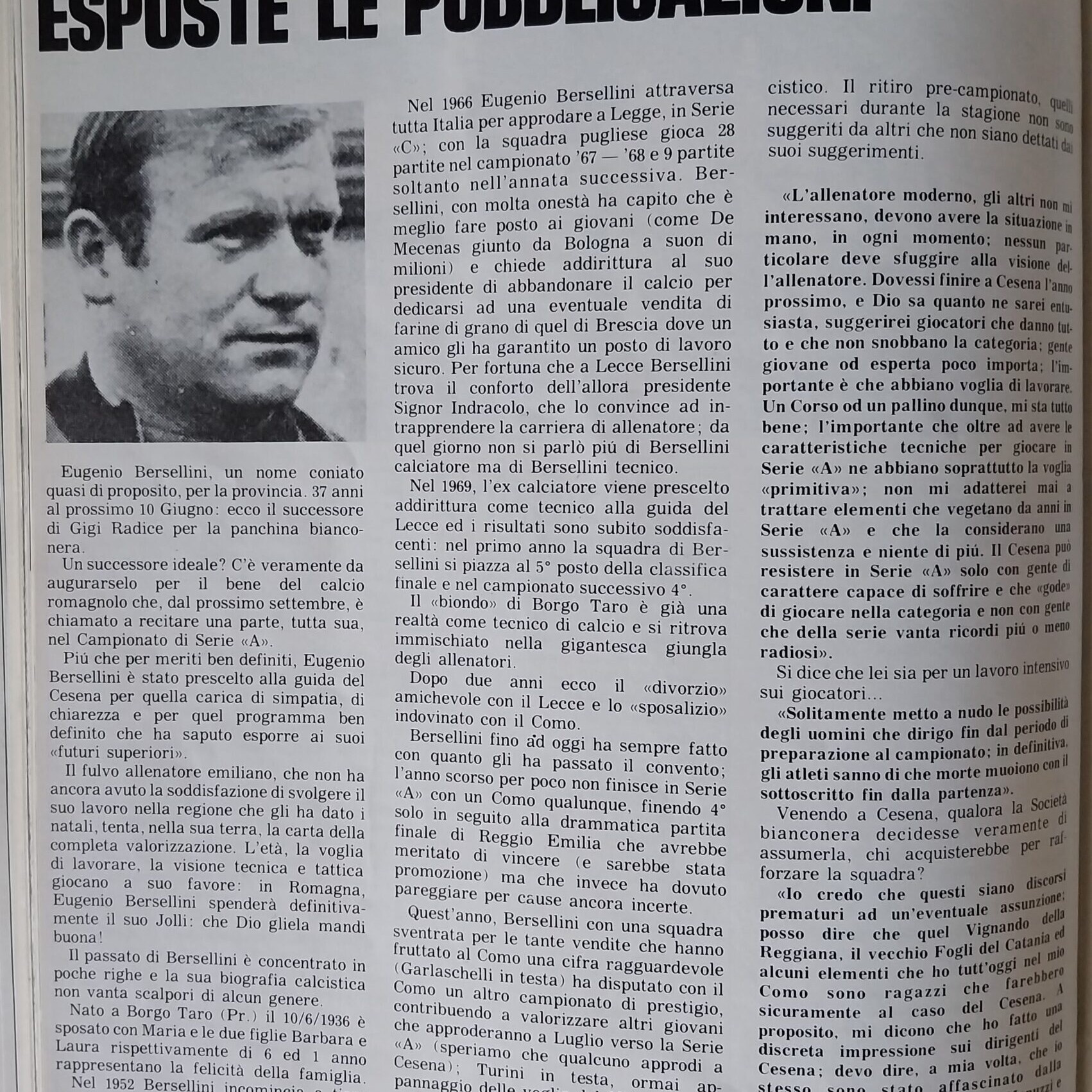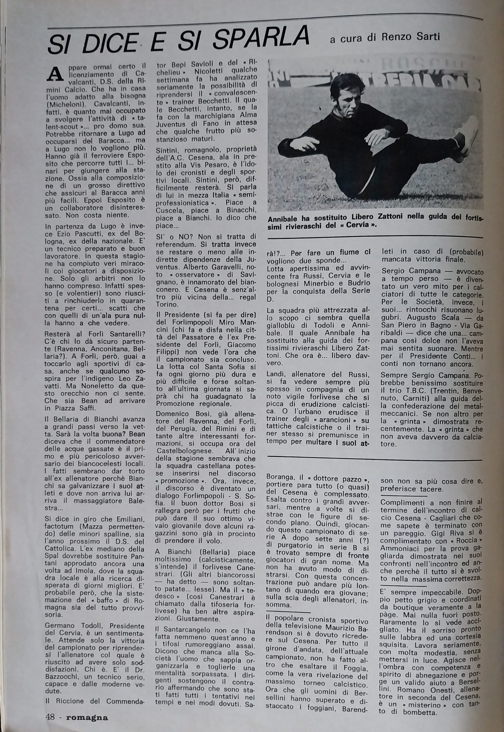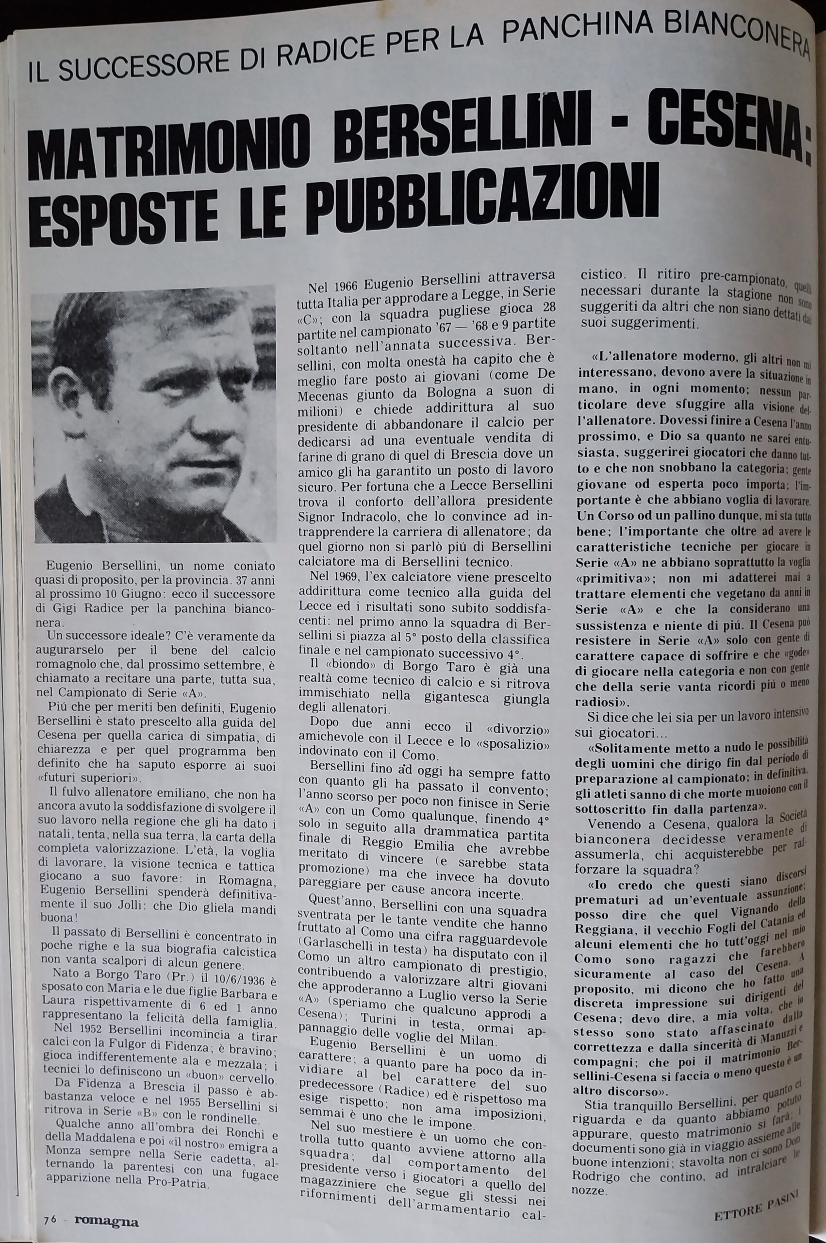 Romagna giugno 1973 n. 3, p. 76 articolo Bersellini nuovo allenatore del Cesena