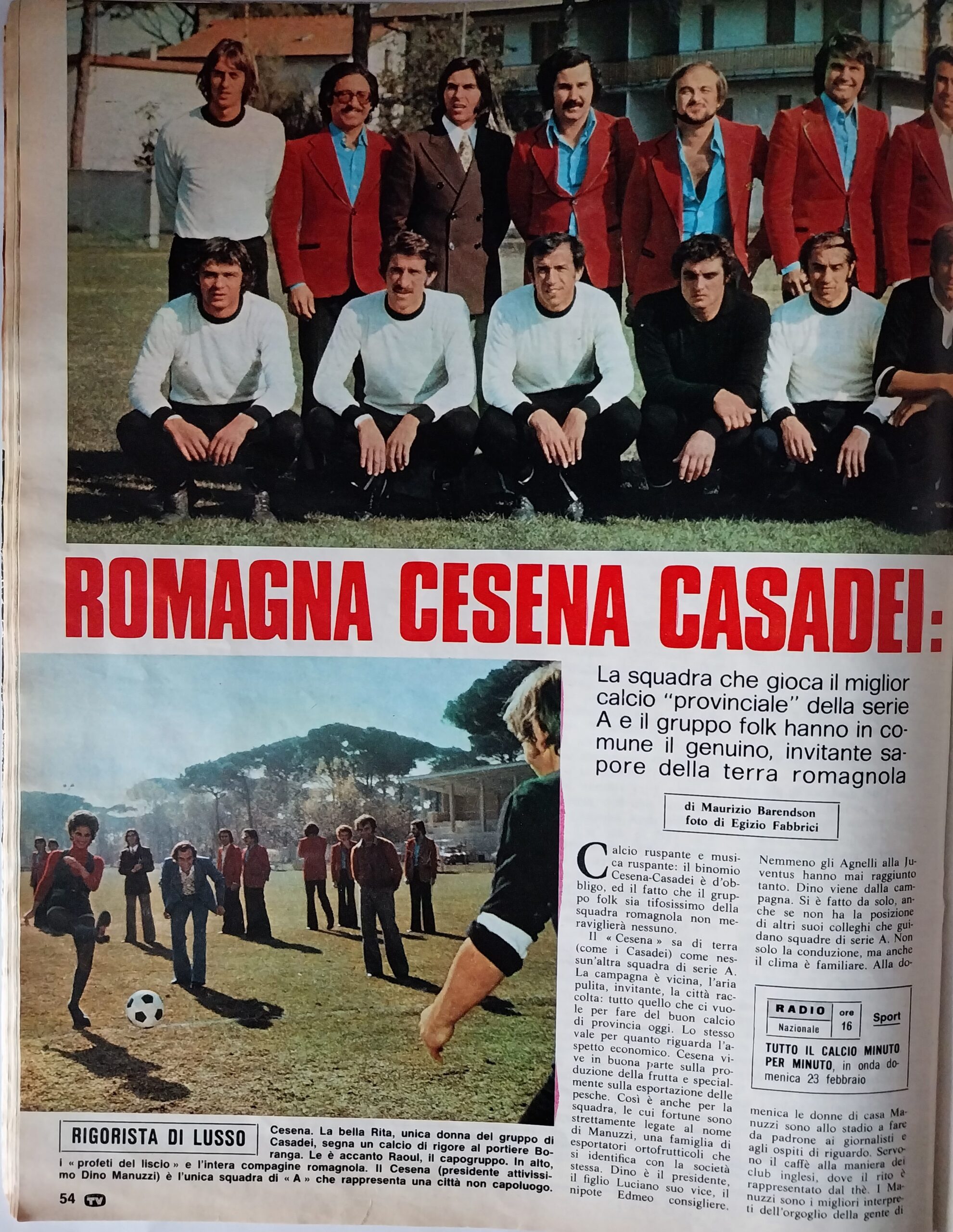 TV Sorrisi e Canzoni 23 febbraio 1975, n. 7-8, p. 54, articolo Cesena Raoul Casadei 1974-75