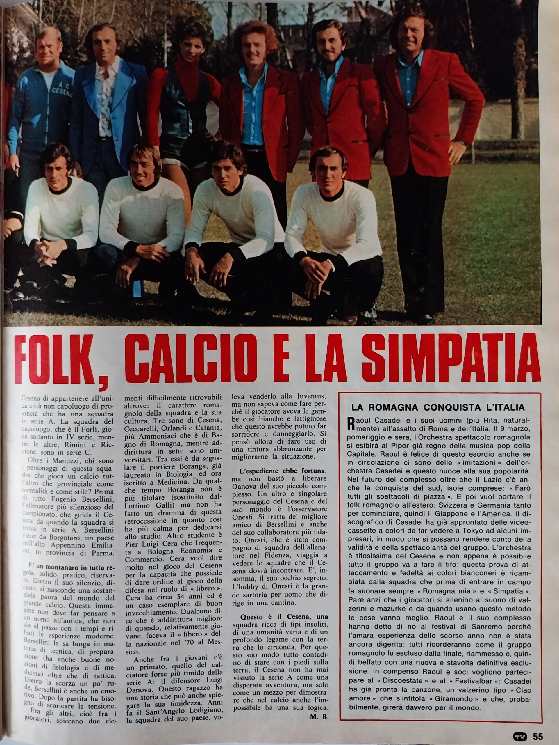 TV Sorrisi e Canzoni 23 febbraio 1975, n. 7-8, p. 55, articolo Cesena Raoul Casadei 1974-75