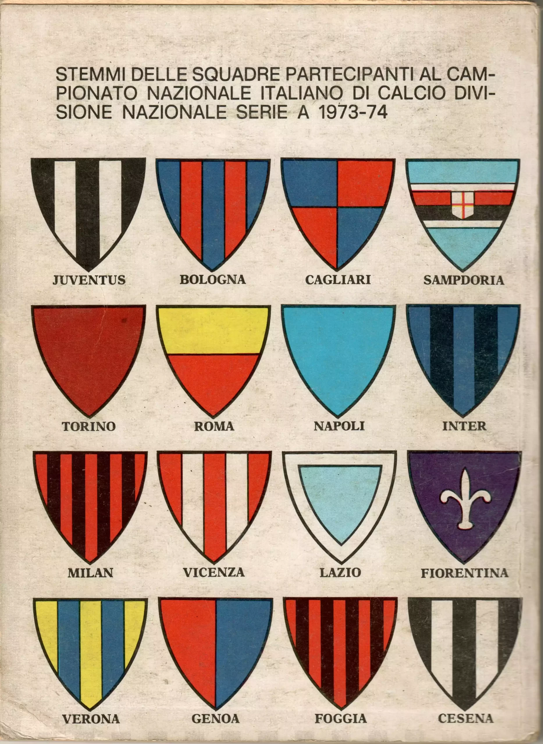 Calcio 73, Gino Sansoni Editore, 1972-73, quarta di copertina con stemma Cesena 1972-73