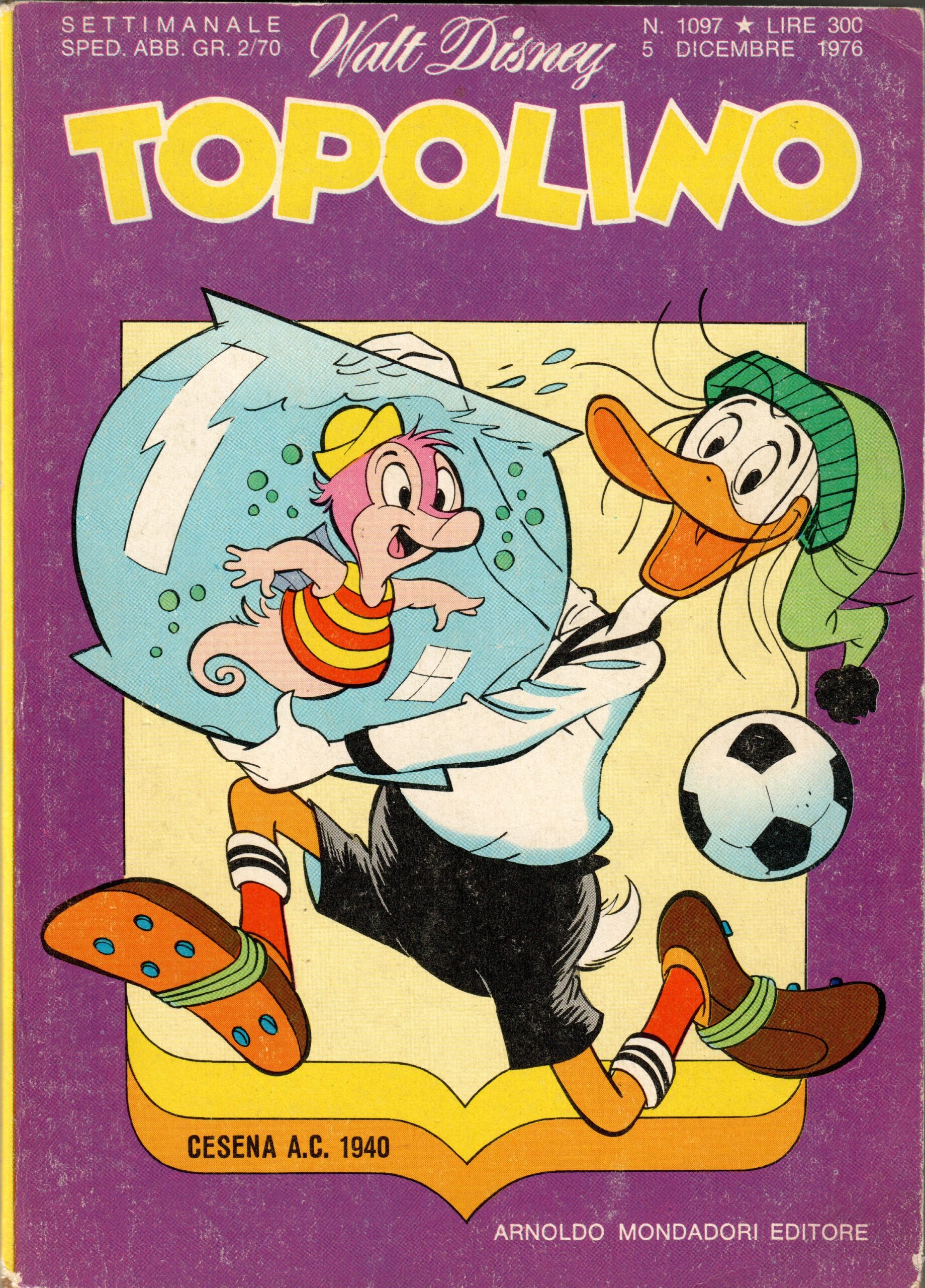 Topolino 5 dicembre 1976, n. 1097, copertina Paperoga con maglia Cesena