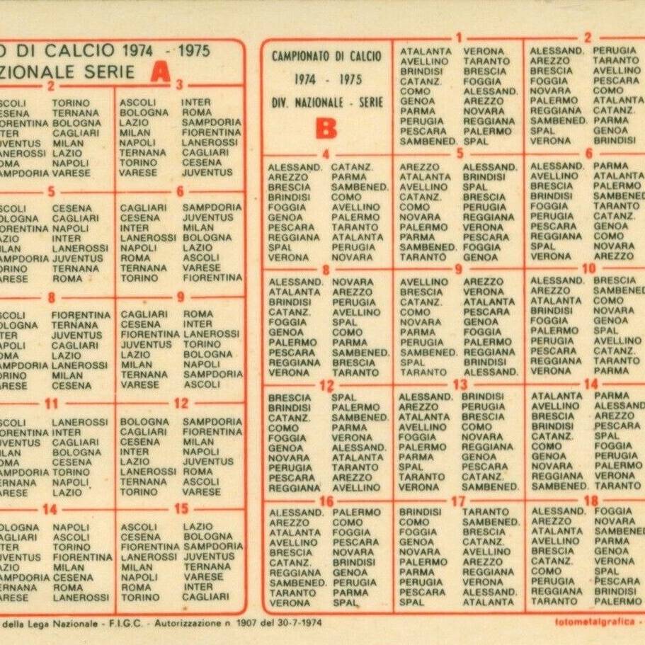 calendario tascabile Goal 1977-78