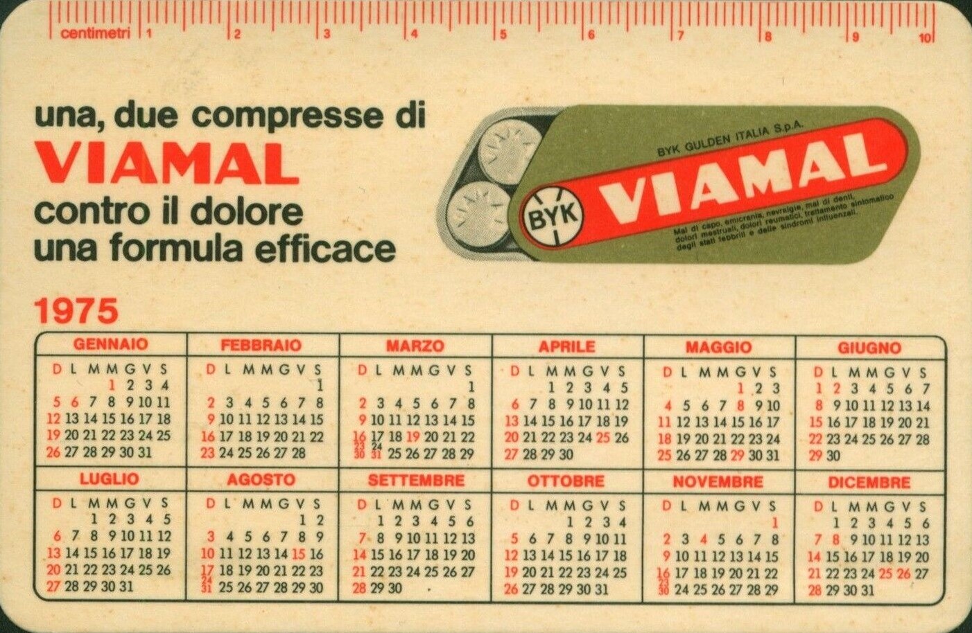 Calendario tascabile Viamal 1974-75 retro