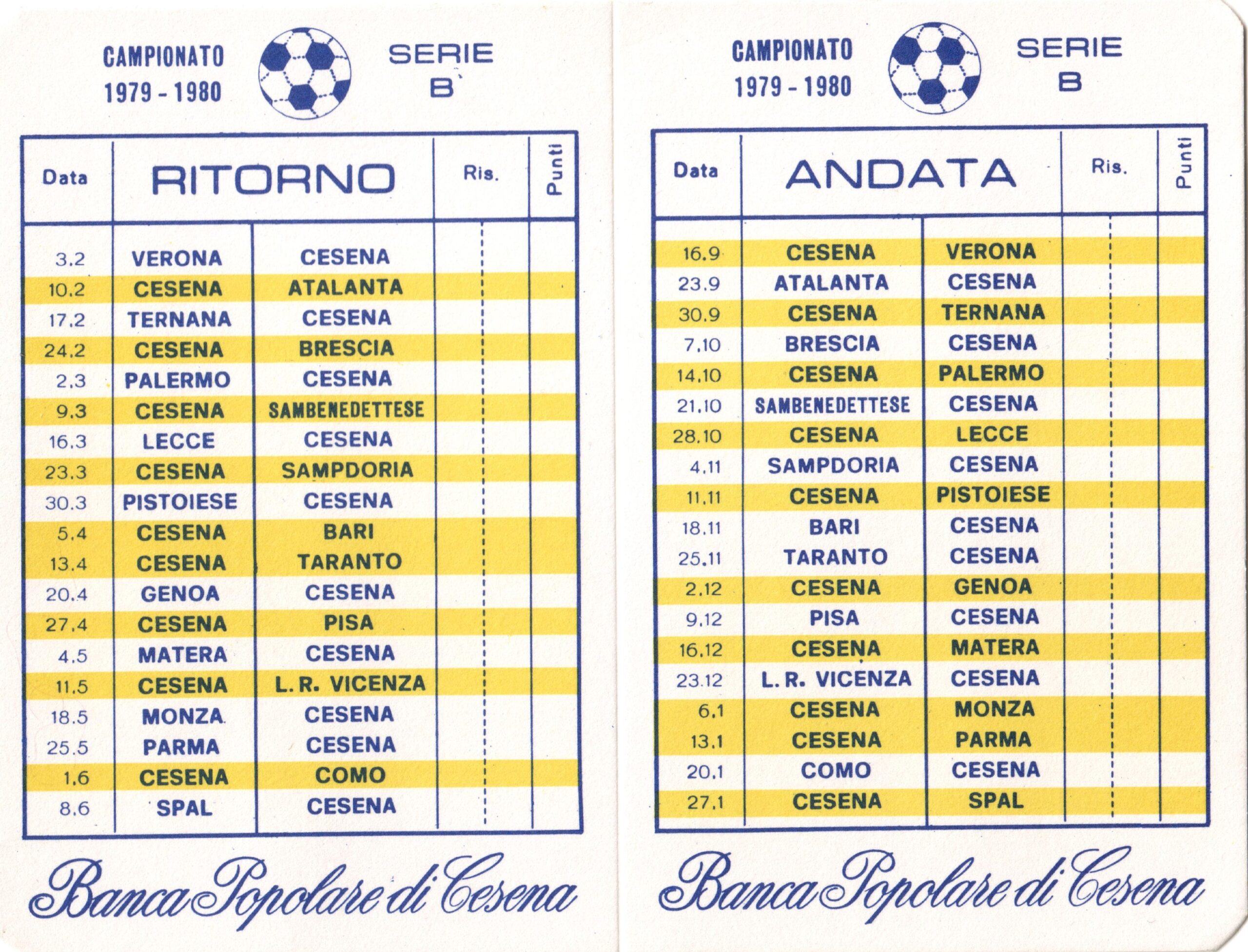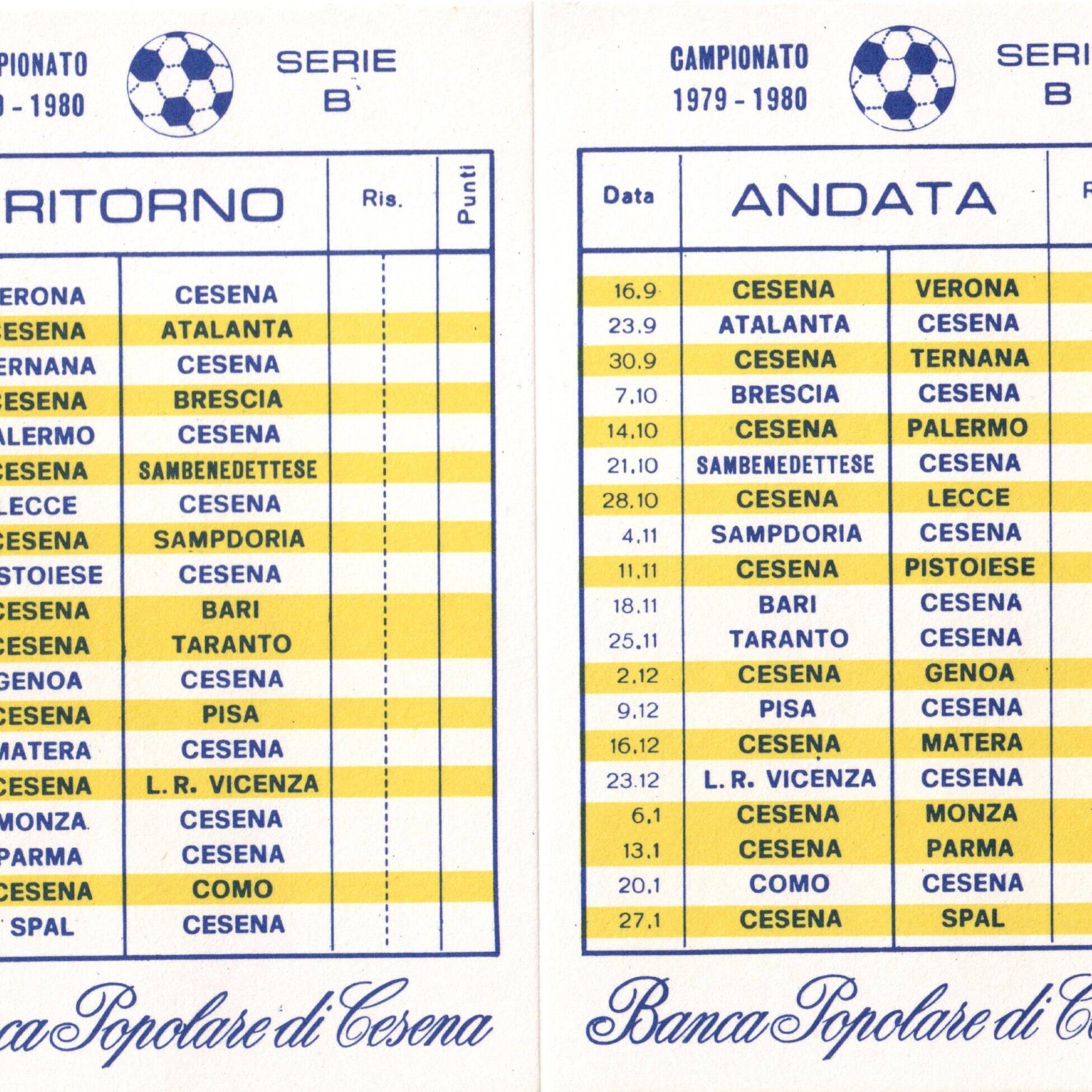 calendario tascabile Banca Popolare di Cesena 1979-80