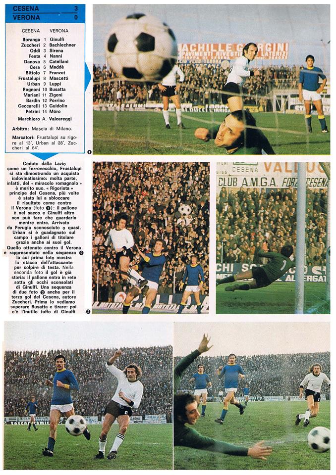 Facciamo però un passo indietro, all’ultimo precedente tra romagnoli e scaligeri del campionato 1973-74 il primo del Cavalluccio nella massima serie. La serie A significava grandi affluenze da parte degli ospiti, compresi i gruppi ultras che erano una novità per la Fiorita dove si sistemavano anche nel Curvone, come gli Ultras Granata e le Brigate Gialloblù, in assenza di un gruppo ultras cesenate strutturato. Le Brigate si costituiranno, infatti, l’anno seguente, anche se in realtà un primo nucleo di giovani tifosi bianconeri iniziava a raccogliersi attorno al gruppo dei Commandos, prima in gradinata poi in curva Sud. E con i veronesi si verificarono i primi incidenti: se all’andata furono tagliate le gomme ai pullman dei tifosi veneti, al ritorno al Bentegodi le auto e i pullman degli ospiti furono presi a sassi e bastonate.